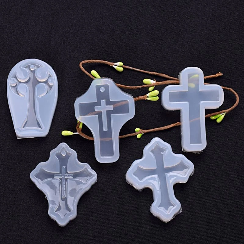 5pcs/set for Cross Silicone Epoxy Mold Resin Pendant DIY Jewelry Making M