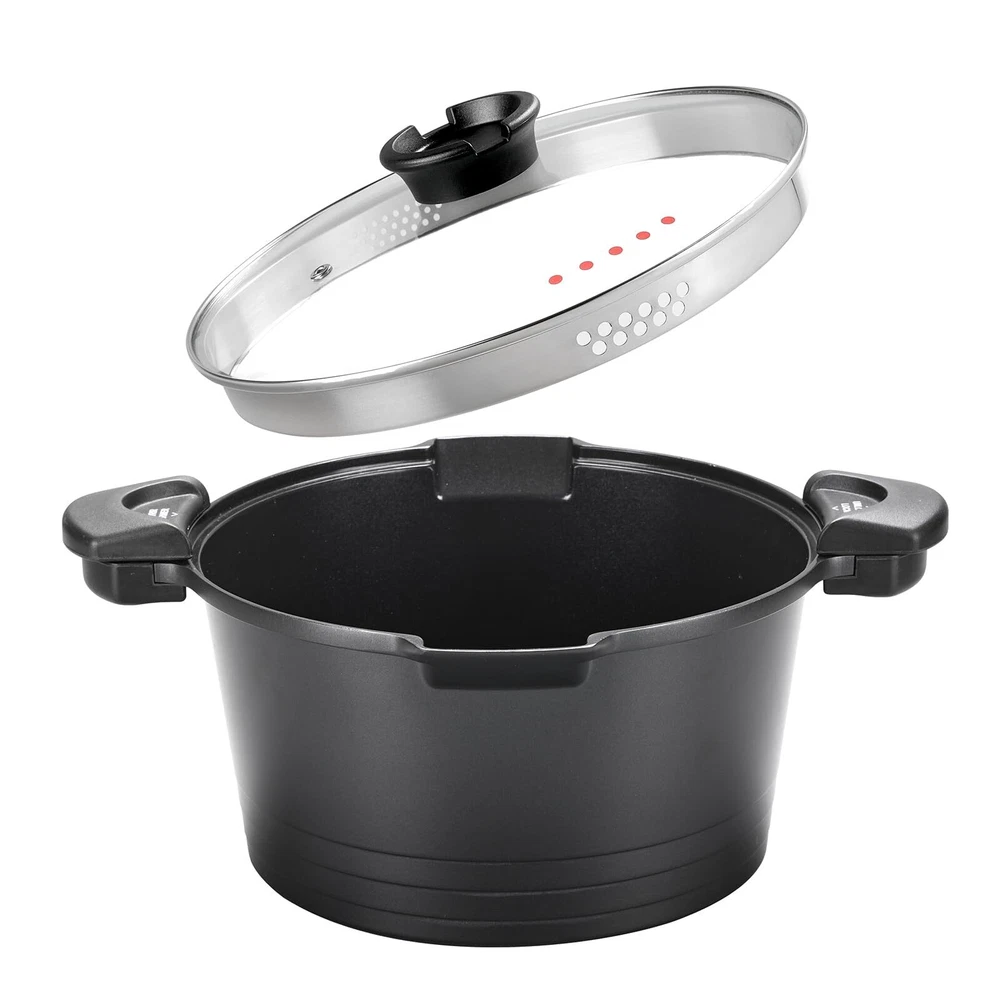 Safe & Healthy: 's pasta pot is made from German ceramic paint, which is guaranteed to be free of PFOA, PFOS, lead and cadmium for an environmentally friendly and healthy cooking experience. Multi-Purpose Cooking: Except boiling pasta, the Multipurpose Pot accommodates a diverse range of cooking tasks, from simmering soups to steaming vegetables and braising meats. Easy Lock Handles with Pour Souts: Strainer Lid comes in 2 straining sizes and simply turns the handle to drain out the water. No more colander! Easy to Clean: The ceramic-coated nonstick surface is easy to clean, which means less scrubbing and soaking. And dishwasher safe, saving you time and energy in the kitchen. Bakelite Handle: The Bakelite handle is ergonomically designed, staying cool throughout the cooking process, and providing a comfortable, secure grip. Tempered Glass Lid: The glass lid allows you to monitor the cooking progress without having to lift the lid, which helps retain heat and moisture, thereby improving cooking efficiency. to All Stovetops: Our spaghetti pot is with all stovetops including gas, , induction and ceramic cookers, etc. Kitchen Metal Utensil Safety: Our coatings come from GREBLON in Germany and can withstand metal utensils, spatulas, spoons, stirrers and even mixers. Ceramic coating is applied to both the inside & outside of the pot.