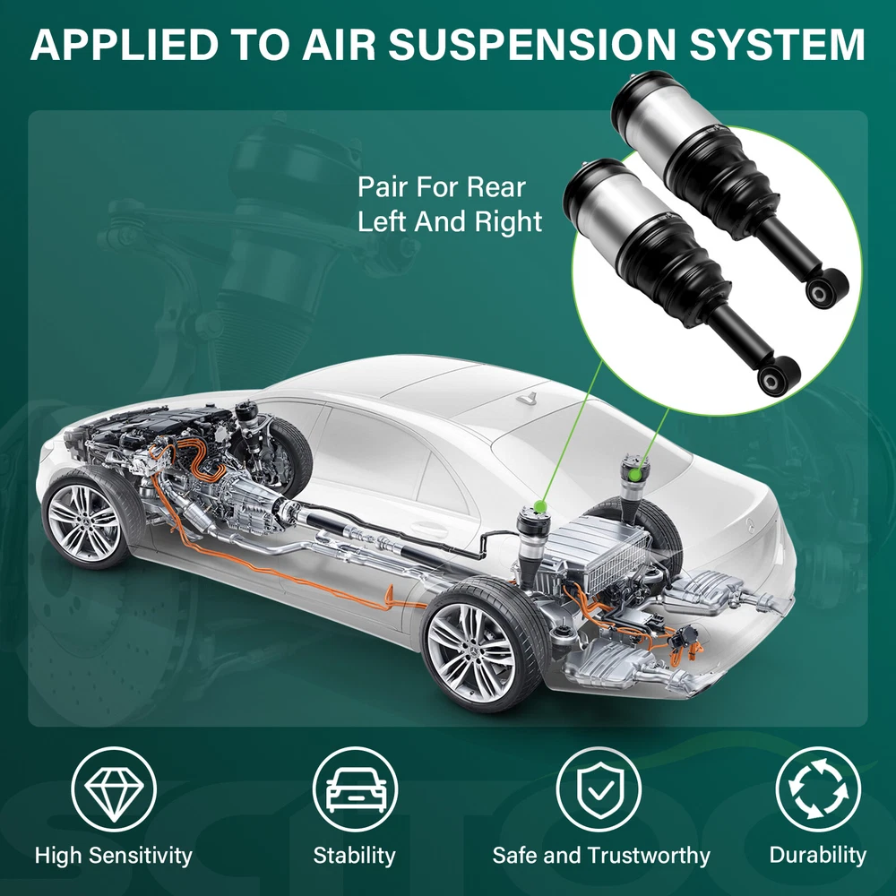 *Compatibility Chart 1, You can distinguish specific model of an automobile by VIN(Vehicle Identification Number). 2, VIN(Vehicle Identification Number) consists of total 17 English letters and arabic digits. 3, VIN does not include the letters I (i), O (o), and Q (q) (to avoid confusion with numerals 1 and 0). Range Rover Sport Excludes VDS Model With Electrical Plug on Mounting Base 2010-2014 5x Air Suspension Struts + Compressor Fits Range Rover Sport, Land Rover LR4 LR3 *Compatibility Chart 1, You can distinguish specific model of an automobile by VIN(Vehicle Identification Number). 2, VIN(Vehicle Identification Number) consists of total 17 English letters and arabic digits. 3, VIN does not include the letters I (i), O (o), and Q (q) (to avoid confusion with numerals 1 and 0). Range Rover Sport Excludes VDS Model With Electrical Plug on Mounting Base 2010-2014 GT Limited Edition 3 Sport Utility 4-Door 5.0L 2012 GT Limited Edition Sport Utility 4-Door 5.0L 2011 2013 HSE Lux Sport Utility 4-Door 5.0L 2012-2013 HSE Sport Utility 4-Door 4.4L 2006-2009 HSE Sport Utility 4-Door 5.0L 2010-2013 LE Sport Utility 4-Door 4.2L 2008 Supercharged Sport Utility 4-Door 4.2L 2006-2009 Land Rover LR4 Base Sport Utility 4-Door 3.0L 2014-2016 Base Sport Utility 4-Door 5.0L 2011-2013 HSE Lux Sport Utility 4-Door 3.0L 2014-2016 HSE Lux Sport Utility 4-Door 5.0L 2012-2013 HSE Sport Utility 4-Door 3.0L 2014-2016 HSE Sport Utility 4-Door 5.0L 2010-2013 SE Sport Utility 4-Door 5.0L 2010-2013 V8 Sport Utility 4-Door 5.0L 2010 Land Rover LR3 Base Sport Utility 4-Door 4.0L 2006 HSE Lux Sport Utility 4-Door 4.4L 2009 HSE Sport Utility 4-Door 4.4L 2005-2009 SE Sport Utility 4-Door 4.0L 2005-2009 SE Sport Utility 4-Door 4.4L 2005-2009 *Air Suspension Structure: 1 Front Rh Air Spring Damper Module 2 Front Rh Height Sensor 3 Air Suspension Control Module 4 Air Suspension Control Switch 5 Rear Rh Height Sensor 6 Rear Rh Air Spring Damper Module 7 Air Supply Unit Silencer 8 Rear Lh Air Spring Damper Module 9 Air Fitter 10 Rear Valve Block 11 Rear Lh Height Sensor 12 Upper Acoustic Cover 13 Lower Acoustic Cover 14 Air Supply Unit 15 Reservoir Valve Block 16 Air Reservoir 17 Front Lh Height Sensor 18 Front Lh Air Spring Damper Module 19 Front Valve Wock * Generation & Evolution: Land Rover Discovery First generation (Project Jay; 1989-1998) Second generation (LR2/L318; 1998-2004) Third generation (LR3/L319; 2004-2009) Fourth generation (LR4/L319; 2009-2016) Fifth generation (L462; 2017-present) Range Rover Sport First generation (L320; 2005-2013) Second generation (L494; 2013-present ) SVR (2015 Pre-Facelift) SVR (2018 Facelift) *Platform Drive Layout : Front Engine-Four Wheel Drive Layout *Air Suspension System: The Discovery LR3 LR4 own fully independent air suspension with cross-linking when off-road and the twin-range transfer gearbox with an electronic infinitely variable locking centre differential. As before, a similar locking rear differential is available. The Terrain Response system remains but with two new features – the 'Sand' mode incorporates a new traction control mode to prevent loss of traction when starting off and stopping in soft sand, and the 'Rock Crawl' mode gains a feature that applies gentle brake pressure at low (less than walking pace) speeds to improve grip and stability on slick rock. Range Rover Sport air suspension system gives the driver the option of three ride height settings including a standard ride height of 172 mm (6.8 in), an off-road height of 227 mm (8.9 in) and a lowered access mode. There is also an extra height available which is accessed by holding the respective button for when the off-road ride height is not enough. When the vehicle bellies out, its control system will sense weight being lessened on the air springs and the ride height is automatically raised to the suspensions greatest articulation. The cross-link aspect of the suspension system, which debuted on the L322 Range Rover in 2002, results in better off-road performance by electronically operating valves in pneumatic lines which link adjacent air springs. In the event of a wheel on one side being raised when travelling off-road, the pneumatic valves are opened and the adjacent wheel is forced down, simulating the action of a live axle setup. *Removal Guideline: Caution: Damage to the vehicle and air suspension system can be incurred if work is carried out in a manner other than specified in the instructions or in a different sequence. 1.To avoid the possibility of short circuits while working with electric components consult your owner's manual on how to disconnect your battery. 2.Consult your vehicle owner's manual, service manual, or car dealer for the correct jacking points on your vehicle and for additional care, safety and maintenance instructions. Under no circumstances should any work be completed underneath the vehicle if it is not adequately supported, as serious injuries and death can occur. 1.Remove rear wheel to expose the rear air strut.(picture 1) 2.Loosen and remove the lower mount nut. Support the air strut and remove the lower mount bolt.(pictures 2,3) 3.Loosen and remove the three(3)top mounting nuts.(picture 4) 4.Carefully lower the air strut to gain access to the air line. Unthread the air fitting.(picture 5) 5.Remove the air strut from the vehicle.(picture 6) 6.Remove the air line fitting from the air hose and discard. To remove the air line fitting,remove the collet and the remaining fitting will slide off of air hose.(picture 7) 7.Removal complete. *Installation Guideline: 1.Place new air strut onto vehicle, oriented in the same position as strut previously removed. 2.Insert the air line into the voss fitting, making sure it is firmly seated and will not pull back out.(picture 8) 3.Install and tighten the three(3)top mounting nuts to manufacturer's specification.(picture 9) 4.Support the air strut and install the lower mount bolt. Re-install and tighten the lower mount nut to manufacturer'