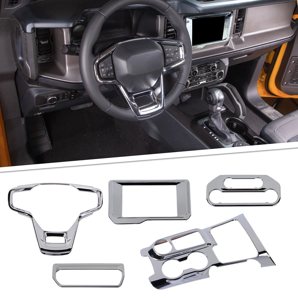 5x Center Console Dashboard Cover Trim For Ford Bronco 2021+ Chrome Accessories