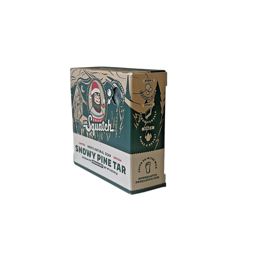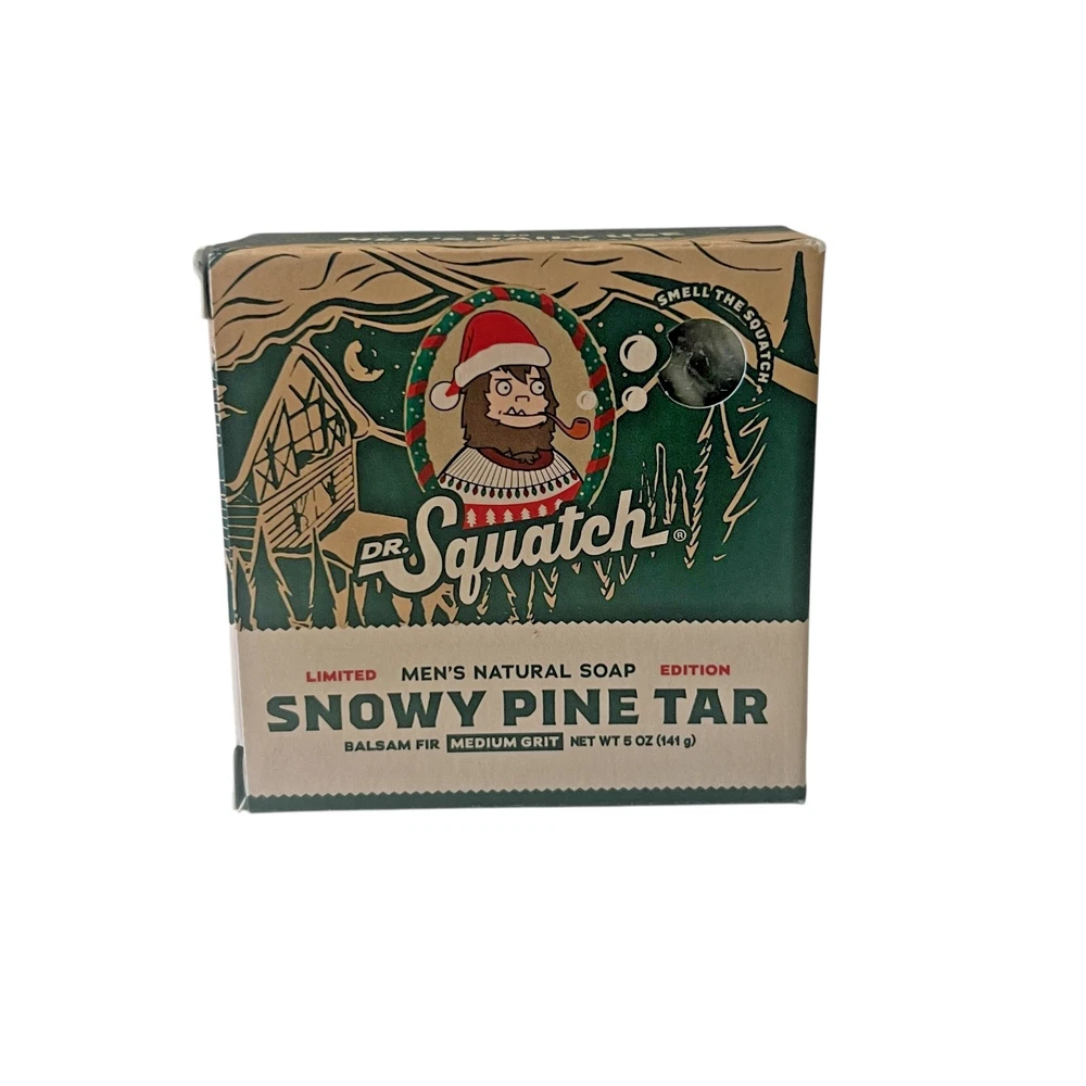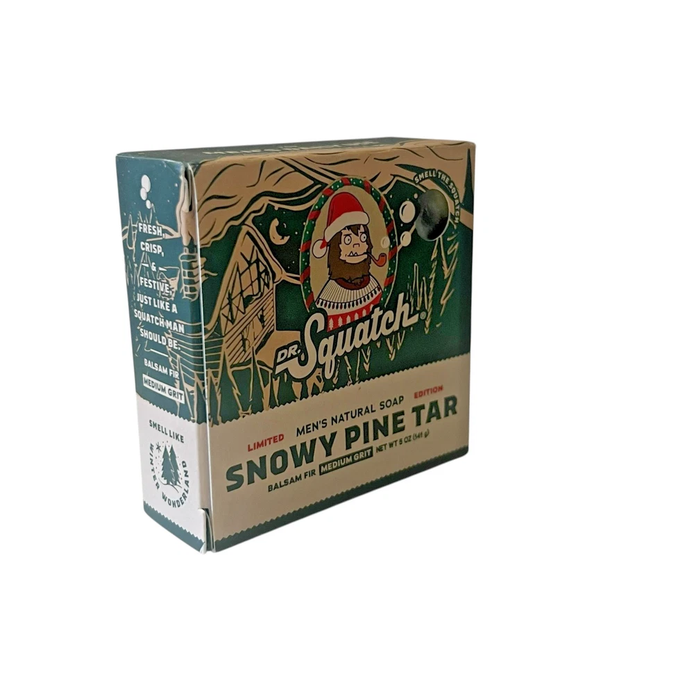 Dr Squatch Snowy Pine Tar is a limited edition seasonal release. Quantity of five new bars. Item details: • 5 brand new Dr Squatch Snowy Pine Tar bar soaps • Limited edition winter release • Balsam fir and pine scent • Medium grit exfoliation • Cold process soap with natural ingredients • Full size bars • Factory sealed Scent profile Fresh pine and forest balsam. Clean winter scent. New and unused. Never opened. Ideal for: • Collectors • Gifting • Stocking up on discontinued scents Fast shipping. Secure packaging. Message with any questions.