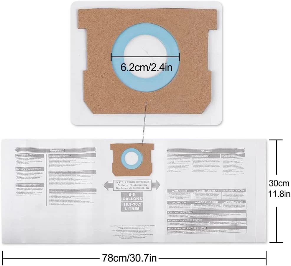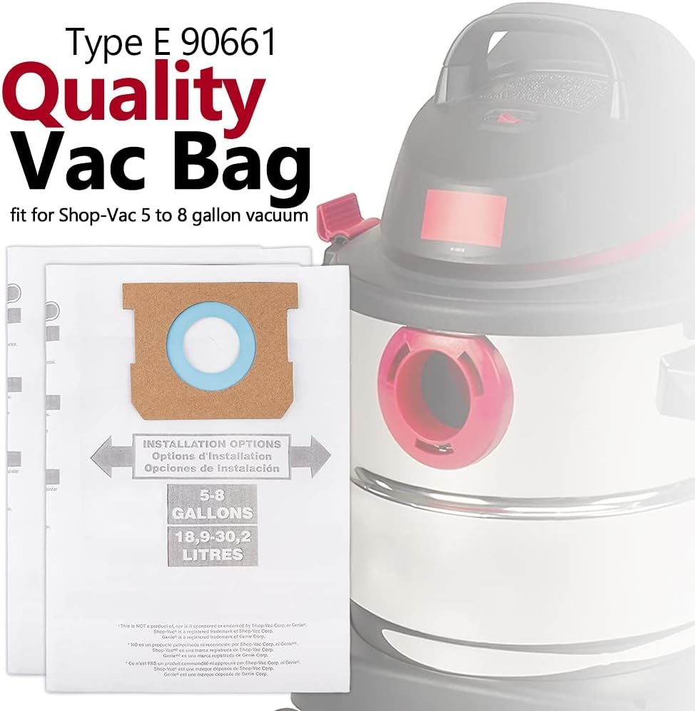 90661 Type E Replacement Shop Vacuum Bags 5 Pack COMPATIBILITY: The 90661 dust collector bags compatible with Shop-vac 5-8 gallon vacuum 84L250B, 84L300, 84M250B, 85L350, 85M300, 86L350, 86M300, 87L350, 87L450, 87M300, 87M350, 90M300, 92L350, 92M300, H87S550A, H87S650C, QL20ATS, QL20ATSP, QPL40, QPL650, 12RT300, 4045, 6045AH, also compatible with porter cable PX18406-5B, for dry debris pick-up only EFFICIENT DUST CAPTURING: The replacement vacuum bags hold most of particles and dust from workshop or house. Effectively collector drywall dust, cement dust, sawdust, house debris, lint, wood dust, construction debris and dust PACKAGE: Include 5 Pack 90661 shop vac bags TIPS: 24 hour online. If you have any question, please feel free to reach us On Nov 4, 2025 at 19:27:24 PST, seller added the following information: