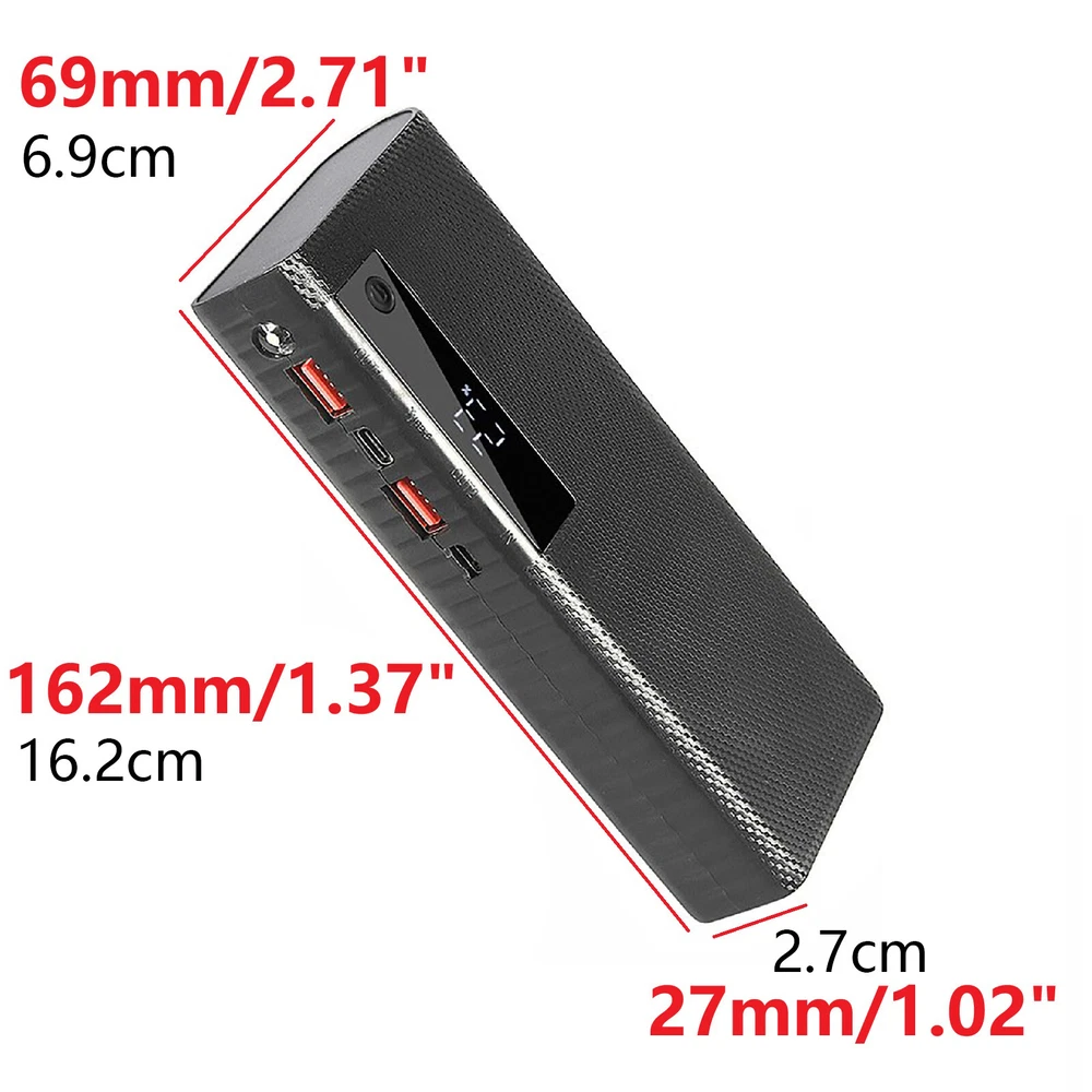 NEW-00023 Dual USB Power Bank Case 5x21700 Battery Fast Charging Charger Box DIY Shell tt PRODUCT DESCRIPTION Features: Holds 5 pieces of 21700 flat head batteries, a solderless and reusable DIY battery case. (Batteries not included) Features power display, intelligent automatic shutdown in non-working state, LED light activated by long press or double click; Reverse installation does not damage the motherboard. Easy to install, requiring no soldering or secondary processing. Simply install the batteries correctly and assemble for use. It is also repeatedly disassemblable and replaceable. Ideal for home/outdoor activities, easy to operate, and convenient for disassembly and installation. Only supports 21700 flat-headed batteries. Do not use pointed batteries or aging batteries. Improper use of batteries may result in inability to output, especially after prolonged use in other locations and disassembly. (Please note that for DIY products, a certain level of understanding is required. Otherwise, improper operation may lead to issues such as motherboard burnout.) Attention: Does not support 3.2V iron phosphate batteries. Do not use damaged batteries, do not install batteries that do not meet the requirements, and do not modify/weld the product. This product poses a high safety risk during production, please be cautious! Specifications: Compatible battery: 3.7V 21700 battery (flat head - standard with a diameter of 2.1cm and a length of 7cm) (Not included in shipment) Output Power: 22.5W (Dual USB Output + TYPE-C Port/for Android Port Dual Input Solution); USB Output: 5V/3.1A; 9V/2.5A; 12V/1.87A (Supports 5V pass-through charging, multi-port output limited to 5V); Type-C Output: 5V/3.1A; 9V/2.22A; 12V/1.67A (Output available only when PD protocol is supported); IN Input (Micro/Type-C): 5V/3A; 9V/2A; 12V/1.5A (Multi-port input not supported); Capacity Requirement: Battery pack's minimum true capacity must not be less than 10000mAh, otherwise the battery may not be able to discharge completely before running out of power. Package Included: 1 × Battery Box (Excluding Batteries) Shipping Contact Us Our products have been sent to the US warehouse. All items will be shipped via WINIT CORPORATION. In 2-5 working days, you will receive your items. Thank you and have a nice day. If you have any question about us or items, please contact us, we will reply it as soon as possible. Shipping Our products have been sent to the US warehouse. All items will be shipped via WINIT CORPORATION. In 2-5 working days, you will receive your items. Thank you and have a nice day. Contact Us If you have any question about us or items, please contact us, we will reply it as soon as possible. PaymentShippingReturn policyAbout usContact us Copyright © - Tongtool All rights reserved | Design:Tongtool