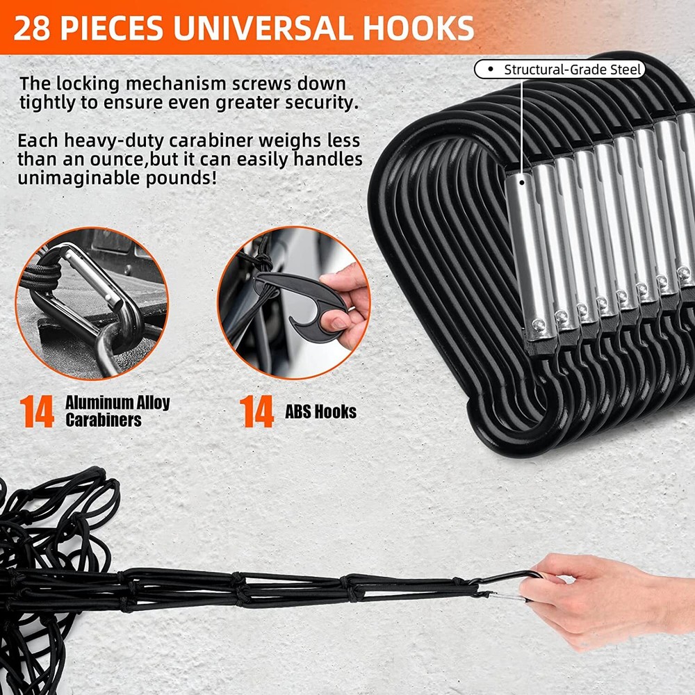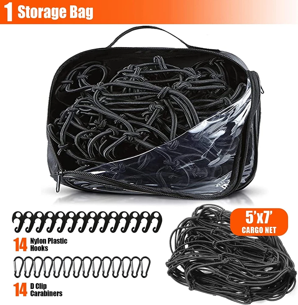 This cargo net is a game-changer for my truck! It stretches perfectly to secure loads without slipping, and the sturdy mesh holds everything in place. Super easy to install and remove, yet strong enough for heavy items. No more worrying about things flying out on the road—worth every penny!