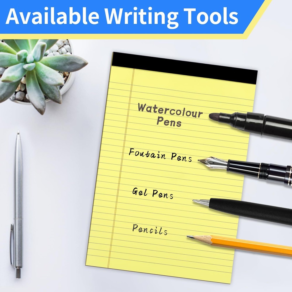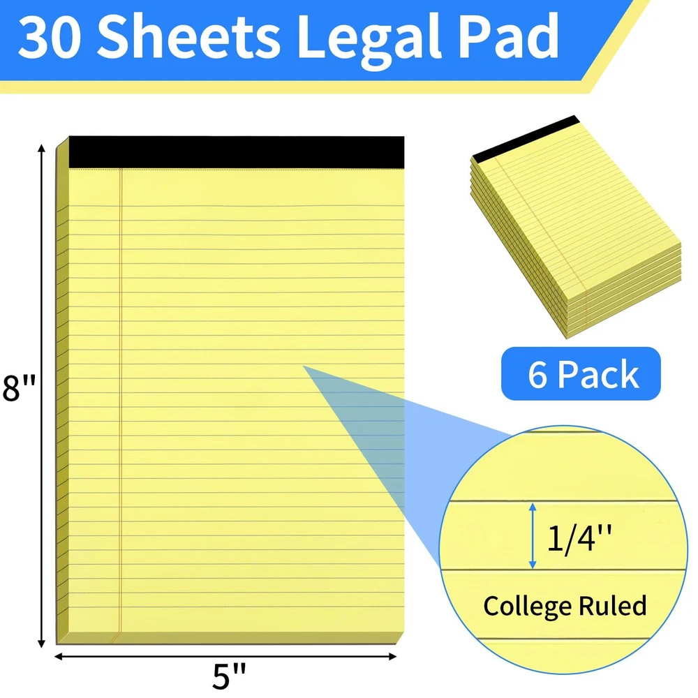 WINKIO Legal Pads 5" X 8", 6 Pack Yellow Note Pads, College Ruled Yellow Lined Paper Pads, Letter & Legal Ruled Pads, 30 Sheets per Small Writing Pads 5x8 for School, Home, Office, Business 【6 Pack Yellow Legal Pads】 This set includes six small yellow notepads, each with 30 sheets, allowing for double-sided writing to maximize note-taking capacity. An economical choice for those with extensive note-taking needs, it meets both study and work requirements. 【Right Sizes】 These small legal pads are 8 inches long and 5 inches wide, making them lightweight and convenient to carry in a backpack or briefcase. Yellow note pads feature college-ruled lines with 9/32-inch spacing, accommodating larger handwriting for enhanced readability. 【Quality Paper】 The yellow legal pad 5"x8", featuring 80gsm smooth paper, prevents ink bleed-through and ensures a smooth writing experience with various pens. Its left margin and title space enhance organization, while the legal rule format offers ample note-taking space. The yellow paper is gentle on the eyes 【Easy to Tear】 The 5x8-inch yellow notepad features a hard top for easy removal and clean tearing without any mess, allowing for the effortless and neat separation of individual sheets for notes you want to keep or discard. 【Wide Range of Applications】 The yellow legal pad is versatile, ideal for office, school, business, and home use. The yellow note pad can serve as a reminder, to-do list, daily notebook, travel journal, memo pad, diary, or office supply. Additionally, it is suitable for calligraphy practice, brainstorming, sketching, and doodling. Legal Pads 5" X 8" Shipping We offer FREE shipping on all orders! We ship within Three business days of payment, usually sooner. We use a selection of shipping services such as UPS, FedEx, USPS etc. We only ship to the lower 48 states, no APO/FPO addresses or PO Boxes allowed. Local pickups and combined shipping options are not provided at this time. Return You can return a product for up to 30 days from the date you purchased it. Any product you return must be in the same condition you received it and in the original packaging. Please keep the receipt. Payment We accept payment by any of the following methods: PayPal Please pay as soon as possible after winning an auction, as that will allow us to post your item to you sooner! Feedback Customer satisfaction is very important to us. If you have any problem with your order, please contact us and we will do our best to make you satisfied. Contact Us If you have any queries, please contact us via ebay. We usually respond within 24 hours on weekdays. Please visit our eBay store to check out other items for sale! Thank you for shopping at our store.