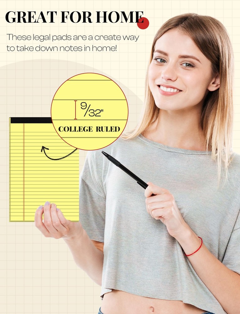 5x8 Yellow College Ruled Legal Notepads 6-Pack for Office Use