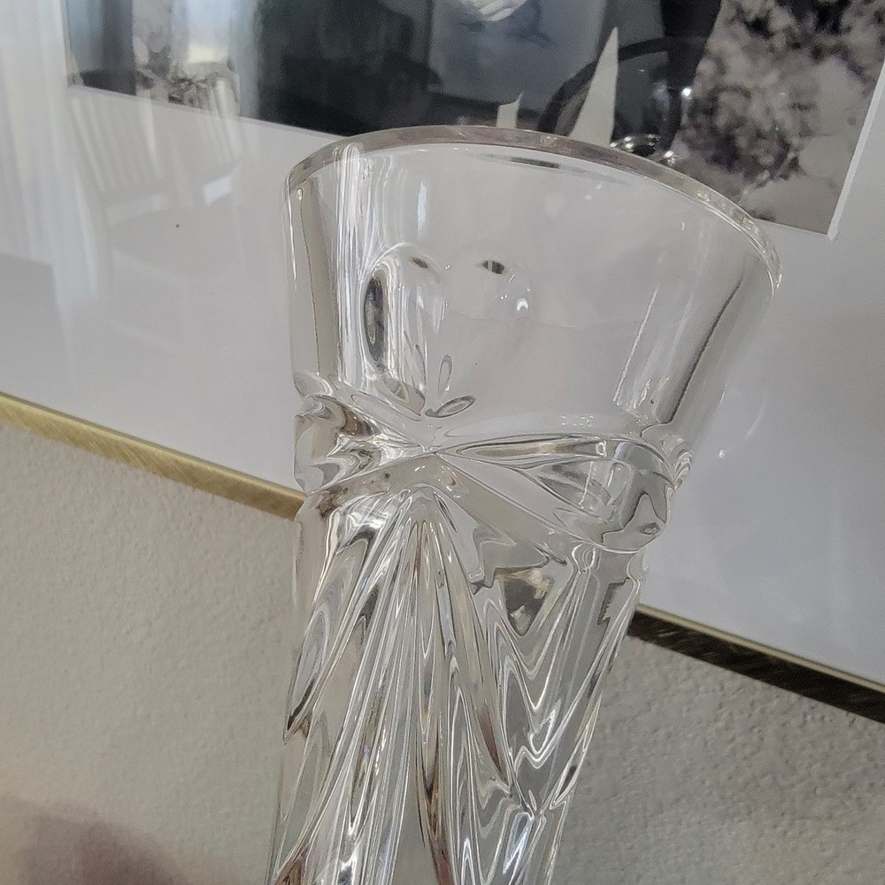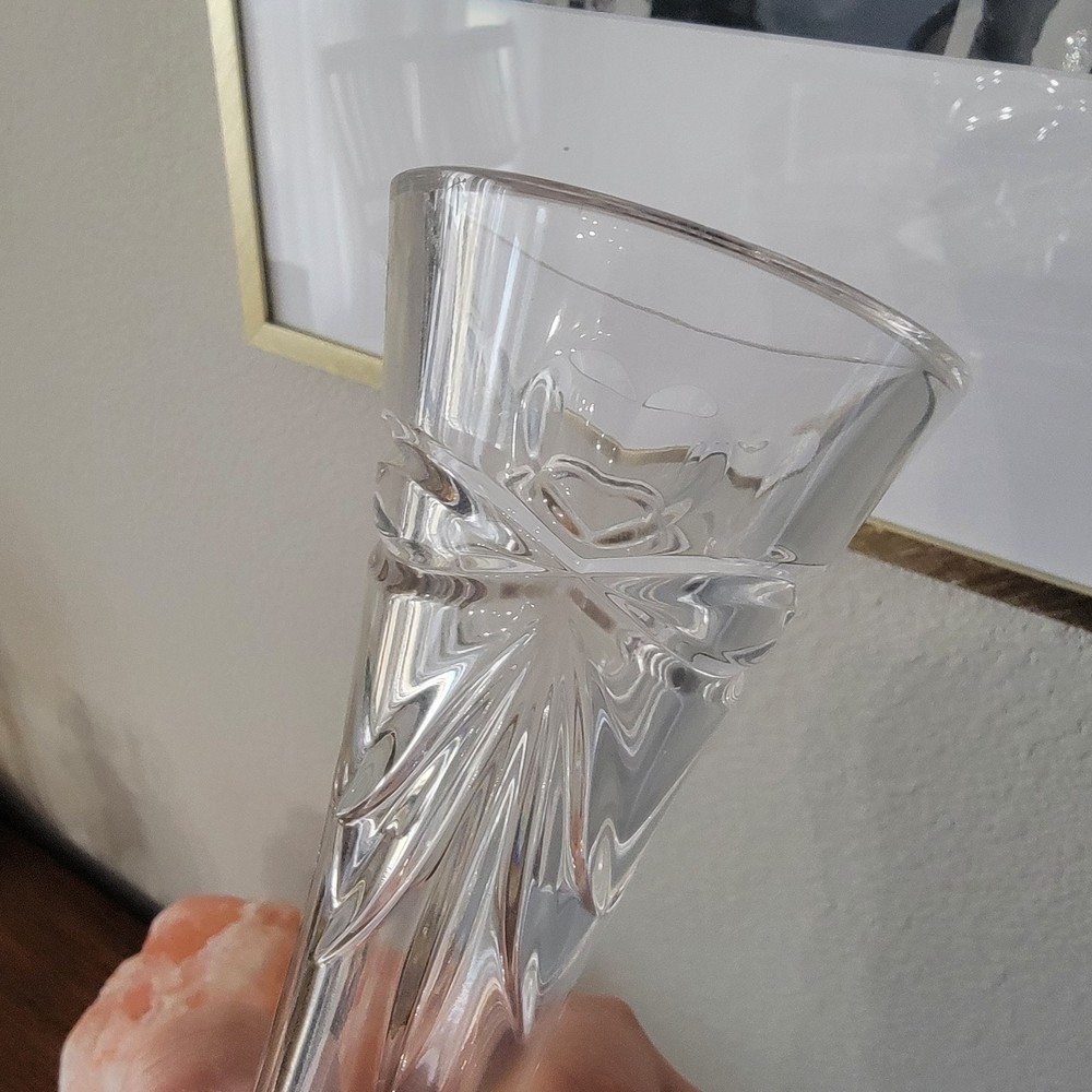 This beautiful 6 1/2" Waterford vase is perfect for displaying flowers or other decorative items. The vase features a stunning "LOVE" pattern, with a contemporary style that is sure to impress. The vase is an original Waterford piece, with the etched Waterford Seahorse Mark signature indicating its authenticity. Crafted from high-quality crystal, this vase is both elegant and durable. The glossy finish and hand-blown glass production technique make it a unique and valuable addition to any collection. Whether you're looking for a special gift or a addition to your own home decor, this Waterford vase is sure to delight.