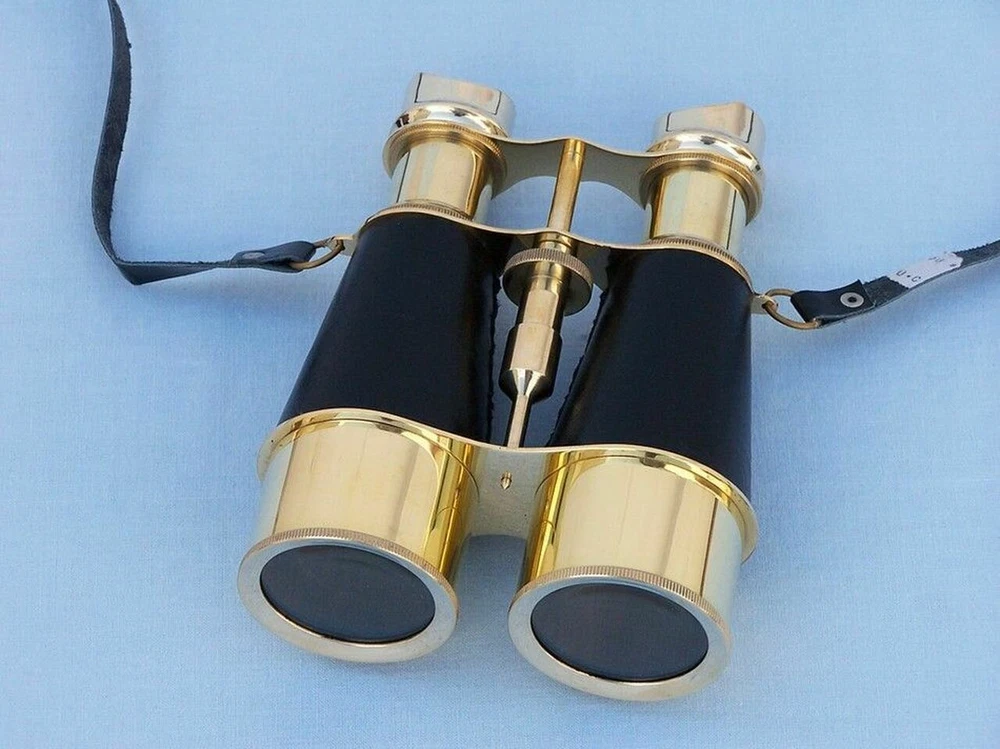 6 nches Admiral's Solid Brass Binoculars with Leather Case & Neck Strap ; Binocular's for Adult's & Kids This Wonderful 6 Inches Polished Shiny Brass N autical Binoculars - "Black Leather Wrapped" with Beautiful Black Leather Case are of Shiny Polished Brass Metal and make you feel like a true Navigator when used. Focusing is accomplished using a knurled focusing knob on middle of the binoculars near eye-piece. The B inoculars have a leather strap and comes with a handmade leather case of Black Color. Functional and Decorative N autical Decor Item. 10x magnification. Easy Focusing with Knurled Knob. Made with High Quality Material - Brass ,High Quality Glass Lenses (Not Plastic One) & Leather . Leather Strap and H andmade leather case included for Safe Keeping. Excellent Item to Gift Your Loved Ones !!! We Shipped our Items after Inspecting Quality of Every Item to Our Lovely Buyers & Customers. Business Customers are Most Welcome at Lowest & Affordable Prices