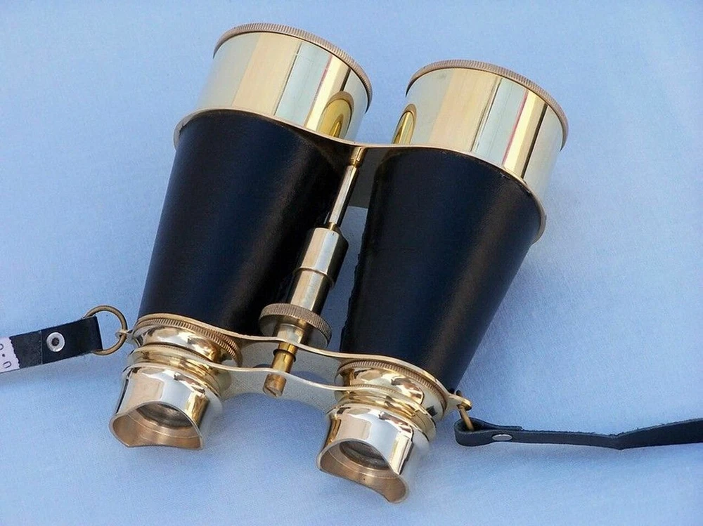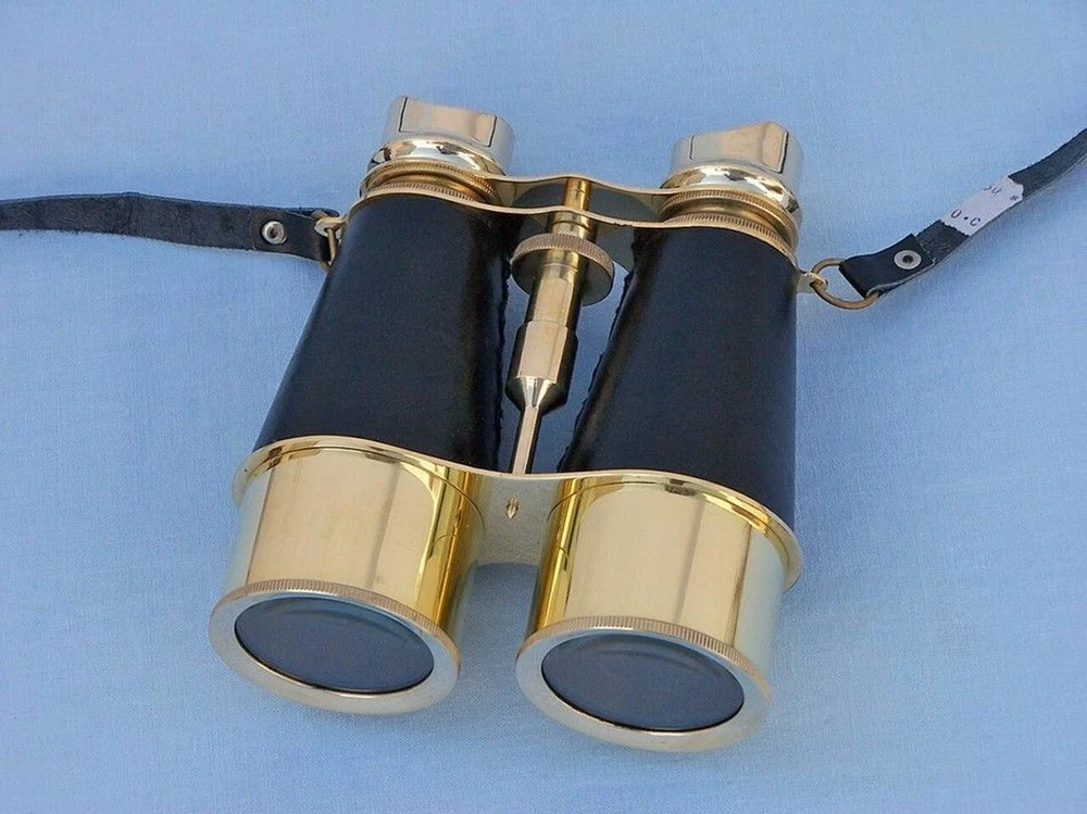 SIFAAT WORLD 6 Inches Admiral's Solid Brass Binoculars with Leather Case & Neck Strap ; Binocular's for Adult's & Kids . This Wonderful Sifaat World 6 Inches Polished Shiny Brass N autical Binoculars - "Black Leather Wrapped" with Beautiful Black Leather Case are of Shiny Polished Brass Metal and make you feel like a true Navigator when used. Focusing is accomplished using a knurled focusing knob on middle of the binoculars near eye-piece. The B inoculars have a leather strap and comes with a handmade leather case of Black Color. Functional and Decorative N autical Decor Item. 10x magnification. Easy Focusing with Knurled Knob. Made with High Quality Material - Brass ,High Quality Glass Lenses (Not Plastic One) & Leather . Leather Strap and H andmade leather case included for Safe Keeping. Excellent Item to Gift Your Loved Ones !!! We Shipped our Items after Inspecting Quality of Every Item to Our Lovely Buyers & Customers. Business Customers are Most Welcome at Lowest & Affordable Prices . Sold & Manufactured By SIFAAT WORLD from INDIA. Shipped Within 2 Days After Clearing Payments.