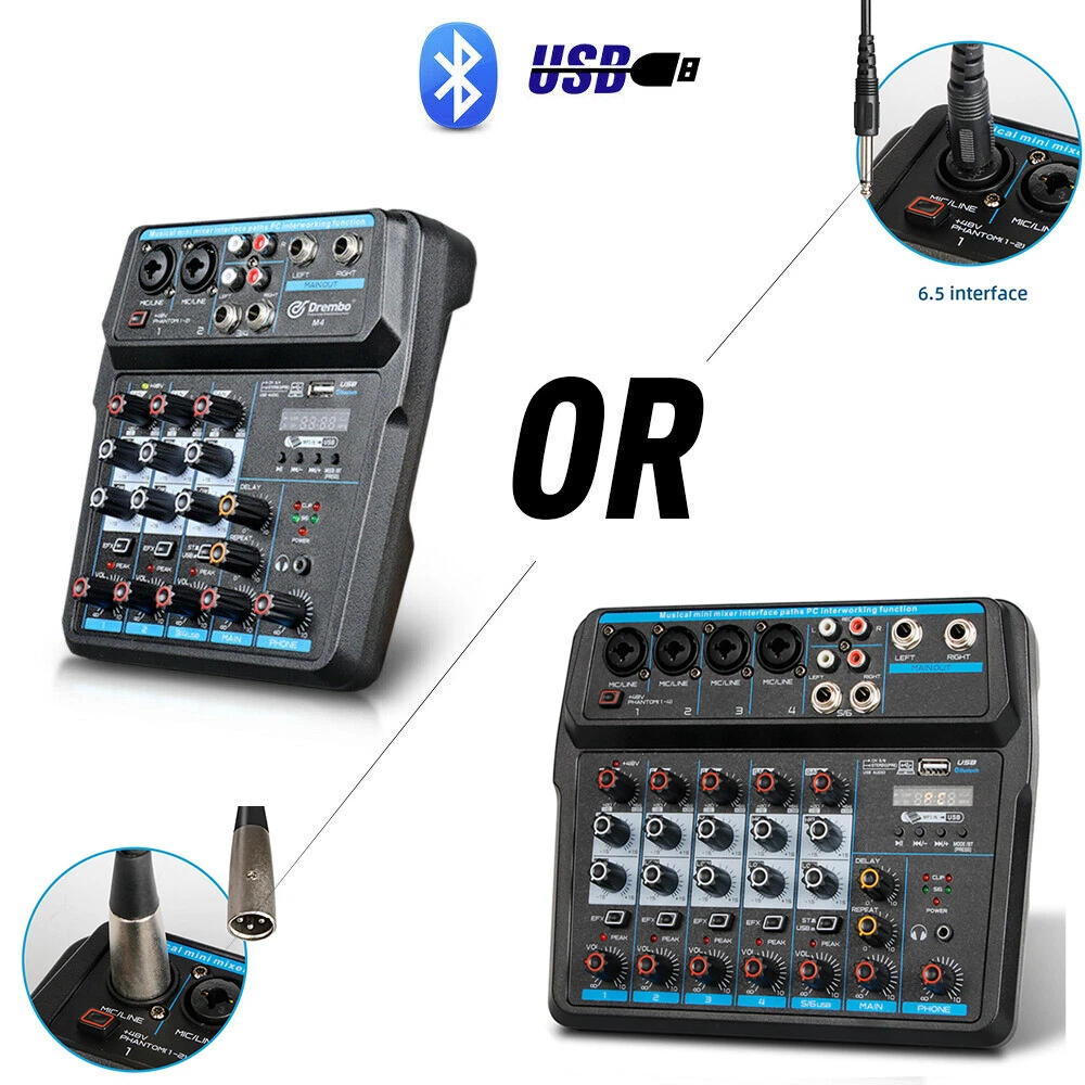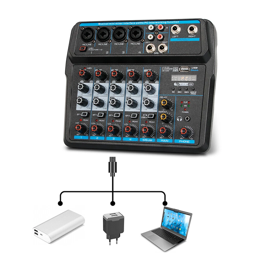 6 Channel Mini Audio Mixer Console USB DJ Sound Live Studio Mixing Amplifier