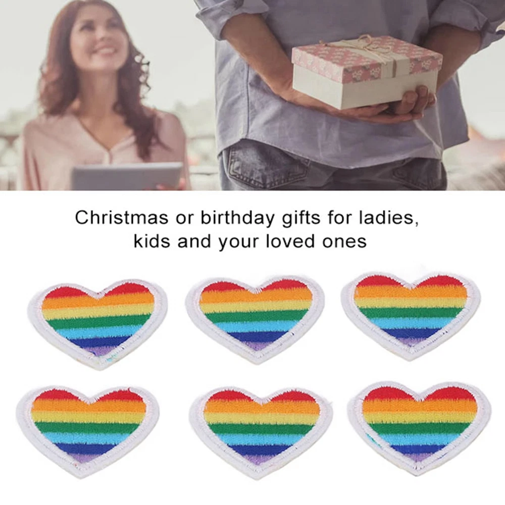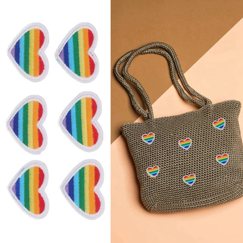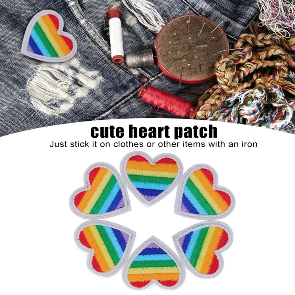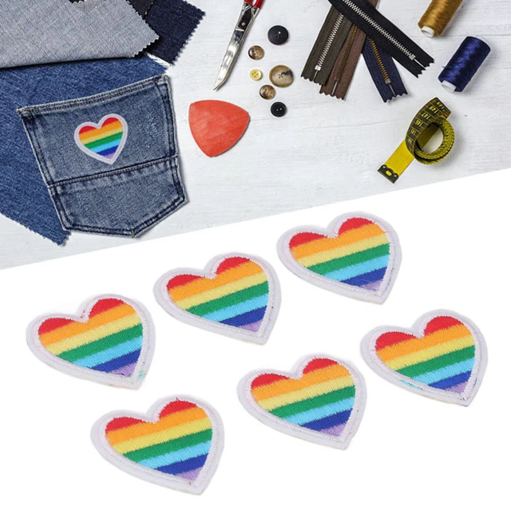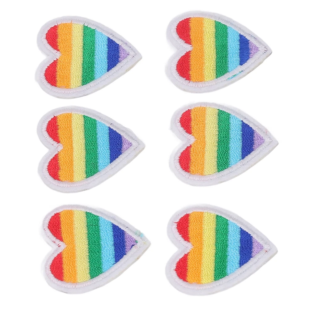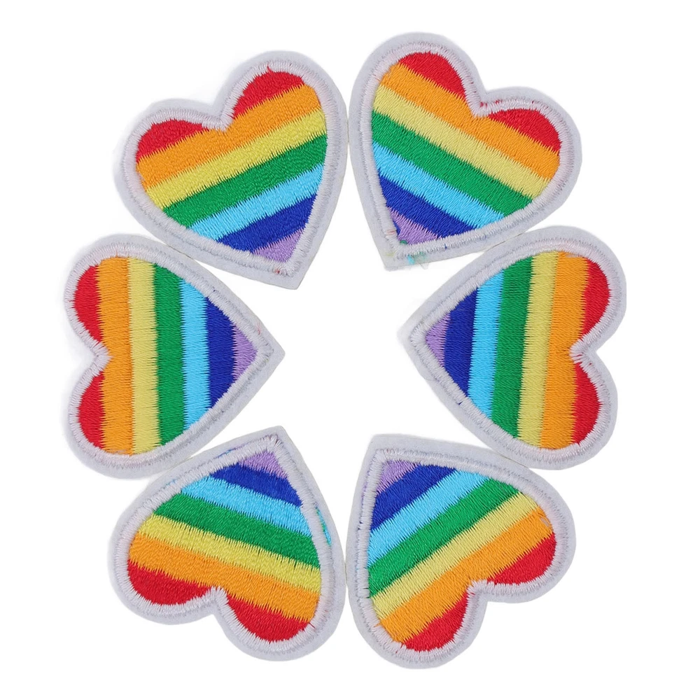 6 Colorful Embroidery Heart Iron On Patches For DIY Sewing Projects CSY