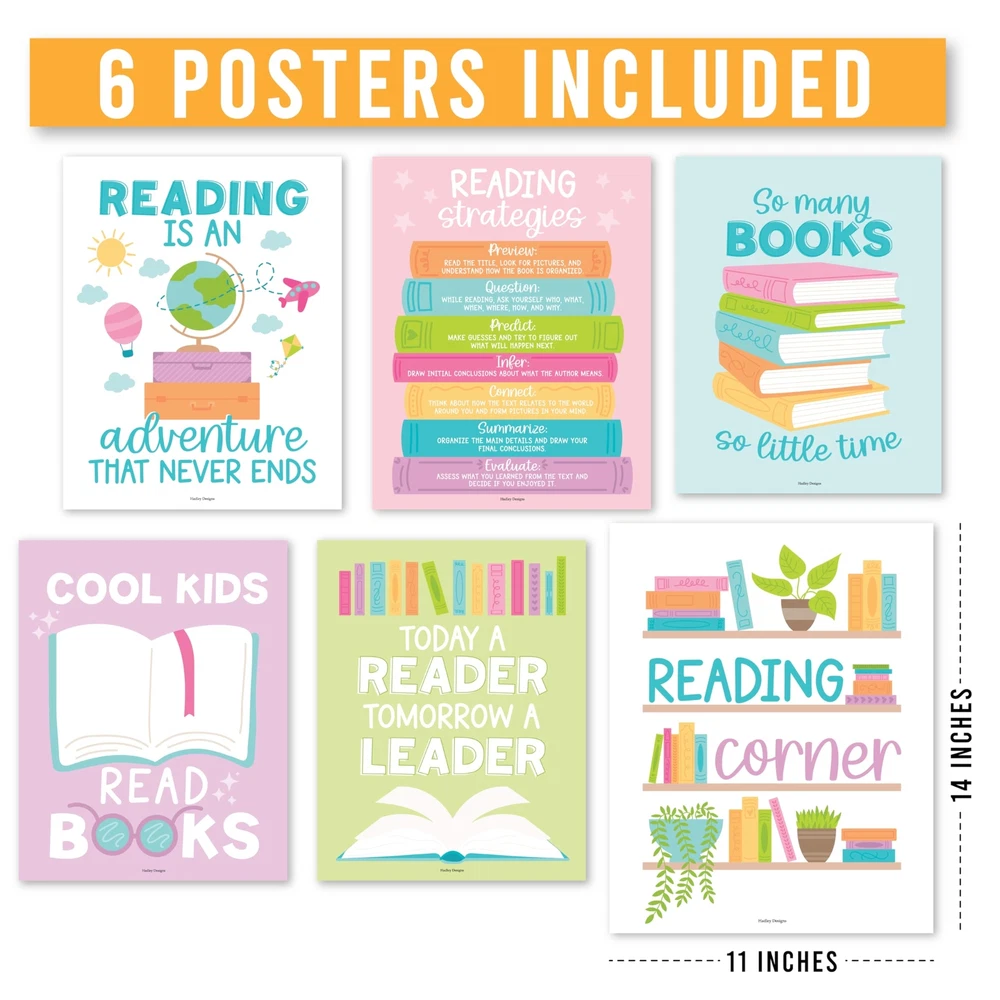 6 Colorful Reading Posters For Classroom Reading Corner - Reading Corner Deco...