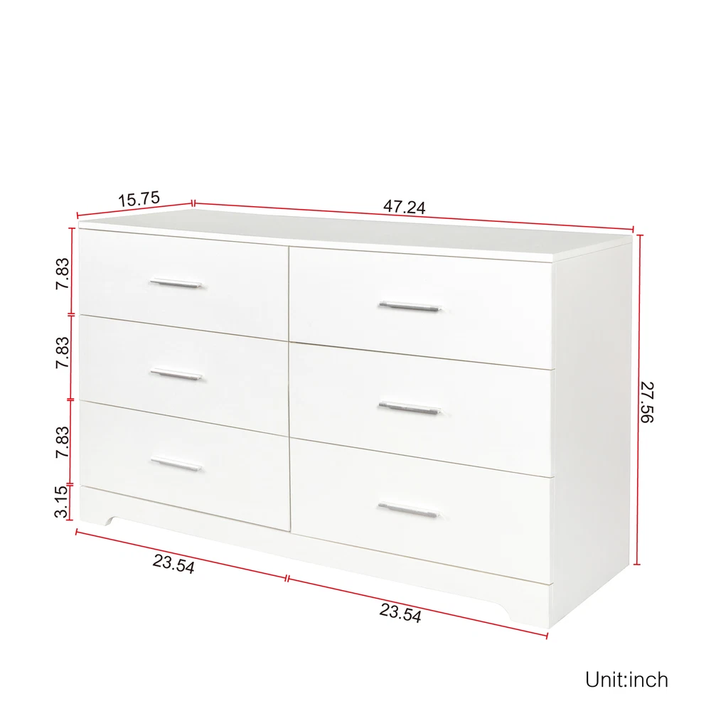listing template VISIT OUR STORE SIGH UP FOR EMAIL 6 Drawer Dresser Chest of Drawers Modern Wood Storage Organizer for Bedroom About this item 【Large Capacity Storage to Get Rid of Clutter 6 spacious storage drawers providing ample storage space for clothes, trousers or linens. Also could display photos and decorations on the large top surface. Making it easier for you to sort and store clutter! 【Perfect Combination of TV Stand and Drawers】The chest of drawers can be combined with your wall-mounted TV as an entertainment center for your DVDs, record players, and other devices. Hold your entertainment center keep clean and tidy. 【Materials Speak for Themselves】Quality MDF boards for long-lasting use, metal handles and smooth slides on each of the drawers for easy opening. The surface is smoothly painted and 4 anti-toppling devices are provided, all these details for safer use. 【Modern and Multifunctional】The premium white finish gives a modern style. This storage dresser could easily fit in various living spaces: living rooms, bedrooms, hallways, entryways, closets and nurseries, etc. This practical and beautiful cabinet is a great gift for family or friends! 【Easy to Assemble】Detailed assembly instructions will guide you through a hassle-free installation process. The drawer will ship flat to your door and require 2 adults to assemble. Overall measures 47.2" (W) x 15.7" (D) x 27.56" (H). Features: - Durable Construction: Manufactured from high-quality P2 class 15MM particle board, ensuring long-lasting durability and robustness. - Elegant White Finish: The sleek white finish adds a touch of sophistication and seamlessly blends with any home decor. - Spacious Storage: Six wide and deep drawers, each capable of holding up to 22 lbs, allowing you to store items of various sizes. - Versatile Use: Ideal for the bedroom, living room, or entryway, offering a stylish solution for keeping your space tidy. - Easy Assembly: come with installation hardware and manual, anti-toppling accessories are also included Specifications: 1. Material: P2 Class 15MM Particle Board 2. Color: White / Black 3. Dimensions: (47.2 x 15.7 x 27.6)in / (120 x 40 x 70)cm (W x D x H) 4. Drawer Size: (21.7 x 13.8 x 4.3)in / (55 x 35 x 11)cm (W x D x H) 5. Single Drawer Weight Capacity: 22 lbs 6. Product Weight Capacity: 331 lbs 7. Net Weight: 99.2 lbs Package Includes: 1 x 6-Drawer Double Dresser Shipping Policy 1. Ship worldwide from New Jersey by reliable shipping companies -- USPS, UPS, FEDEX, DHL, etc., and only to VERIFIED PAYPAL ADDRESS. Transport Delivery ETA. Package handling only takes 1 business day at our warehouse, so please make sure entering correct payment and shipping information before checking out. Once your payment is completed, we are not going to accept any more changes to your order. 2. International Buyers – Please Note: a. Import duties, taxes and charges are not included in the item price or shipping charges. These charges are the buyer's responsibility. b. Please check with your country's customs office to determine what these additional costs will be prior to bidding/buying. 3. Please check your shipping address carefully before checkout, it can't be changed if order completed. 4. Orders placed on weekend will be shipped within 2 days.Notification of shipment with tracking number will be sent to buyers. 5. Standard shipping: 2-7 business days Expedited Shipping: 2-3 business days One-day Shipping: 1 business day International shipping: Varies 6.Ship within 1 business day once payment completed. Notification of shipment with tracking No. will be sent to buyer. 7.We offer discounts for combine shipping. Please contact us first if you need combine shipping, and an invoice with discount will be sent to you. 8.Please allow 5 business days for delivery to US destinations on any eBay orders and 14 business days for delivery to any International destinations. We highly recommend our buyer choose priority/expess mail for international delivery which is much more stable. Return Policies 1. Refunds given only if item DOA and cannot be replaced via PAYPAL . If so, Please contact us with 5 days since you receive the item and and return to us within 30 days from the delivery date for exchange or refund. 2. If you need return, please contact our customer service representative, let us know the detailed problem and send us some pictures for confirmation. Payment Payment should be sent within 8(EIGHT) days of auction closing. Feedback If you are dissatisfied for any reason, please do not be quick to leave negative/neutral feedback. We work hard to make sure EVERY CUSTOMER 100% SATISFIED and resolve any problem for you. Work Time Work Time: Monday to Saturday About Us | Newsletter| Feedback| Contact Us Copyright © 2022 LikeDeal. All rights reserved. 无标题文档 6 Drawer Dresser Chest of Drawers Modern Wood Storage Organizer for Bedroom About this item 【Large Capacity Storage to Get Rid of Clutter 6 spacious storage drawers providing ample storage space for clothes, trousers or linens. Also could display photos and decorations on the large top surface. Making it easier for you to sort and store clutter! 【Perfect Combination of TV Stand and Drawers】The chest of drawers can be combined with your wall-mounted TV as an entertainment center for your DVDs, record players, and other devices. Hold your entertainment center keep clean and tidy. 【Materials Speak for Themselves】Quality MDF boards for long-lasting use, metal handles and smooth slides on each of the drawers for easy opening. The surface is smoothly painted and 4 anti-toppling devices are provided, all these details for safer use. 【Modern and Multifunctional】The premium white finish gives a modern style. This storage dresser could easily fit in various living spaces: living rooms, bedrooms, hallways, entryways, closets and nurseries, etc. This practical and beautiful cabinet is a great gift for family or friends! 【Easy to 