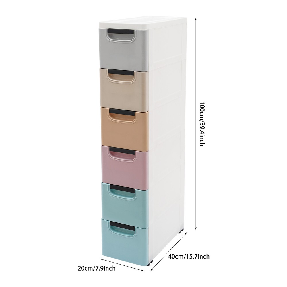 6 Drawers Space Saving Storage Cabinet 15.7*7.9*39.4in + wheels for Narrow Space ??Application The product is suitable for the living room, bedroom, children's room, study, office, studio, classroom, bathroom, office, or laundry room. ?? Specifications Color: Multicolor Material: PP Process: Injection Molding Total Load-bearing Capacity: About 35kg/77.16lbs Mount Type: Free Standing Assembly Required: Yes Product Size: 39.88*20*100cm /15.7*7.9*39.4in Package Size: 41*40*27cm/16.14*15.75*10.63in Gross Weight: 5.9kg/13lbs Net Weight: 4.7kg/10.36lbs ?? Package Included 1* S torage Cabinet 1* English Manual Other Needed Accessories ?? Description This smartly designed s torage cabinet will provide plenty of space for organizing your belongings. With 6 drawers, it can easily categorize and store your books, papers, and other items to keep your home environment organized. It adopts high-quality PP and has a modern style, combining a tough structure with a beautiful appearance, making it an ideal choice for improving your life quality. ?? Key Features Sturdy and Durable: The high-quality PP and exquisite injection molding process make the product sturdy, non-toxic, odorless, waterproof , and impact-resistant , keeping it practical for long-term use. Strong Load-bearing Capacity: The thickened panels and sturdy structure allow the product to hold a weight of about 77.16 lbs so you can use it with confidence. Thoughtful Design: The drawer has an anti-drop buckle design, which can prevent accidental drawer sliding down and injuring people. Large Capacity: The 6 drawers provide enough space for categorizing and storing your office supplies, kitchen utensils, toys, snacks, clothes, books, or bath products, keeping your belongings more organized and your home environment more comfortable. The top platform can also store some small items, such as cups, potted plants, and photo frames. Easy to Move: It comes with directional wheels that allow you to easily move this cabinet for easy sweeping or move it to another room. Simple Installation: With a simple structure and the English manual, you can finish the installation with less time and effort. Clean with Ease: The smooth surface, simple structure, and removable drawers allow you to easily clean the product with a damp cloth (not included). Space Saving: Its slim body allows you to place it between the furniture or in the narrow corners, making full use of the space in your home. Buy with Confidence: We stand behind all our guests and look forward to assisting you with your purchase. It is our pleasure to answer your confusion and questions. The end of the story between us is not "we sell and you buy". ?? Details Smooth Edges: They are comfortable to the touch and can protect your hands from getting scratched. Convenient Grip: Each drawer comes with a practical grip for you to easily pull drawers out. ?? Notes Please check the size carefully before ordering. Please allow the slight color difference caused by the shooting light and 1-3cm error due to manual measurement, and make sure you do not mind before you order. Payment Delivery details Terms of sales About us Contact us Payment We accept ebay payment 。 Fees such as import duties, taxes are not included in the item price or shipping costs. These charges are the buyer's responsibility. Delivery details Shipping: 2-9 working days to: USA Terms of sales We maintain high standards of excellence and strive for hundred percent customer satisfaction. Feedback is very important to us. We hope that you contact us immediately before you give neutral or negative feedback, so that we can address your concerns. It is impossible to address issues if we do not know about them! About us Your satis faction is our ultimate goal. We work hard to earn your trust and future business. Our certified technicians have tested each item before shipping. The unit comes with 1 year limited warranty on all manufacturing defects. a) If you receive a defective item, you may return it or ask for a discount. Please contact us within 14 days after you receive the package. b) What you returned must be intact and in its original packaging as re? u. Customer is responsible for shipping costs of the returned item. c) We will cover the cost of shipping back t with the shipping rate indicated in the registration page. We will send you a new unit or refund the full payment you paid. Thank you. Contact us Business Hour Business Hour: Monday To Friday: 8:30 AM to 5:00 PM (Beijing China time) Due to time zones, our reply to your questions may not be immediately. But within above working time, we will reply your email within 24 hours. If it's non-workdays, please kindly be patient and wait till Monday. Please contact us with ebay message. Please feel free to contact us if you have any questions. Monday To Friday: 8:30 AM to 5:00 PM (Beijing China time) Due to time zones, our reply to your questions may not be immediately. But within above working time, we will reply your email within 24 hours. If it's non-workdays, please kindly be patient and wait till Monday. Please contact us with ebay message. Please feel free to contact us if you have any questions. Feature 2 Special Fashion Design Type Storage Cabinet Color Multicolor Material PP Process Injection Molding Total Load-bearing Capacity About 35kg/77.16lbs Mount Type Free Standing Assembly Required Yes Product Size 39.88*20*100cm/15.7*7.9*39.4in Package Size 41*40*27cm/16.14*15.75*10.63in Gross Weight 5.9kg/13lbs Net Weight 4.7kg/10.36lbs Item Length 20cm/7.9in Item Width 39.88cm/15.7in Item Height 100cm/39.4in Brand Unbranded