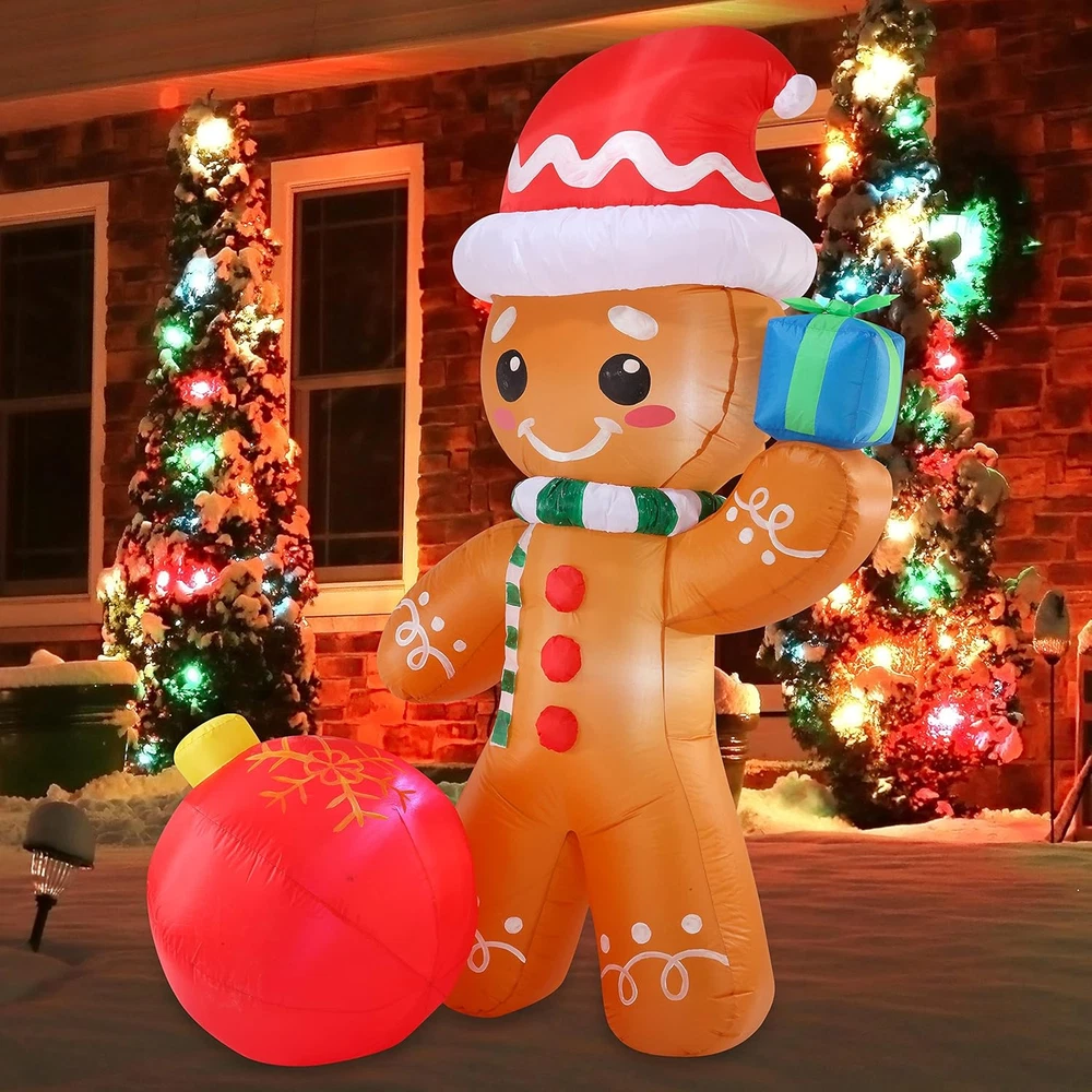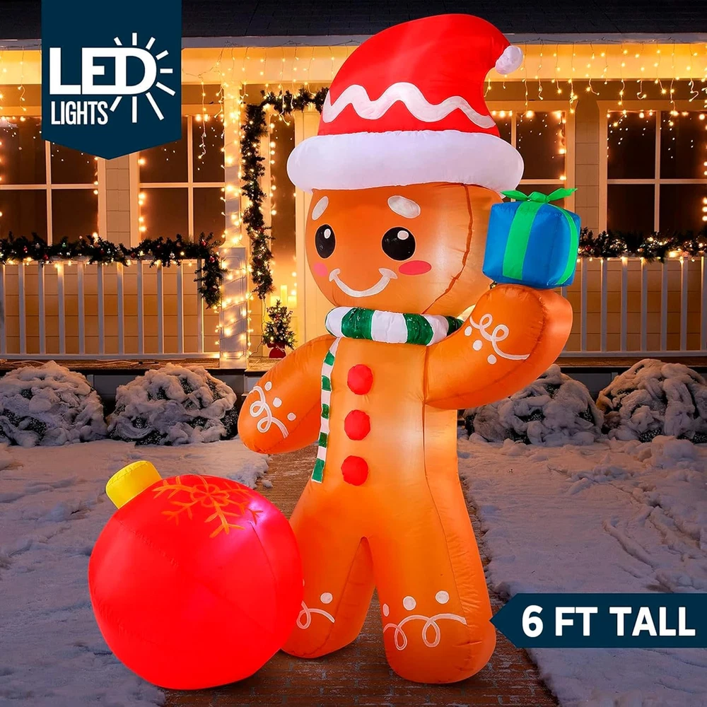 Menu Other Items Feedbacks About Us Contact Us Add To Favorites 6 FT Christmas Inflatable Gingerbread, Outdoor Decorations Gingerbread with Ornament Christmas Inflatable with Build-In Leds, Blow up Decorations for Xmas Party Indoor Yard Garden Lawn Décor 6 Feet Tall Gingerbread with Ornament Inflatable comes with an extended cord, ground stakes, fastened ropes, built-in sandbags, and a plug with UL certification. Bright built-in LED lights. Light up in the evening for the best attraction to neighbors and guests. Premium Quality. Very easy and safe for kids to help decorate! Plug it in, everything pops up in a minute! Perfect for Christmas outdoor yard garden decorations, trick or treat event decoration, Christmas night event. Ideal for Christmas event decoration, Holiday blow-ups, Christmas night event, Christmas prop, classroom decorations and more. EXCEPTIONAL CARE: We're big on the little things. That's why customer safety and satisfaction are at the heart of everything we do. if products don't meet your expectations. We look forward to ensuring every moment brings you joy. Product Description Item Specification Item model number 31105 Global Trade Identification Number 00840165846217 Light Color Bright White Color White Material Vinyl Country of Origin China Item Weight 3.12 pounds Theme Religious Occasion Christmas Special Feature Led Lights Package Dimensions 9.92 x 8.27 x 7.64 inches Cartoon Character Gingerbread Man Dimensions Shipping Returns Additional Info Product Dimensions: 8.27 inches x 9.92 inches x 7.64 inches. Weight: 3.12 lb Fast shipping is very important for us. Our standard shipping service is FREE. Your order will be shipped within 1-3 business days upon full payment received. Most items are delivered within 3-5 business days, however, please allow 3-10 business days. We are shipping only to USA. We only ship to the confirmed Paypal address. We reserve the right to cancel any order for any reason at any time. We are not responsible for undeliverable addresses. We offer a 30 day return policy from checkout winning date. Your satisfaction is guaranteed! If for any reason you are unhappy with your item, just return it within 30 days for a full refund, minus shipping cost. Please contact us prior to initiating a return so that we can issue you a refund authorization. Items defective upon receipt must be packaged in their retail packaging as if new and returned with a detailed description of the problem. Return shipping fees are not refundable. We reserve the right to decline any returns if the above guidelines are not followed. All of our items, unless otherwise stated, will only run on 120 volts. Please check to make sure your country complies with these specifications. If you have a problem or question regarding your transaction please contact us before leaving any type of feedback. We will work with you to resolve any problem you may have.