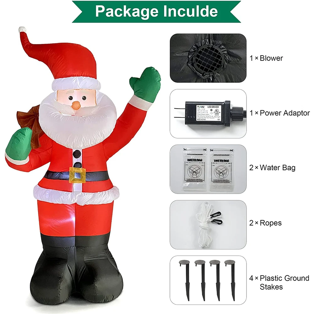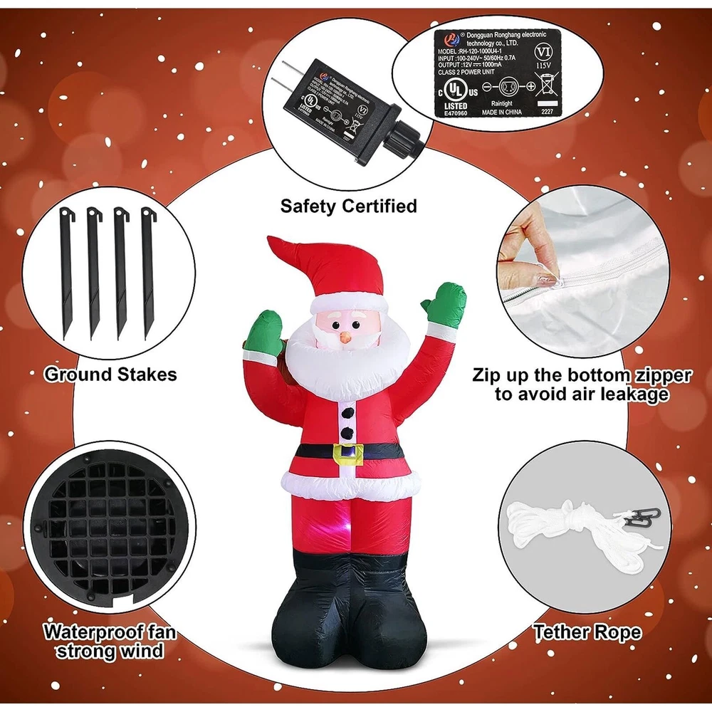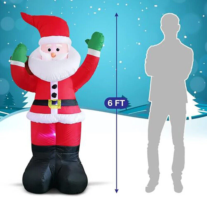 Mounting: Free Standing MPN: Does Not Apply Style: Art Deco Character Family: Outdoor Decorations Care Instructions: Easy Care Department: Kids, Teens, Adults, Men, Women Room: Any Room Color: Multicolor gtin13: Does not apply Character: Santa Claus Type: Christmas Decorations Material: Plastic Occasion: Christmas Features: Inflatable, LED, Waterproof, Illuminated, Smooth Finish: Yard Decor Item Height: 1.8M/6FT Power Source: Wall Plug-In Brand: Unbranded UPC: Does not apply Lighting Technology: LED