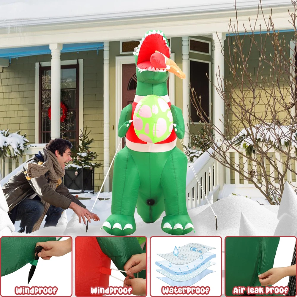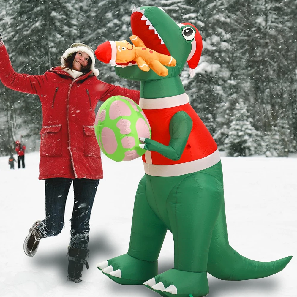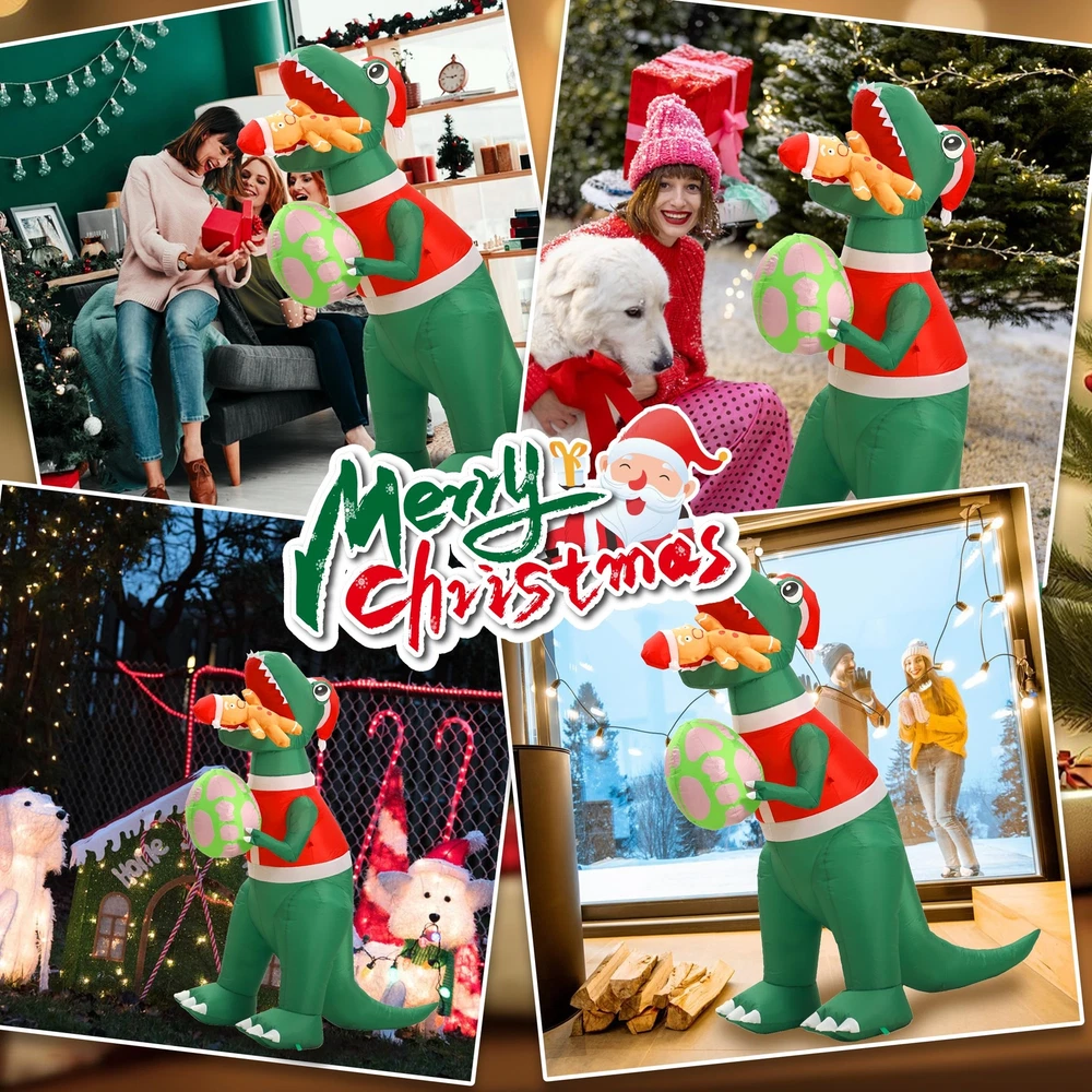 IMPRESSIVE SIZE: Standing at 6 feet tall, this Christmas inflatable dinosaur is sure to make a statement and capture the attention of all who pass by. The outdoor Christmas decorations add a touch of magic to your holiday decorations. VIBRANT AND FESTIVE: The dinosaur christmas decorations with its colorful and festive design, this inflatable dinosaur is a cheerful addition to any Christmas display. The Christmas inflatables outdoor decorations bright LED lights illuminate the decoration, creating a joyful and captivating sight day and night. DURABLE AND WEATHER-RESISTANT: Crafted from waterproof durable polyester material materials, this funny Christmas inflatable is built to withstand the elements. Whether it's rain, snow, or wind, you can rest assured that your holiday decor will remain in excellent condition throughout the season. EASY SETUP AND STORAGE: Setting up this blow up dinosaur is a breeze. Simply plug Christmas yard inflatables into an electrical outlet, and the dinosaur Christmas decorations will inflate within minutes. When the holiday season comes to an end, The xmas inflatables deflate quickly and can be easily folded and stored until the next year. VERSATILE DISPLAY OPTIONS: With its versatile design, this inflatable dinosaur can be placed in various locations. Whether you want to brighten up your front yard with the Christmas Inflatables dinosaur gingerbread Man, spruce up your garden, or add a touch of holiday spirit to your living room, this Christmas outside inflatables fits seamlessly into any space.