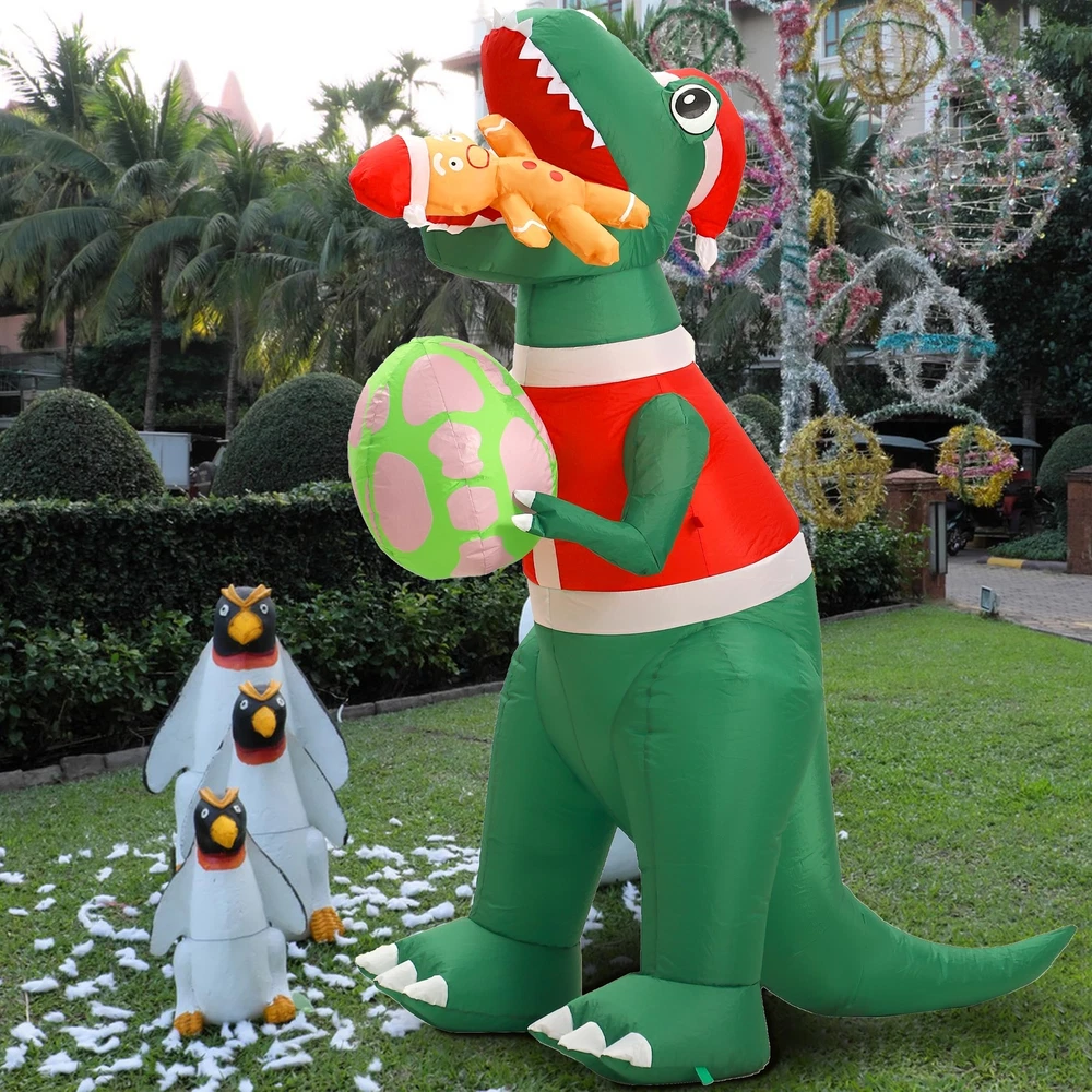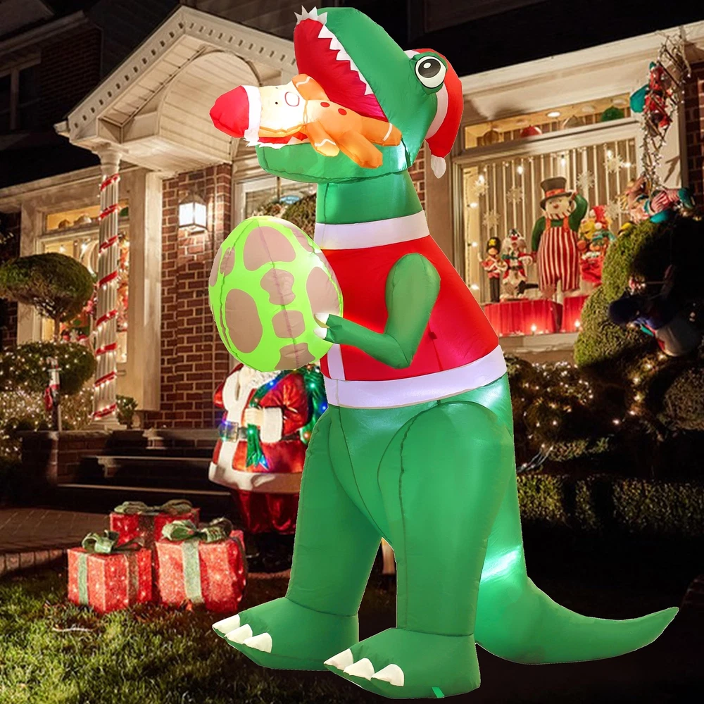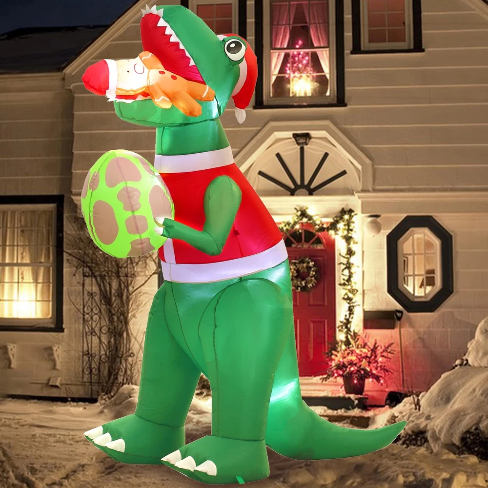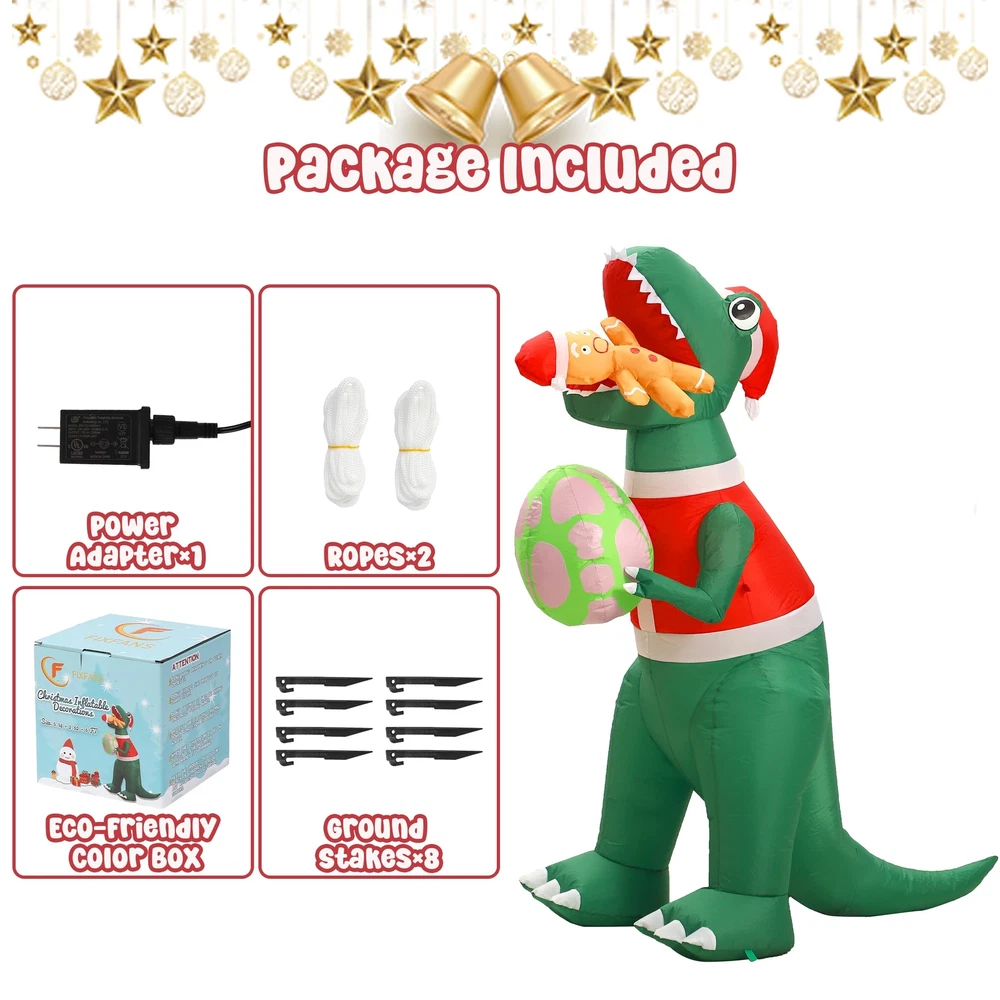 IMPRESSIVE SIZE: Standing at 6 feet tall, this Christmas inflatable dinosaur is sure to make a statement and capture the attention of all who pass by. The outdoor Christmas decorations add a touch of magic to your holiday decorations. VIBRANT AND FESTIVE: The dinosaur christmas decorations with its colorful and festive design, this inflatable dinosaur is a cheerful addition to any Christmas display. The Christmas inflatables outdoor decorations bright LED lights illuminate the decoration, creating a joyful and captivating sight day and night. DURABLE AND WEATHER-RESISTANT: Crafted from waterproof durable polyester material materials, this funny Christmas inflatable is built to withstand the elements. Whether it's rain, snow, or wind, you can rest assured that your holiday decor will remain in excellent condition throughout the season. EASY SETUP AND STORAGE: Setting up this blow up dinosaur is a breeze. Simply plug Christmas yard inflatables into an electrical outlet, and the dinosaur Christmas decorations will inflate within minutes. When the holiday season comes to an end, The xmas inflatables deflate quickly and can be easily folded and stored until the next year. VERSATILE DISPLAY OPTIONS: With its versatile design, this inflatable dinosaur can be placed in various locations. Whether you want to brighten up your front yard with the Christmas Inflatables dinosaur gingerbread Man, spruce up your garden, or add a touch of holiday spirit to your living room, this Christmas outside inflatables fits seamlessly into any space.