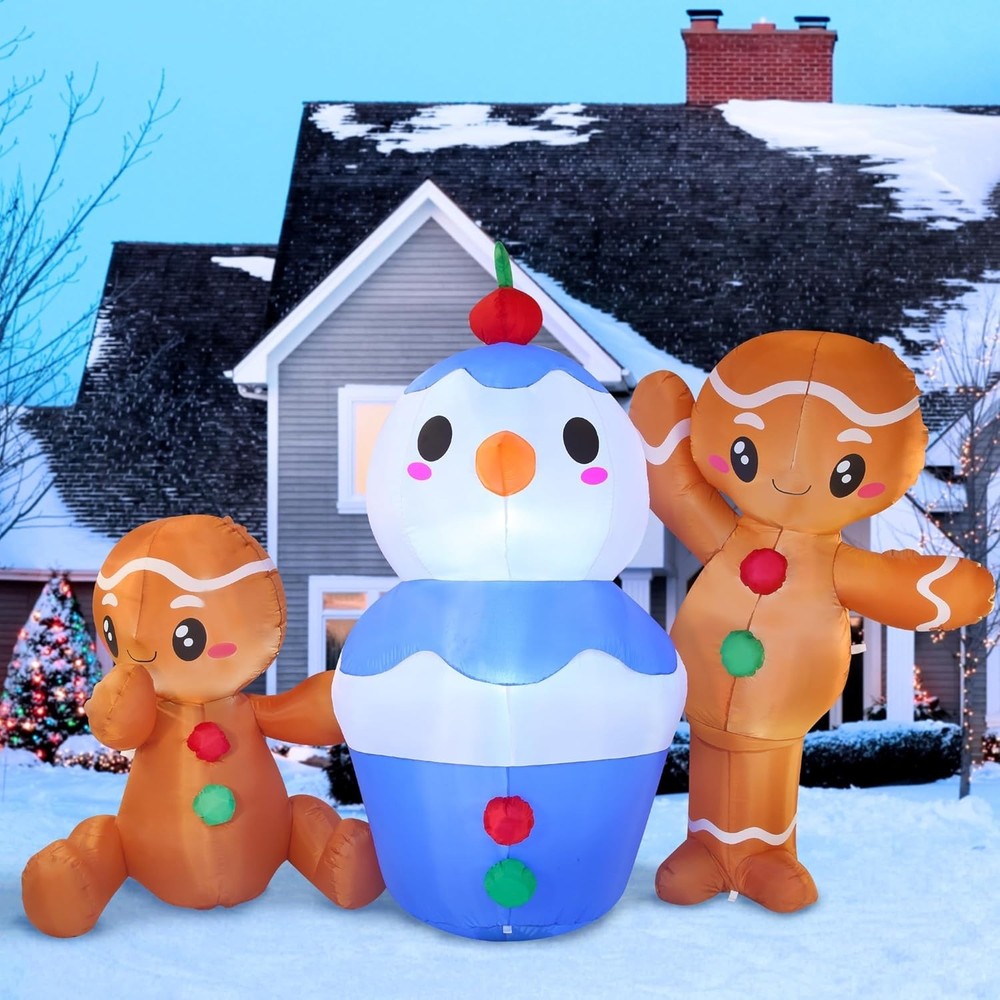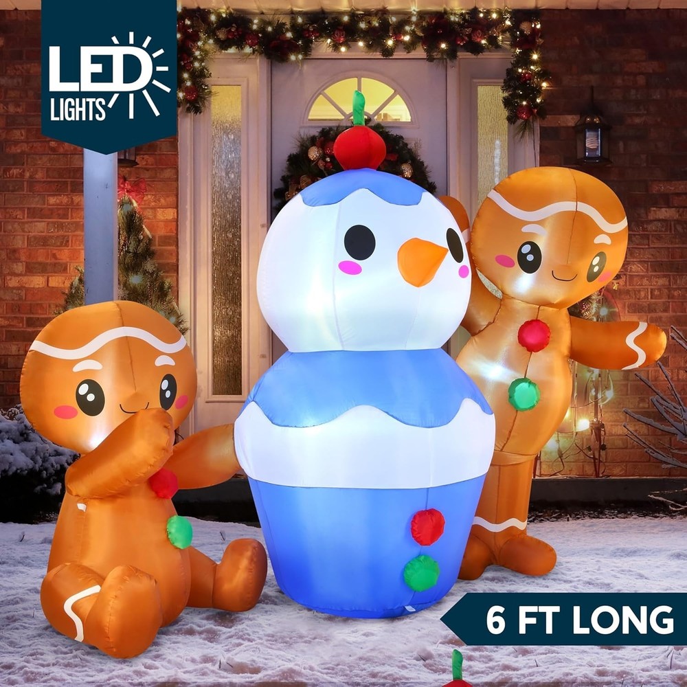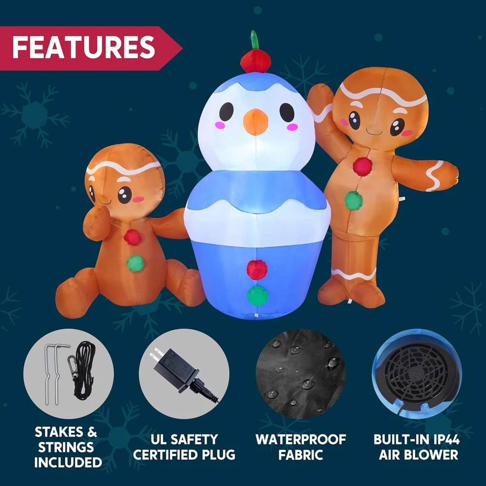 Home6 FT Tall Christmas Inflatable Gingerbreadman Building Ice Cream Snowman