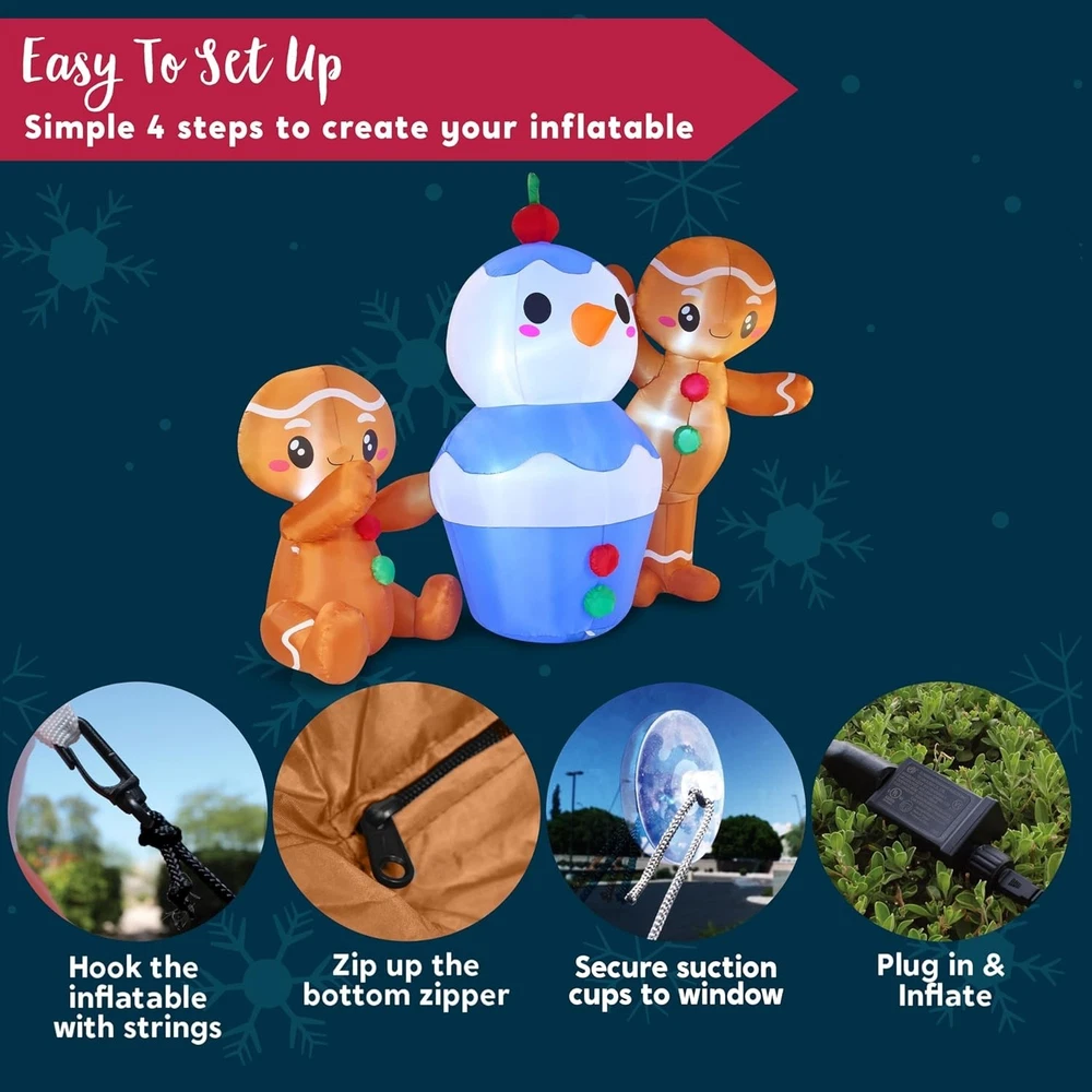 6 FT Tall Christmas Inflatable Gingerbreadman Building Ice Cream Snowman