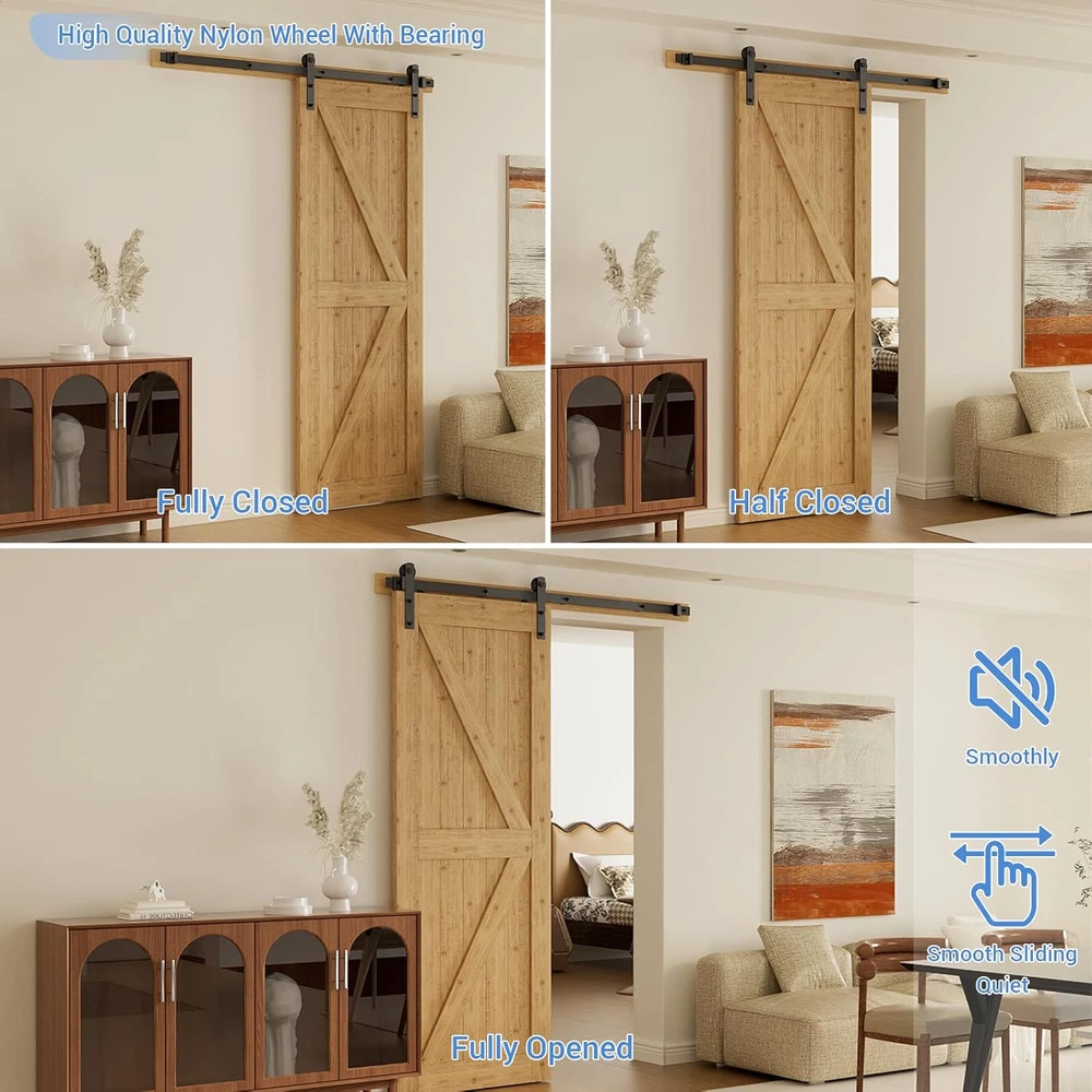 Store New Arrivals Add to Favorite View Feedback Contact 6 Feet Heavy Duty Sturdy Sliding Barn Door Hardware Kit -Smoothly and Quietly -Easy to Install Fit 36" Wide Door Panel (I Shape Hanger) Description Item model number A06SYP3-FBA Part Number YP2-Parent Style Modern Size 6 Feet Assembly Required Yes Item Package Quantity 1 Color I Style Hanger Material Metal Country of Origin China Batteries Required? No Item Weight 4.1 Pounds Batteries Included? No Special Features Easy to Install Installation Method Wall-Mounted Is Discontinued By Manufacturer No Product Dimensions 2 x 4 x 11 inches Included Components Tracks, Rollers Durability and Weight Capacity: Solid steel roller hanger and High strength industrial grade flat tracks hold MAX. 330LB/150KG door, anti-corrosion and little wear and tear for years of repeated use. Quiet and Smooth Operation: Super silently nylon wheels and Spring damping door stoppers provide soft close sliding when opening and closing, move quietly and smoothly. Save Space: For space-saving benefit, ccjh sliding barn door hardware kit is a great option for both homes, offices, narrow hallways and as well as smaller apartments, blending modern design with rustic appearance. Easy to Install: ccjh barn door hardware offers professional instruction and customer service to solve all installation problems in time, needs MIN. 6" space above the door, fits 1-3/16"-2" thick door. Well Complete Package: barn door kit-NO DOOR(6ft spliced rails, rail spacers, 2x rollers, 2x door Stops, 2x anti-jump disks, 1x floor guide), 6ft barn door track fits a max. 36" wide door, and gap from wall to door is 2-3/16" minus door thickness. Product Description ABOUT US We offer the best prices around on high quality products. Our E-store includes media such as books, movies, music and games while offering electronics, toys, sporting apparel, clothing, tools, general home, garden items and more. SHIPPING We are always working hard to ensure your package arrives as soon as possible. Please understand that some factors like weather, high postal traffic, and the performance of shipping companies are outside of our control. We offer free shipping to the lower 48 states and ship within 2 business days of payment, usually sooner. We do not accept P.O. Boxes. Please provide a physical address. RETURNS We offer a 30-Day Return Policy on items which you are not completely satisfied with. You have the option for a full-refund or an exchange of the item. No returns are available on items shipped outside of the USA. PAYMENT We accept PayPal. CONTACT US This page content is yet to come Please ad us to your favorite seller and visit again later Thank You CUSTOMER SATISFACTION We try our very best to make sure every customer is completely satisfied. If there's a problem, message us! We're happy to help.
