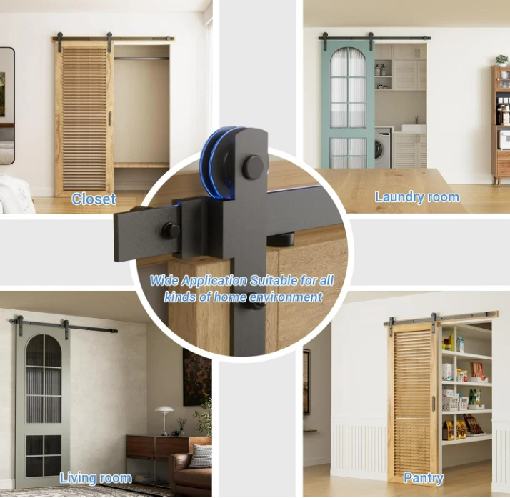 Free eBay listing template designed by dewiso.com 6 Feet Heavy Duty Sturdy Sliding Barn Door Hardware Kit -Smoothly and Quietly Durability and Weight Capacity: Solid steel roller hanger and High strength industrial grade flat tracks hold MAX. 330LB/150KG door, anti-corrosion and little wear and tear for years of repeated use. Quiet and Smooth Operation: Super silently nylon wheels and Spring damping door stoppers provide soft close sliding when opening and closing, move quietly and smoothly. Save Space: For space-saving benefit, ccjh sliding barn door hardware kit is a great option for both homes, offices, narrow hallways and as well as smaller apartments, blending modern design with rustic appearance. Easy to Install: ccjh barn door hardware offers professional instruction and customer service to solve all installation problems in time, needs MIN. 6" space above the door, fits 1-3/16"-2" thick door. Well Complete Package: barn door kit-NO DOOR(6ft spliced rails, rail spacers, 2x rollers, 2x door Stops, 2x anti-jump disks, 1x floor guide), 6ft barn door track fits a max. 36" wide door, and gap from wall to door is 2-3/16" minus door thickness. Contact us We can be contacted at any time through eBay messages if you have any questions, comments or product requests. We will respond to you within 24 hours and do our best to help you out! We encourage our customers to contact us with any questions or concerns! We'd like to be sure you are completely satisfied with your purchase.