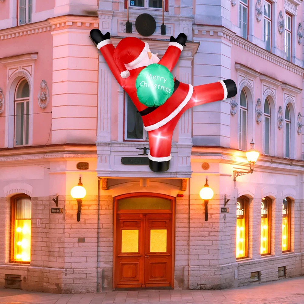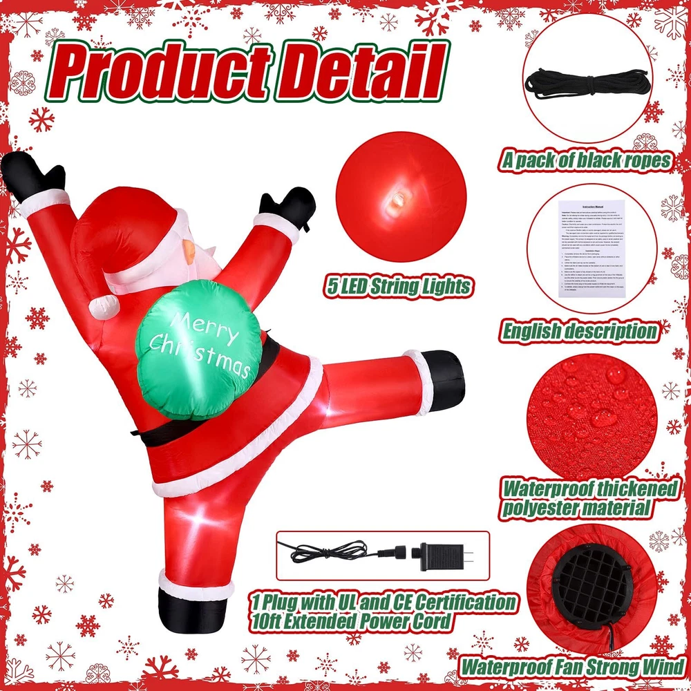 Features: Christmas Santa inflatable is made of waterproof polyester fabric, reliable and long lasting, which is waterproof and weatherproof, LED lights can light up the Christmas garden, for a long lasting using. The blow up Santa Claus is ideal decoration for Christmas, indoor, outdoor, front door, courtyard, lawn, garden, parties, restaurants, cafes, shops, roof, window, door, etc., it will bring everyone a wonderful and unforgettable memory. Specifications: Material: waterproof polyester fabric Color: black, red green, white Size: 5.9 ft in height Package includes: 1 x Christmas Santa inflatable 1 x Blower fan 1 x Adaptor plug 1 x Manual 1 x Rope 5 x LED light Notes: Manual measurement, please allow slight errors on size. The color may exist a slight difference due to different screen displays. Winding risk may exist, please keep our product away from children. Package Include: you will receive 5.9 feet height hanging Christmas Santa Claus inflatables, 5 LED lights, 1 blower fan with a working current voltage of 12V/0.8A, standard adaptor plug, manual and ropes; You just need to connect your blower fan to your Christmas inflatable and plug it in, cute inflatable Santa will show up in minutes Quality Material: this blow up hanging Santa is made of waterproof polyester fabric, reliable and long lasting, which is waterproof and weatherproof, non fading and well sewn, you don't need to worry about tearing or holes, LED lights can light up the garden, for a long lasting using Special Design: the inflatable Santa Claus climbing is different from general inflatable decorations, our large Christmas inflatable can be tied in many places, let you have a Christmas different from the past and the whole neighborhood can see and enjoy, creating a warm and fun atmosphere Easy to Use: this Christmas inflatable outdoor decoration is easy to use, plug in the power supply to inflate, using the rope to tie Santa Claus anywhere you want, easy to disassemble, easy to deflate and store, can be placed in any corner; Please make sure the blower fan is facing up when inflating because facing the ground will affect the inflation effect Practical Decorations: the blow up Santa Claus is ideal decoration for Christmas, indoor, outdoor, front door, courtyard, lawn, garden, parties, restaurants, cafes, shops, roof, window, door, etc., it will bring everyone a wonderful and unforgettable memory