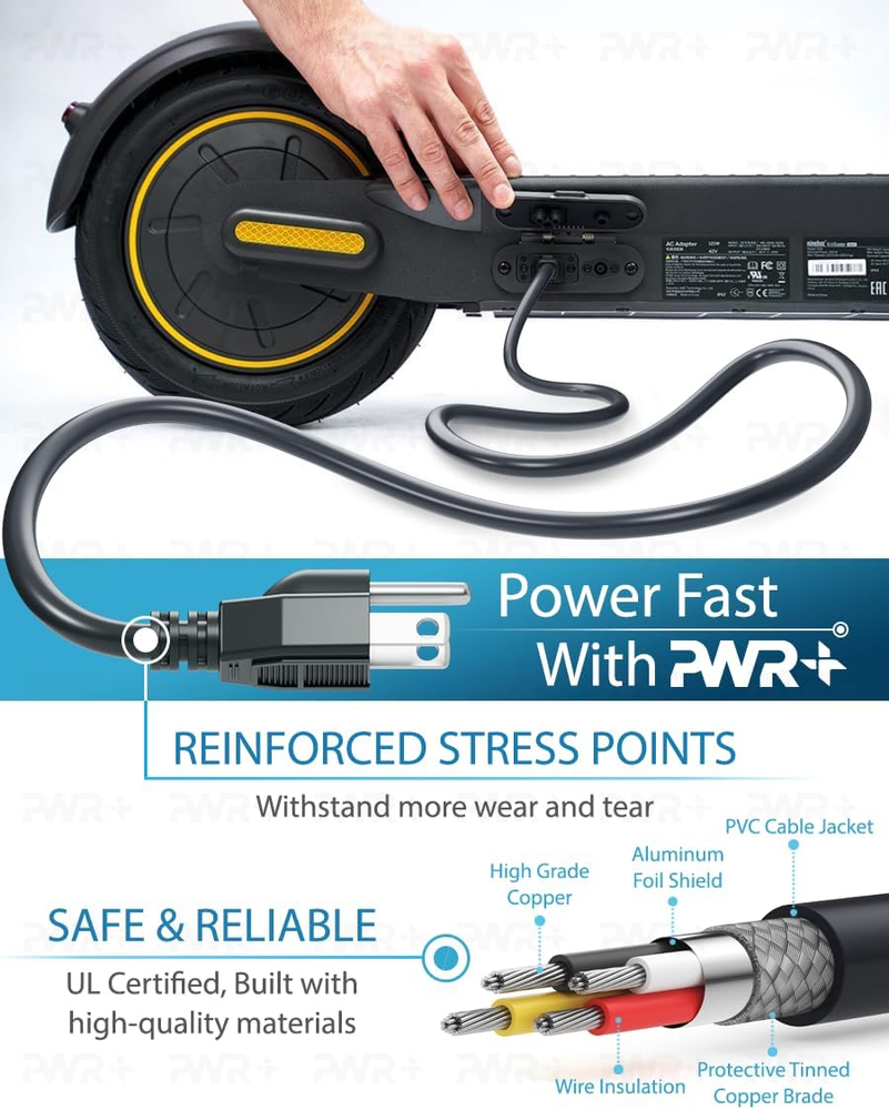 6 Ft Power Cord for Segway Ninebot MAX Electric Kick Scooter Charger Adapter Cab