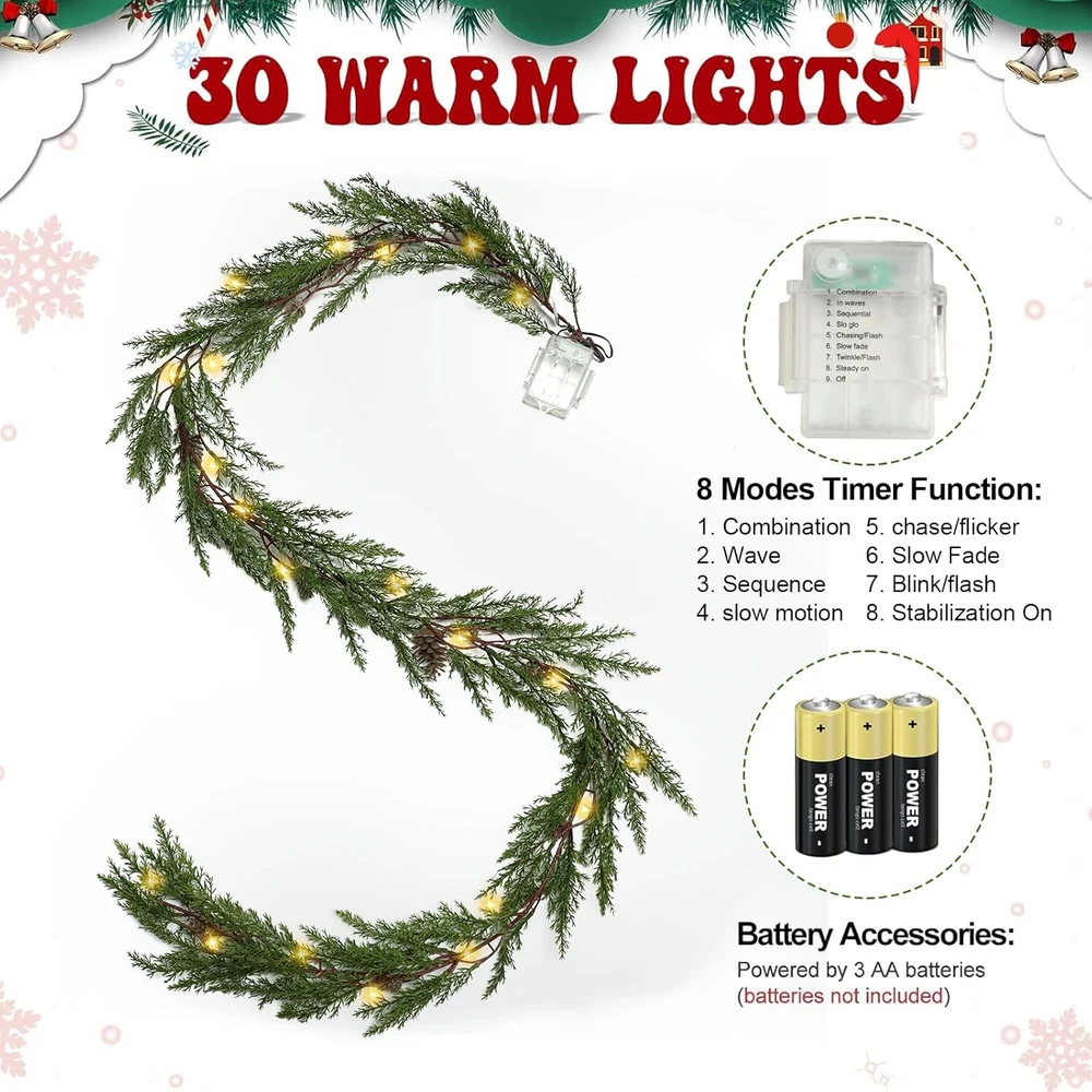 $ 19.81Christmas Garland with Lights, 9.8 Ft 60 LED Red Berry Pine Cone Battery Operate