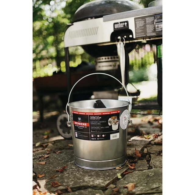Product details Looking for a high quality metal bucket that can lock and deter rodents from getting in? Well look no further! Key Product Features A stronger and longer lasting alternative to plastic, these locking containers are 100% Recyclable, manufactured with 100% sustainable materials, and Made in Winona, Minnesota USA These metal locking lid storage containers are manufactured with the highest quality galvanized steel, include a heavy duty wire bail, that are both functional and decorative! Handle heavy loads with ease and transport dry contents. Ideal for dry pet and livestock food, bird feed, charcoal, wood chips, ice melt, and sand Each metal can with locking lid is designed to be multi-use, with superior structure and strength Featuring an offset bottom to keep the can off the ground,locking lid cans are rodent, rust and odor proof. 100% recyclable. 0%petroleum used in production: won't leach toxins into bird seed or pet foodlike plastics Built with the highest quality material, the galvanized steel cans with locking lids are built for Now. Made to Last. The galvanized steel, multi-use, cans with locking lids are made by Manufacturing and are 100% Recyclable. These dry storage containers offer countless benefits for home, garden, or farm and are made to last. Designed with the highest quality materials. They feature an offset bottom to keep the can off the ground, heavy gauge steel wire bails for portability ease. Fitted with embossed tight fitting lid and locking riveted ears. These cans are ideal for storing dry food for pets and livestock, as well as bird seed,charcoal, wood chips, ice melt, and sand. Keeps rodents out. Locking lid feature keeps the lid on even when tipped over or attacked by an animal.Weather, chemical, odor and rodent resistant. You may choose from different sizes, depending on your needs, which includes: 6 and 10 gallon options. BEHRENS' galvanized steel cans with locking lid are more durable and longer lasting alternative to plastic! They won’t leach toxins into birdseed or pet food as none of products require a Prop65 warning. Large handle for easy transport Large can has a wire-reinforced rim Ideal for pet and livestock food storage Galvanized trash can is rust, fire and heat resistant Large can is designed to last for many years Recommended for storage of dry ingredients