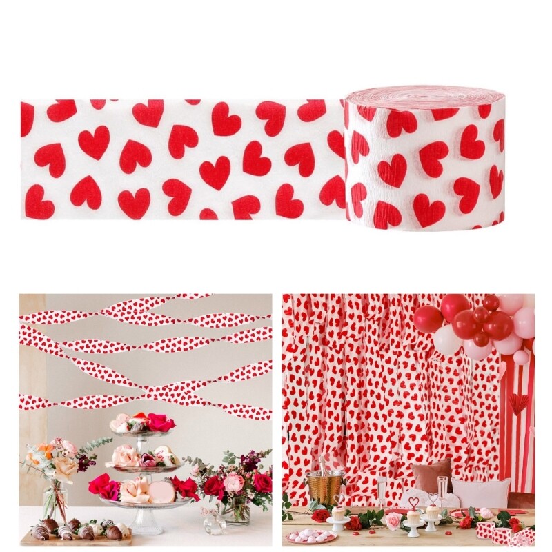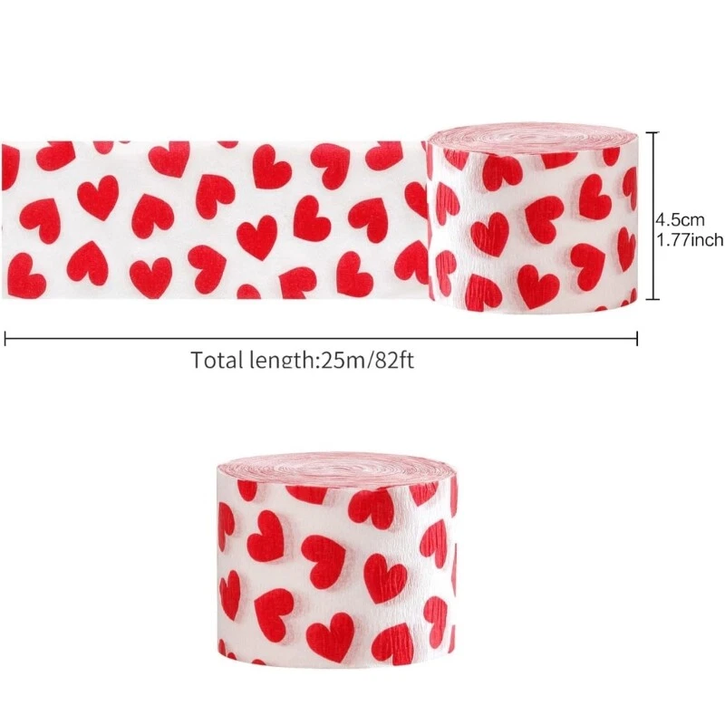 Features: Elevates your valentines's day celebration with our heart print crepe paper garlands, designed to add a touch of romance and charm to any setting. This set includes 6 rolls, perfect for various decoration needs such as gift wrapping and craft projects. Suit for couple, spouses, lover, and craft enthusiasts who enjoy creating unique decorations. Perfect for valentines's day gift packaging, party decorations, and more festives occasion. Transform ordinary space into romantics havens with these eye catching party and holiday decorations, crafted from paper materials for durability and elegances. Specifications: Materials:Paper Size:Approx.4.5cm/1.77inch Weight Quantity:6 Rolls Package Includes: 6 Rolls Ribbon note: 1.Please allow 1-2cm errors due to manual measurement, make sure that you donot mind before you order. 2.Due to the differences between different monitors, the picture may not reflect the actual color about the item.