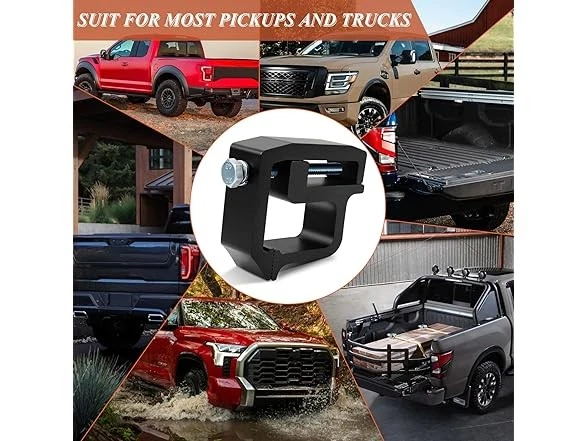 6 PC Heavy Duty Topper Mount Clamps Condition: New Size: For: Chevy Silverado Sierra 1500/2500/3500; Dodge, Ram 1500/2500/3500, F150 F250 Features 【TRUCK MOUNTING CLAMPS】 Package includes 8 black clamps. For truck topper clamps, ladder rack clamps, truck bed clamps, and truck cap clamps.the item is a set of 8PCS, which can meet your various installation needs, provide convenience for your travel, and is easy to install, which greatly saves your time. 【EASY TO INSTALL】The truck mounting clamp is used to install around the mounting bracket of a large camper or truck lower lip. The bolts can be tightened quickly with a wrench or a ratchet without drilling 【FITMENT】 Compatible for CHEVY: Silverado / Sierra 1500, 2500, 3500.Compatible with Silverado / Sierra '07;Cargo Rail; DODGE: Dakota; Ram 1500, 2500, 3500; FORD: F150 F250; MITSUBISHI: Raider; NISSAN: Titan;TOYOTA: Tundra 【FUNCTION】Designed for mounting truck caps with fiberglass or aluminum rails. 【MATERIAL】Aluminum, high quality and strength, hard to be corroded. Specs In the Box: (1) 6 PC Heavy Duty Topper Mount Clamps