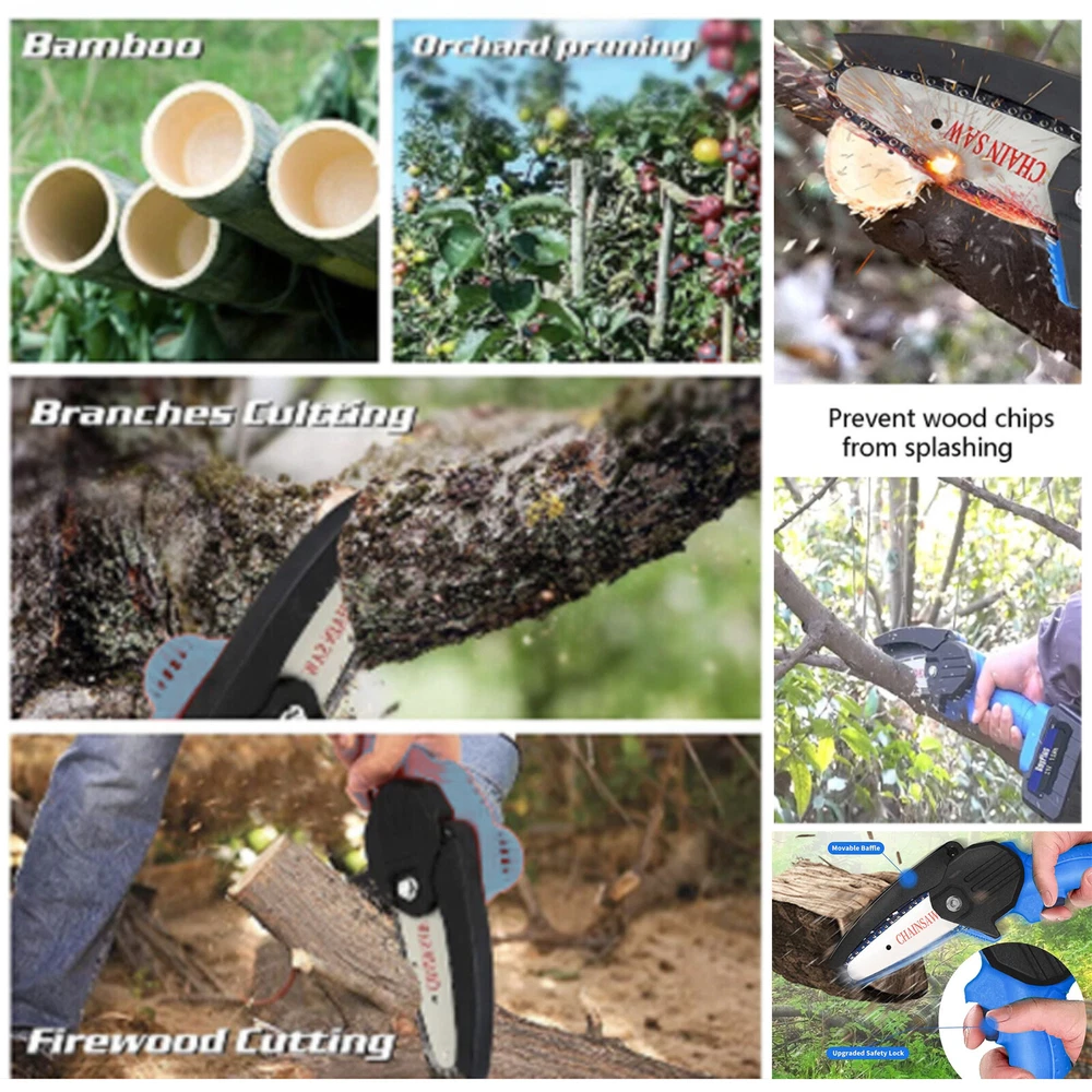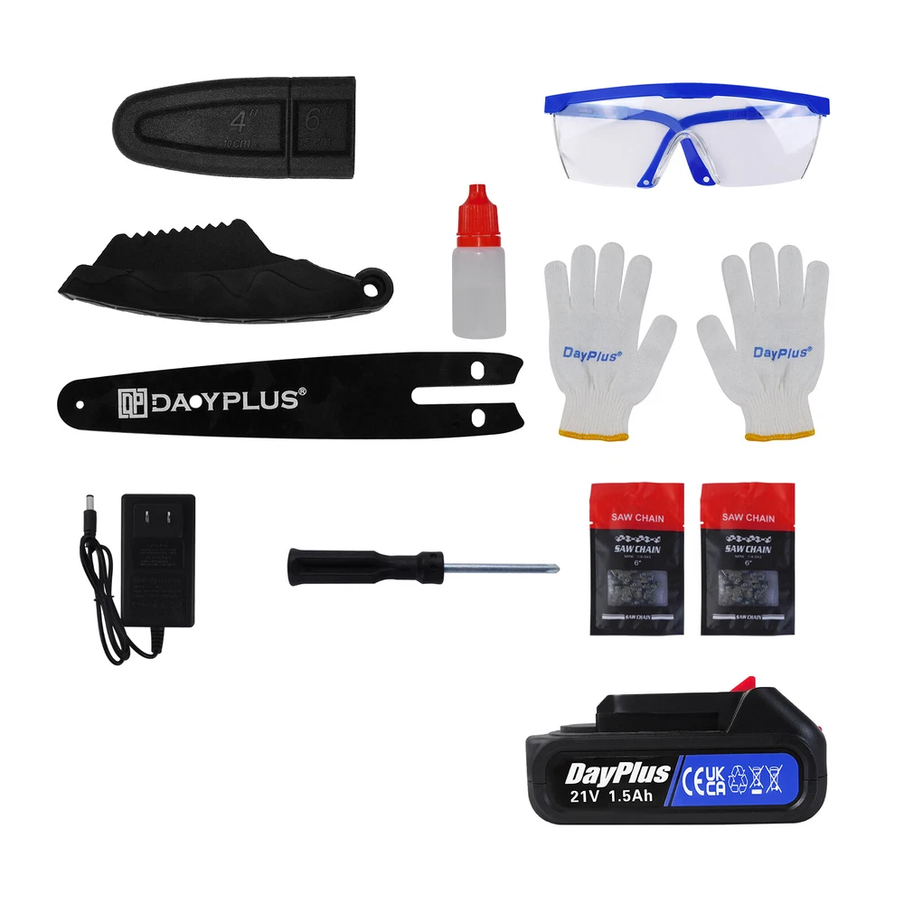 6 INCH Brushless Electric Compact Chainsaw Saw Cutter Cutting Tree Wood Branche 1000W Electric Cordless Wood Cutter Mini Saw Chainsaw Woodworking with Battery 21V Electric Cordless One-Hand Saw Chain Saw Woodworking W/Battery Kit Specifications: Material: ABS+Metal Color:Blue Battery: Lithium Battery, 21V, 1500mAh (included) Power: 1000W Guide Plate Length: 6 Inch Power Supply: 21V Rechargeable Lithium Battery Speed: 2200 rpm No Load Impulse:5300spm Blade Size / Diameter: 110mm Maximum Sawing Thickness: 80mm Cutting Depth In Wood: 80mm Cutting Depth In Pipe: 80mm Application: Cutting Trees, Pruning Branches, Gardening, Sawing wood, Transforming Furniture, Picking Fruit, etc. Features: - Small size, can be held with one hand. - Practical, fast speed, low power consumption. - Fine quality switch, fast and slow adjustment, stepless speed change. - Pure copper brushless motor, strong power, fast cutting, improve efficiency. - Fine quality guide plate chain, deep quenching, more wear-resistant, smooth cutting. - Rechargeable electric chain saw, light and portable, long battery life, no damage to the bark. - Lightweight body, light and convenient, lightweight design, long time holding and not tired hands. - Intelligent circuit control board, overload protection, to meet your different construction needs. - Special guide plate, tungsten steel ball does not need to be lubricated, so that the machine reduces resistance during operation and reduces wear on the machine. Package Includes: (一)1x Chain Saw+1x Battery: • 1 x Brushless Chainsaw Body • 1x 1500mAh Li-ion Battery • 1 x Fast Charger • 1 x Screwdriver • 1 x Guide plate • 1 x Antiskid gloves • 1 x Goggles •1 x Oil pot (lubricating oil) • 2 x Chain • 1 x User Manual • 1 x Carry Case (二)1x Chain Saw+2x Battery: • 1 x Brushless Chainsaw Body • 2x 1500mAh Li-ion Battery • 1 x Fast Charger • 1 x Screwdriver • 1 x Guide plate • 1 x Antiskid gloves • 1 x Goggles •1 x Oil pot (lubricating oil) • 2 x Chain • 1 x User Manual • 1 x Carry Case Payment Delivery details Terms of sales Welcome Contact us Payment 1.Please check the item after you receive it,please keep us posted if you have any confusion or porblems about your order .We will give you reply and best solution within 1 working day . 2. Please don't leave any neutral/negative feedback or open a case when you have problems with our product , we promise to try our best to help and not let your interest be damaged. 3.If you are satisfied with our product,please leave us a 5 stars positive feedback and we will do the same for you. Delivery details Sincerely thank you for choosing us, we suggest you reading our shipping terms and conditions. 1.All items are shipped within 1-2 business days after we confirm your payment and your shipping address. 2.We only ship our items to the areas that our logistics provider covers. 3.To ensure you receive item safely, please offer the concrete and complete shipping address 4.Please keep the consistency of the address from Paypal and eBay. 5.Sometimes your order may be impacted by extreme bad weather, strikes or other unexpected events. 6.If there are any problems with your order, including late delivery or being lost, please do not hesitate to contact us. We are happy to offer solutions to your inquiries. Terms of sales 1.We accept PayPal only! 2.Please keep the consistency of the address from Paypal and eBay. 3.Payment must be received within 3 days since you won the item, or eBay will launch Unpaid Reminder Against you. Welcome Contact us If you have any question,Please no hesitation to contact us via ebay message, we will reply you within 24 working hours .