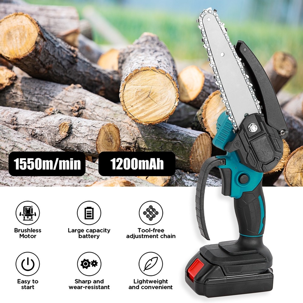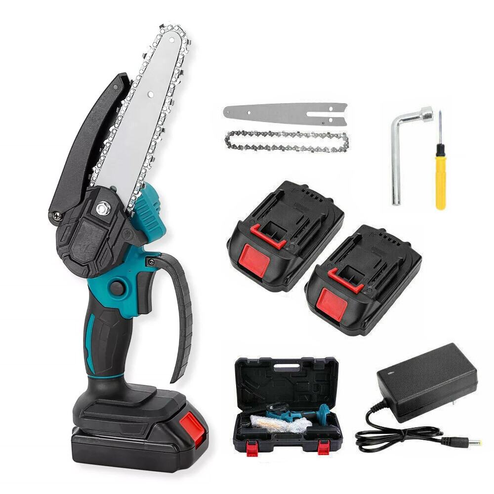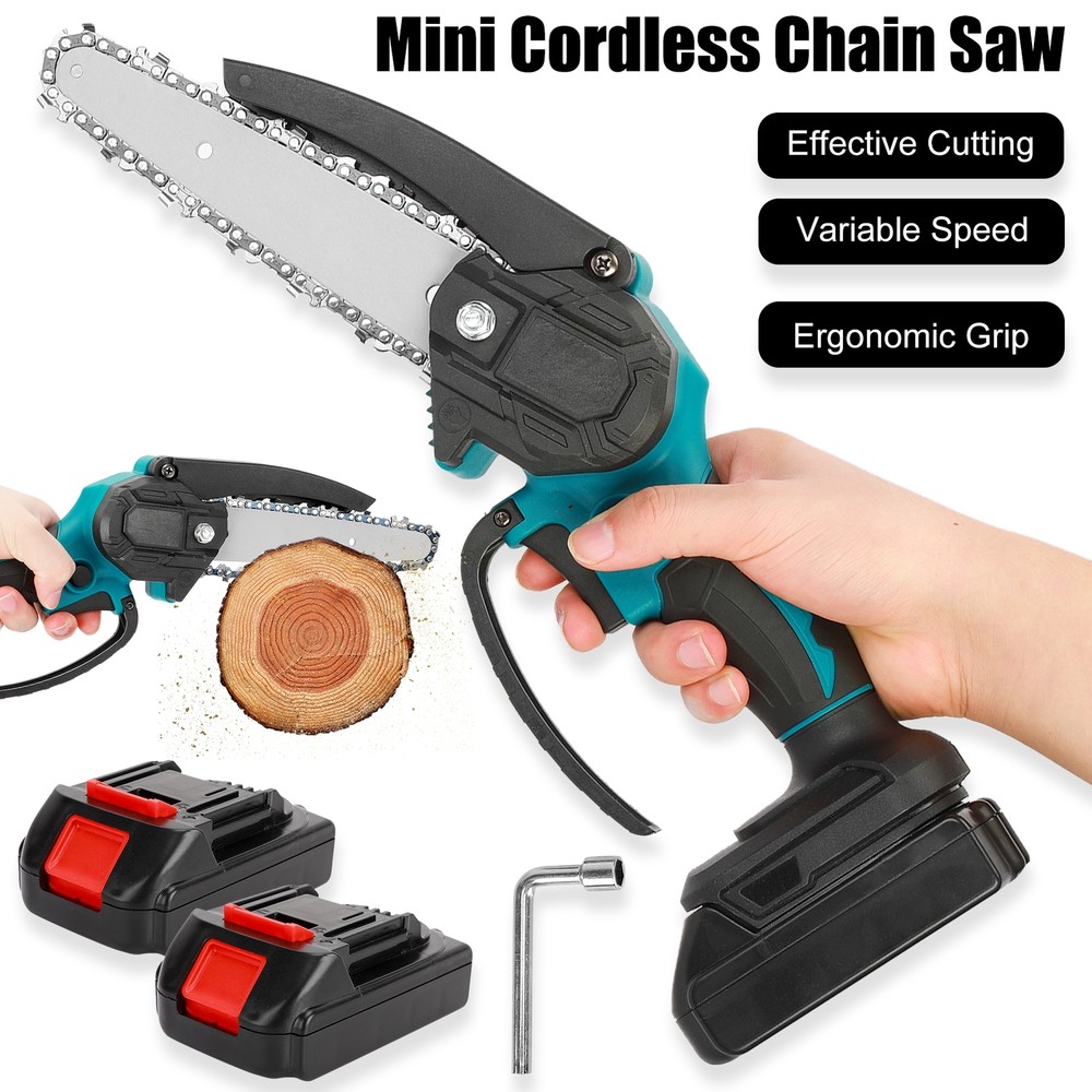 6" Mini Cordless Electric Chainsaw 2X Battery Powered Wood Cutter Rechargeable < > Description: Boasting overload protection, the large-capacity rechargeable battery enables fast charging and long working time, while also ensures safe operation. Designed with ergonomic and anti-slip handle, the mini electric saw is comfortable to grip, reducing your hand fatigue caused by long-period working. High-quality copper motor provides the electric chain saw with powerful and stable performance, ensuring a long-term use. Equipped with sharp chain, the mini chain saw ensures smooth and fast cutting of trees or branches, achieving high working efficiency. Featuring variable speed design, the cordless chain saw allows for high-precision cutting, which can greatly improve your work efficiency and better protect the trees at the same time. Item Name: Mini Cordless Chain Saw Material: Metal,Carbon_Steel Cutting Speed: 1550m/min Plug Type: EU/UK/AU Plug Battery: 1200mAh Rechargeable Battery (Included) Features: Variable Speed, Ergonomic Grip, Effective Cutting Notes: Due to the light and screen setting difference, the item's color may be slightly different from the pictures. Please allow slight dimension difference due to different manual measurement. 1 x Mini Cordless Chain Saw 1 x Chains 1 x Screwdriver 1 x Wrench 2 x Batteries 1 x Charger 1 x User Manual