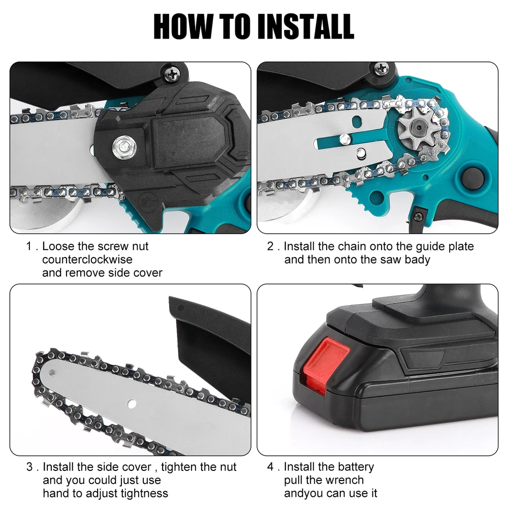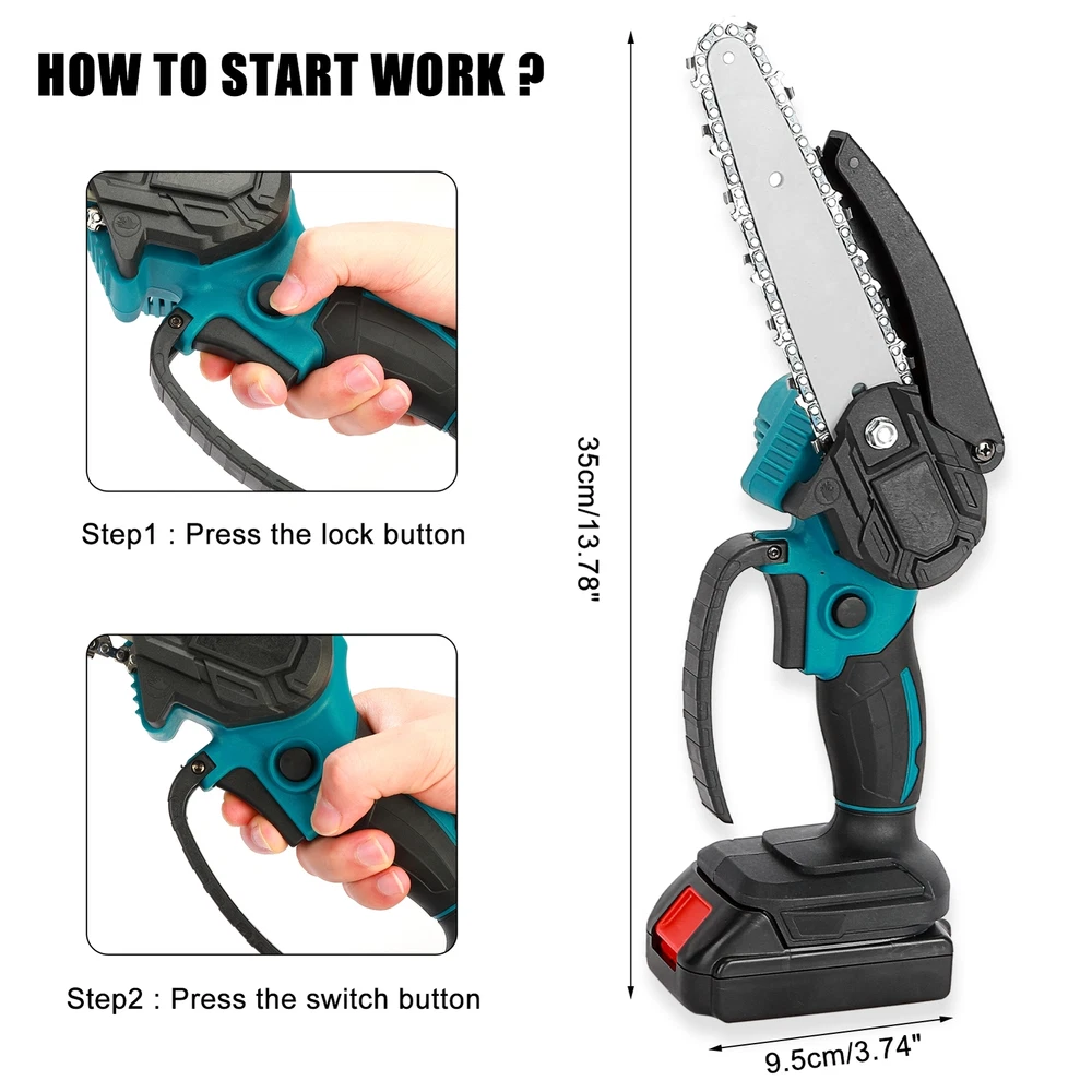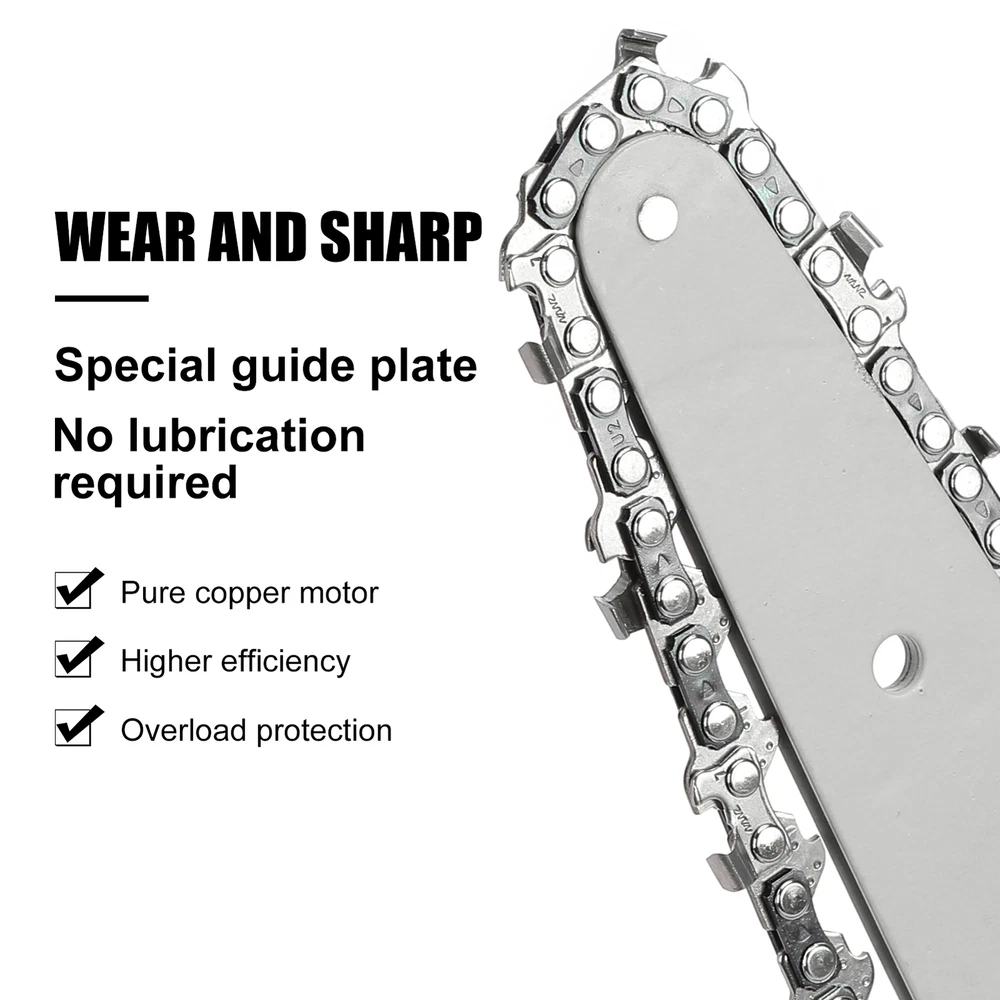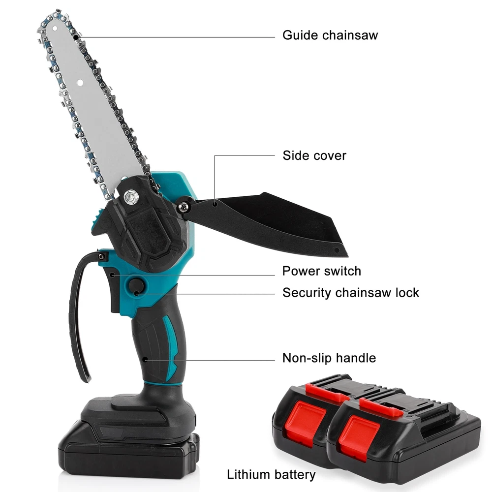 6" Mini Cordless Electric Chainsaw 2X Battery Powered Wood Cutter Rechargeable < > Description: Boasting overload protection, the large-capacity rechargeable battery enables fast charging and long working time, while also ensures safe operation. Designed with ergonomic and anti-slip handle, the mini electric saw is comfortable to grip, reducing your hand fatigue caused by long-period working. High-quality copper motor provides the electric chain saw with powerful and stable performance, ensuring a long-term use. Equipped with sharp chain, the mini chain saw ensures smooth and fast cutting of trees or branches, achieving high working efficiency. Featuring variable speed design, the cordless chain saw allows for high-precision cutting, which can greatly improve your work efficiency and better protect the trees at the same time. Item Name: Mini Cordless Chain Saw Material: Metal,Carbon_Steel Cutting Speed: 1550m/min Plug Type: EU/UK/AU Plug Battery: 1200mAh Rechargeable Battery (Included) Features: Variable Speed, Ergonomic Grip, Effective Cutting Notes: Due to the light and screen setting difference, the item's color may be slightly different from the pictures. Please allow slight dimension difference due to different manual measurement. 1 x Mini Cordless Chain Saw 1 x Chains 1 x Screwdriver 1 x Wrench 2 x Batteries 1 x Charger 1 x User Manual