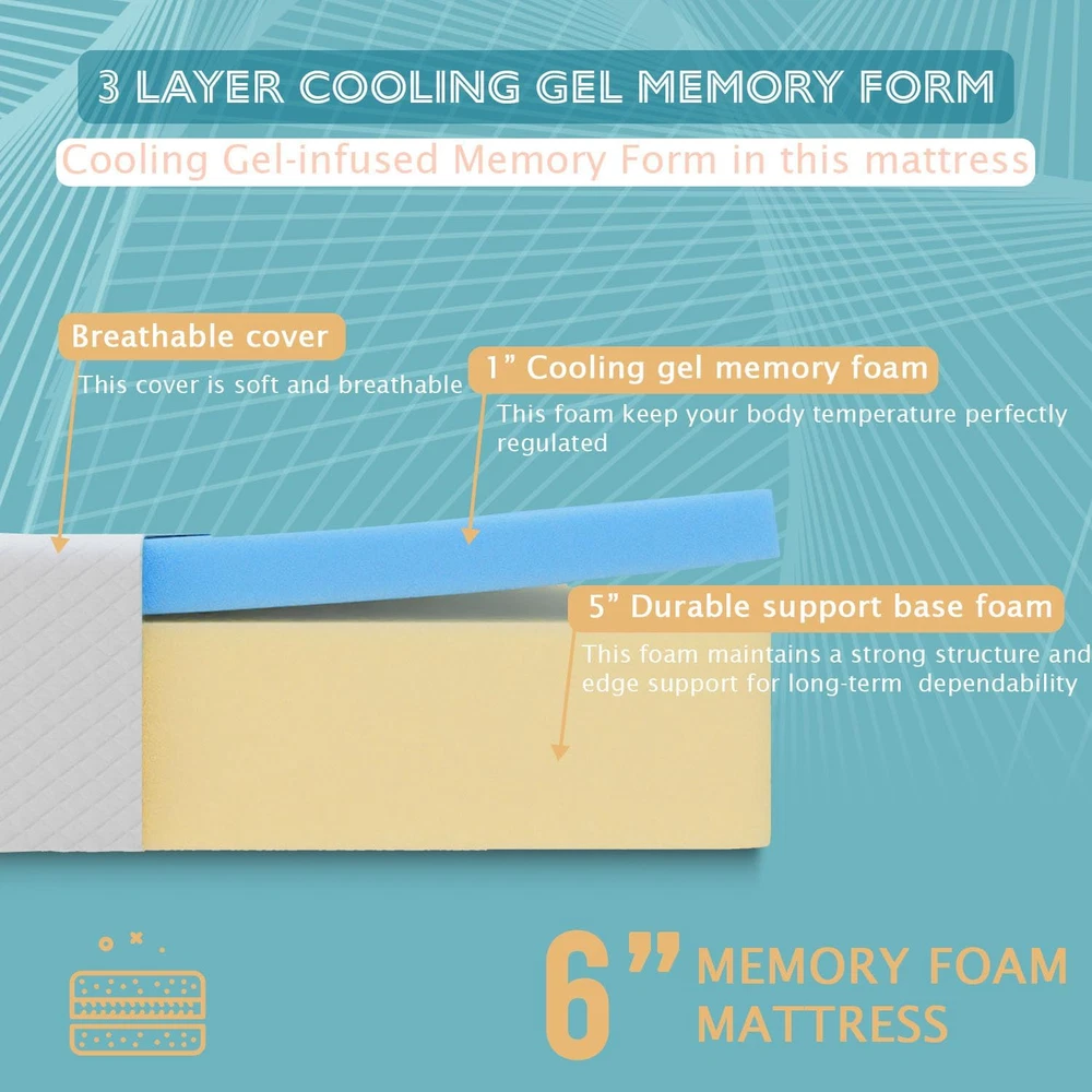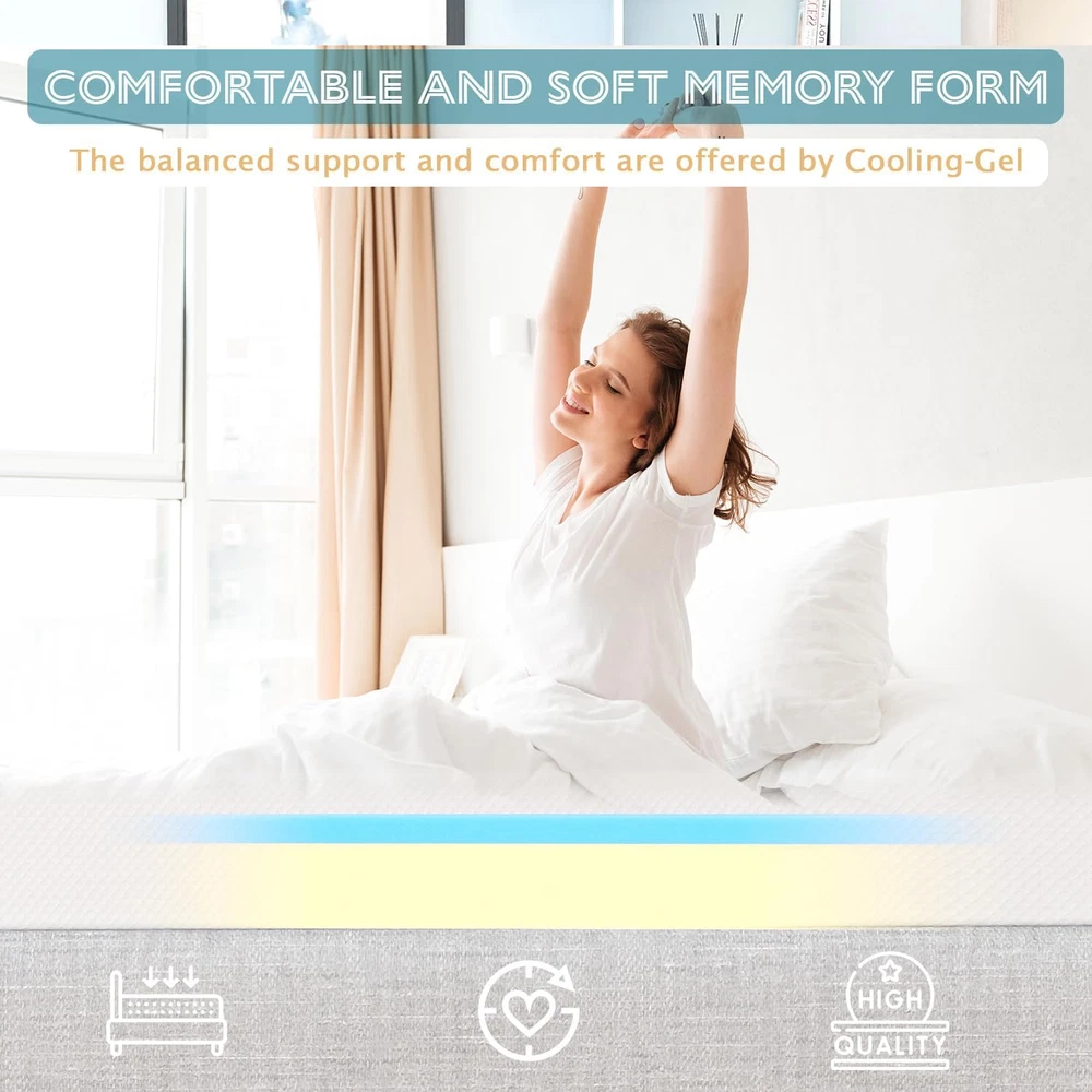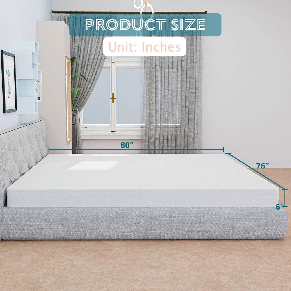 Menu Other Items Feedbacks About Us Contact Us Add To Favorites 6 Inch King Size Mattress, Gel Memory Foam Mattress, Pressure Relieving, Cooling Gel Foam, King Mattress in a Box, Certipur-Us Certified, Bed-In-A-Box, 80"L X 76"W X 6"Th, White UPGRADED COMFORT: Premium gel memory foam meets the performance and durability standards set by CertiPUR-US. A soft memory gel top layer and a high-density foam bottom layer provide a unique combination of ergonomic sleep comfort and support. QUALITY MATERIALS: Our king size mattresses are made with advanced sleep technology and the best materials available, gel memory foam helps with continuous air flow and breathability. The king mattress is topped with a skin-friendly fabric that improves breathing capacity to increase airflow to all areas of the foam mattress. PERFECT COMBINATION: A mattress king size made of gel memory foam and comfort foam with higher quality and better elasticity, highly conforming to the body and autonomously conforming to body curves and various sleeping positions. PROTECTIVE COVER: Durable, soft knit fabric cover wicks away moisture to help keep you cool, and Surface Protection Technology helps protect the memory foam mattress. PROFESSIONAL PACKAGING: Memory foam king mattresses are compressed, rolled, and packaged in a box for easy setup as well as handling. They are suitable for all bed frames such as springs, slatted bases, etc. Please leave the bed in a ventilated area to fully expand for 72 hours! Product Description Item Specification Item model number 6K Style 6 IN Color White Cover Material Knit Fabric Product Dimensions 80"L x 76"W x 6"Th Number of Layers 2 Top Style gel_top Item Firmness Description Medium Age Range (Description) 10-70 Fill Material Gel Memory Foam Model Name 6K Special Feature Bagged Size King Dimensions Shipping Returns Additional Info Product Dimensions: 76.0 "th x 80.0 "th x 6.0 "th. Fast shipping is very important for us. Our standard shipping service is FREE. Your order will be shipped within 1-3 business days upon full payment received. Most items are delivered within 3-5 business days, however, please allow 3-10 business days. We are shipping only to USA. We only ship to the confirmed Paypal address. We reserve the right to cancel any order for any reason at any time. We are not responsible for undeliverable addresses. We offer a 30 day return policy from checkout winning date. Your satisfaction is guaranteed! If for any reason you are unhappy with your item, just return it within 30 days for a full refund, minus shipping cost. Please contact us prior to initiating a return so that we can issue you a refund authorization. Items defective upon receipt must be packaged in their retail packaging as if new and returned with a detailed description of the problem. Return shipping fees are not refundable. We reserve the right to decline any returns if the above guidelines are not followed. All of our items, unless otherwise stated, will only run on 120 volts. Please check to make sure your country complies with these specifications. If you have a problem or question regarding your transaction please contact us before leaving any type of feedback. We will work with you to resolve any problem you may have.