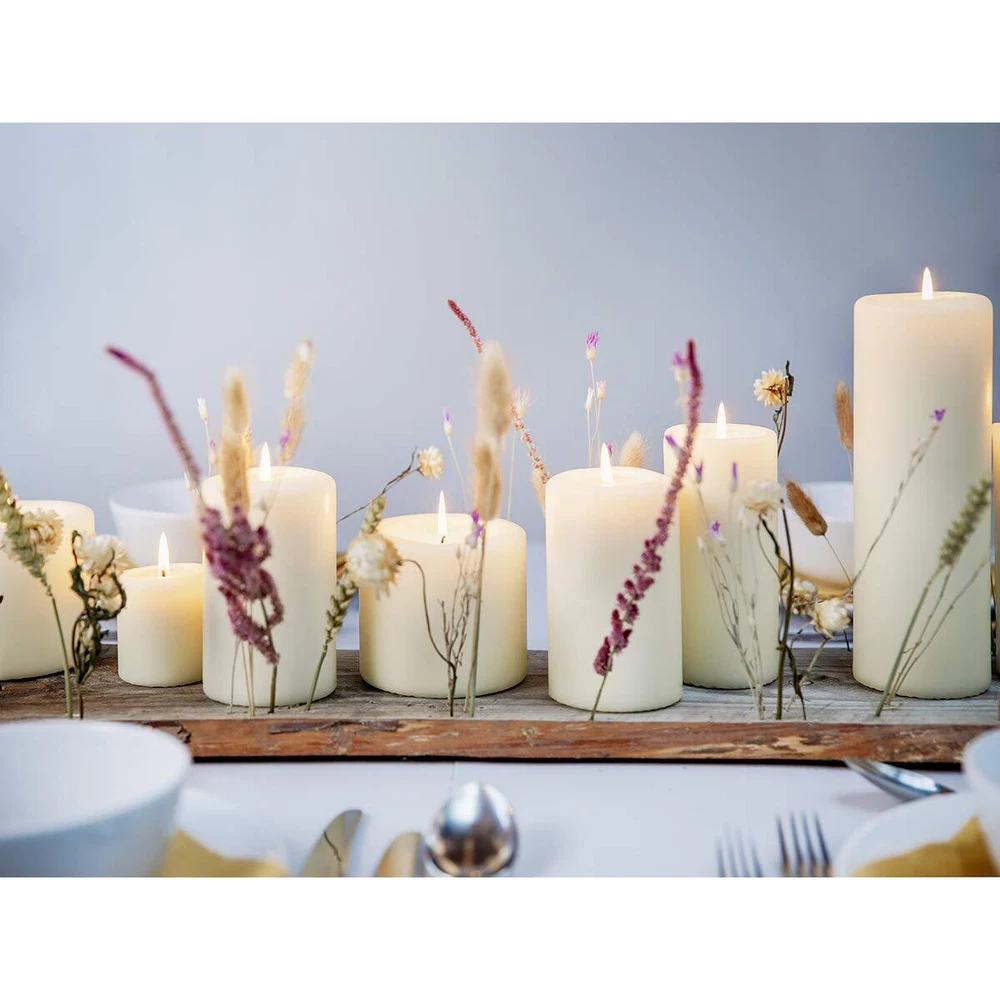 Ivory Pillar Candles – Set of 6 Need a way to set a deeply calming or romantic atmosphere during your next dinner party, home gathering, or even at your restaurant or café? Looking for the perfect dinner candles to use as a gorgeous centerpiece for your table that won’t leave behind any waxy drippings or wisps of smoke? Presenting ★Smokeless Unscented Candles★ Each of our luxurious household candles have been carefully crafted using only the highest-quality wax along with entirely smokeless cotton wicks. The wax used for our dripless candles has been designed so that in combination with our cotton wicks, it provides a slow 116-hour burn time while not releasing any wax drippings throughout the entire burn. With our pillar candles gorgeous color and also being entirely dripless and smokeless, they’re the perfect dinner candle to use as a table centerpiece during dates and dinner parties, or as a decorative candle to help add a bit of rustic flair to your reading time, bath, or meditation. Plus, these dripless candles are also fantastic for creating and relaxing and whimsical atmosphere for you and guests when used at cafés, restaurants, dinner parties, yoga classes, church gatherings, and any other occasions where you need some soothing mood lighting. Need more reasons to choose us? This set comes with 12 of our Ivory pillar candles, with each dinner candle measuring 3x9-inches, allowing them to fit in most standard candle holders. Our household candles have been designed without any scents, making them perfect to use for any occasion. These unscented candles make for a wonderful gift idea to give on Christmas, Hanukkah, Valentine’s Day, Anniversaries, Mother’s Day, Birthdays, and any other special occasion. Create the perfect mood and atmosphere in your home or at your restaurant with the Ivory Pillar Candles, today! LUXURIOUS QUALITY IVOR PILLAR CANDLES – These ivory unscented candles are the perfect way to help create a relaxing and luxurious ambiance for almost any event, such as weddings, anniversaries, dinner dates, sleepovers, and other special occasions. EXTRA-LONG 116-HOUR BURN TIME – Having been made with only the highest-quality wax and 100% slow-burning cotton wicks, our ivory pillar household candles burn for up to 116 hours and are easy to extinguish and relight many times. SMOKELESS & DRIPLESS CANDLES – Along with providing an extra-long slow burn, the premium-quality wicks have been designed to be entirely scent-free and smokeless. At the same time, the wax has been perfectly crafted to prevent drippings, which makes it the ideal dinner candle. BEAUTIFUL ATMOSPHERIC CENTERPIECE LIGHTING – Our unscented and dripless candles make a charming table centerpiece to set the perfect mood lighting during a romantic date, relaxing bath or to use to add a soothing ambiance to your restaurant or café. A WONDERFUL GIFT IDEA – Our gorgeous decorative candles are a thoughtful gift to give to friends and family who enjoy reading and relaxing next to candlelight. They’re perfect to gift on Christmas, Mother’s Day, Weddings, Birthdays, and more.