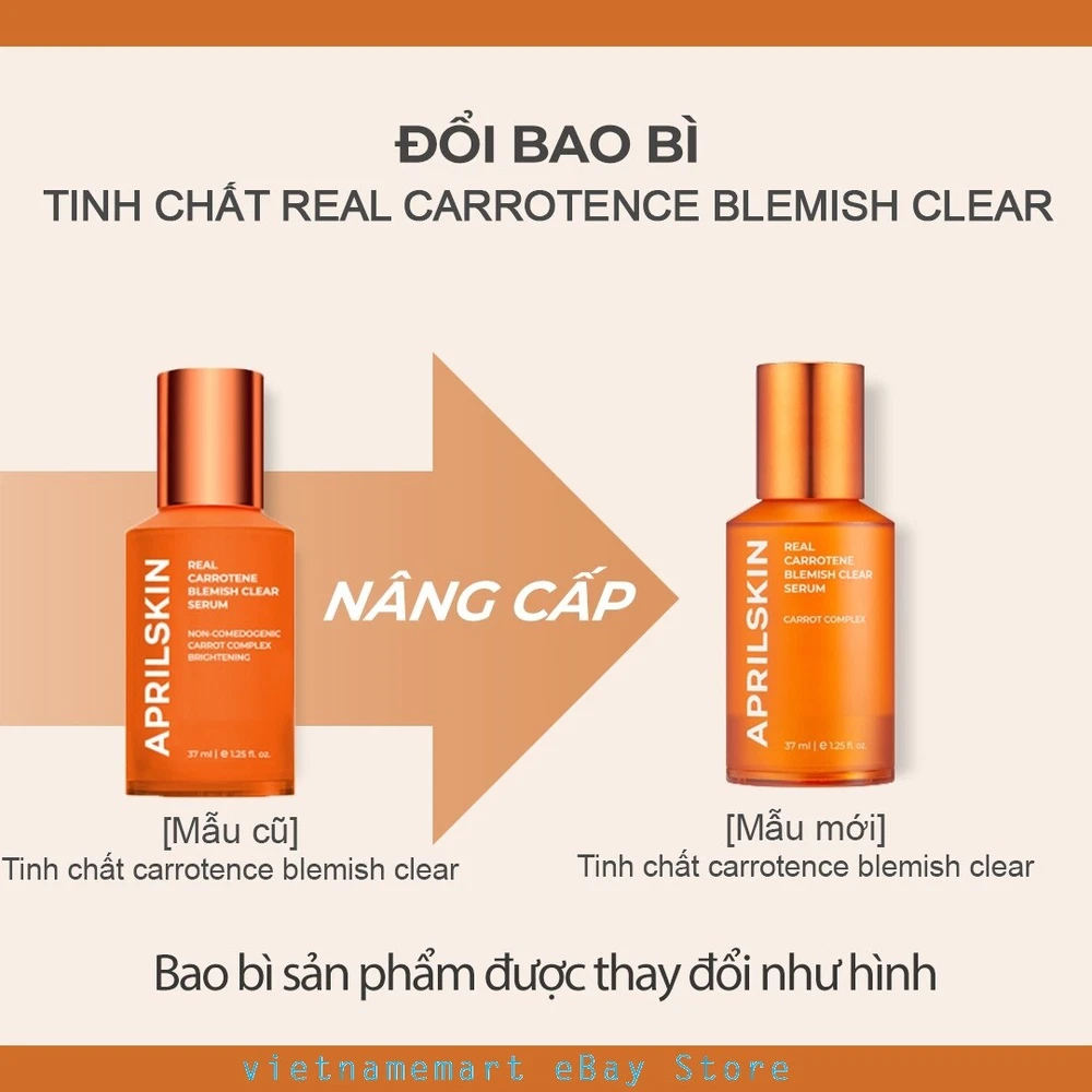 Free eBay listing template designed by vietnamemart Aprilskin Real Carotene Blemish Clear Serum 37ml Acne Cleansing Essence Brand : Aprilskin Origin: Korea of Republic Contains: Jar of 37ml (1.25 fl oz) Expiry : 2 years from manufacture date Condition : New Packing : 6 Jars Description: Made with 20,000ppm niacinamide and beta-carotene, Real Carrotene Blemish Clear Serum contains 10 times more carrot juice and carrot protein than version 1.0. Stops the acne cycle and speeds up skin cell regeneration. Helps soothe your irritated skin, while preventing breakouts from returning. Upgraded with dual function for a more powerful brightening and smoothing effect! With our patented "Sebum Cleaner Complex", it will also control the oil and moisture composition of your face! Using: 1. Use morning and night after cleansing and toner 2. Using 1-2 presses, gently apply the entire face from the center. 3. Apply 2-3 more layers on sensitive areas Skin care routine: 1. Carrot Acne Foam Cleanser: Deep cleansing face wash 2. Real Carrot Blemish Clear Serum: Clear blemishes and acne Contact us If you require any further information, feel free to contact us. We will respond to you within 24 hours and do our best to help you out! We encourage our customers to contact us with any questions or concerns! We'd like to be sure you are completely satisfied with your purchase. SHIPPING - We ship by VIETNAMESE POST OFFICE to WORLDWIDE - We endeavour to pack your orders carefully and ship your items within 0 3 business days (normally within 24 hours) after receiving your payment. We ship internationally on every day from Monday to Saturday to ensure prompt delivery. INTERNATIONAL SHIPPING - Most times you will receive your order within 10-25 working days after we transfer your package to the delivery company. Some countries like Russia, Brazil, Canada or some European countries may take an additional 2 weeks for arriving. - Please note that international shipping may incur customs fees, including import duties and taxes. These charges are the responsibility of buyer and are not included in our rates or shipping charges. When ordering from our website, you are considered an importer and must comply with all national laws and regulations upon receipt of the products. - Please check with your country's customs office to determine what these additional costs will be, prior to bidding or buying. PAYMENT - We only accept PayPal or buyers can pay credit card through PayPal. RETURN - Accept return or exchange within 60 DAYS ONLY if items have been unopened, unused, in original packaging and are resellable or if the item is determined not as described or defected or damaged during shipment. Buyer will be responsible for their own shipping fee to return the package back to us. FEEDBACK - Your satisfaction and feedback are very important to us. Please leave positive feedback if you are satisfied with your item and service. If you have any problems with your item or service, please contact us first before you leaving any feedback . We will do your best to solve problem with you . Thank you for your understanding. - Please contact us via eBay messages if you have any questions. You will get a response within 24 hours. Thank you for shopping with us!