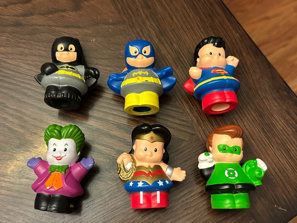 Preowned Loose Toy Figures. See photos. Lot includes: Batman, Joker, Superman, Wonder Woman, Green Lantern, and Batgirl Bid with confidence. Check my feedback if you have any concerns, or message me with any questions.