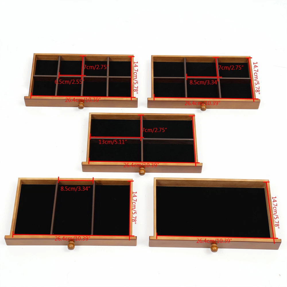 What's included? 1* Wooden Jewelry Box 1* Key Weights & Dimensiosns Product Size: 29.5*18.5*25cm/11.61*7.28*9.84inch The First Drawer Size: 28*15.7cm/11.02*6.18inch The Second Drawer: 8 Slots / Each Size: 6.5*7cm/2.55*2.75inch The Third Drawer: 6 Slots / Each Size: 8.5*7cm/3.34*2.75inch The Fourth Drawer: 4 Slots / Each Size: 13*7cm/5.11*2.75inch The Fifth Drawer: 3 Slots / Each Size: 8.5*14.7cm/3.34*5.78inch The Sixth Drawer: 1 Slot / Size: 26.4*14.7cm/10.39*5.78inch Net Weight: 2.5kg/5.51 Lbs Application This Jewelry Box Can Be Used to Store Pendants, Bracelets, Brooches, Necklaces, Rings, Earrings, and Other Larger Jewelry. Specifications Colors: Brown Layer: 6 Layers Types: with Mirror Material: Mdf+Wooden+Velvet Lock: Key Lock 6 Layers Jewelry Box w/ Lock + Mirror Four-Leaf Carved Top Velvet Cabinet Case Description 6 Layers Jewelry Box W/ Lock + Mirror Four-leaf Carved Top Velvet Cabinet Case Description Is Your Jewelry Often Placed in a Cluttered Manner and Can Not Be Found? Do You Have Too Much Jewelry Without a Big Enough Storage Box? the Six-layer Jewelry Storage Cabinet Allows You to Store Many Different Kinds and Sizes of Jewelry. the 4-Leaf Clover Carving on the Surface and the Wooden Material Make This Jewelry Box More Vintage and Elegant. this Jewelry Box Can Be Used to Store Pendants, Bracelets, Brooches, Necklaces, Rings, Earrings, and Other Larger Jewelry. What's Included? 1* Wooden Jewelry Box 1* Key Specifications Colors: Brown Layer: 6 Layers Types: with Mirror Material: Mdf+Wooden+Velvet Lock: Key Lock Weights & Dimensiosns Product Size: 29.5*18.5*25cm/11.61*7.28*9.84inch The First Drawer Size: 28*15.7cm/11.02*6.18inch The Second Drawer: 8 Slots / Each Size: 6.5*7cm/2.55*2.75inch The Third Drawer: 6 Slots / Each Size: 8.5*7cm/3.34*2.75inch The Fourth Drawer: 4 Slots / Each Size: 13*7cm/5.11*2.75inch The Fifth Drawer: 3 Slots / Each Size: 8.5*14.7cm/3.34*5.78inch The Sixth Drawer: 1 Slot / Size: 26.4*14.7cm/10.39*5.78inch Net Weight: 2.5kg/5.51 Lbs Features & Highlights Full Pull-out Drawer: The Drawer of This Jewelry Box Is a Full Pull-out Design, Which Can Display All the Jewelry and Make It More Convenient for You to Get It. High-definition Mirror: The Mirror Inside the Jewelry Box Is Very High-definition and Can Be Used Directly to Wear Jewelry Without Having to Buy Additional Mirrors. Large Capacity: This Jewelry Box Has a Built-in Mirror and 6 Drawers. Each Drawer Is Designed in Different Sizes to Store Many Different Kinds and Sizes of Jewelry. Velvet Fabric: The Lining of This Jewelry Box Is Made of Soft, High-quality Velvet Fabric That Is Comfortable to the Touch. It Can Protect Your Jewelry Well from Being Crushed and Scratched. Safety Latch: The Safety Latch on the Lid Is Designed to Keep All Drawers and the Cabinet Securely Locked. This Will Protect Your Rings, Earrings, Necklaces, Watches, and Other Jewelry Accessories. Compartments: Each Layer Is Divided into Different Sizes of Compartments. You Can Store Different Kinds or Sizes of Jewelry Separately so That You Can Pick and Place Them Clearly. High-quality Material: the Jewelry Box Is Made of Mdf and Wood with Veneer and Painting, Which Is Not Only Very Durable but Also Good-looking. the Interior Is Lined with Soft Velvet Fabric, Which Can Ensure Your Jewelry Will Not Be Scratched and Crushed. Elegant Design: This Item Is Made of Classical Wood with a Four-leaf Clover Carving Pattern on the Surface. All These Unique Designs Make This Jewelry Box Look More Elegant and Chic. Combine at Will: All These Drawers Are Removable. You Can Recombine and Place Each Layer According to Your Needs and Habits. Ideal Gift: This Jewelry Box Has a Unique Design with a Beautiful Appearance and a Large Capacity with Practical Features. It Is an Ideal Gift for Valentine's Day, Mother's Day, Thanksgiving, Christmas, Birthday, and Weddings. Fine Workmanship: f ro m the Smooth Surface to the Soft Lining and Even the Sturdy Latches and Hinges, Giving You a Better Sense of User Experience. Notes We Aim to Provide Quality Products and Services. If You Have Any Problems, Please Feel Free to Contact Us. We Will Reply and Solve the Problem for You As Soon As Possible. Please Allow the Slight Color Difference Caused by the Shooting Light and 1-3cm Error Due to Manual Measurement, and Make Sure You Do Not Mind Before You Order. Payment Delivery details Terms of sales About us Contact us Payment We accept ebay payment 。 Fees such as import duties, taxes are not included in the item price or shipping costs. These charges are the buyer's responsibility. Delivery details Shipping: 2-9 working days to: USA Terms of sales We maintain high standards of excellence and strive for hundred percent customer satisfaction. Feedback is very important to us. We hope that you contact us immediately before you give neutral or negative feedback, so that we can address your concerns. It is impossible to address issues if we do not know about them! About us Your satis faction is our ultimate goal. We work hard to earn your trust and future business. Our certified technicians have tested each item before shipping. The unit comes with 1 year limited warranty on all manufacturing defects. a) If you receive a defective item, you may return it or ask for a discount. Please contact us within 14 days after you receive the package. b) What you returned must be intact and in its original packaging as re? u. Customer is responsible for shipping costs of the returned item. c) We will cover the cost of shipping back t with the shipping rate indicated in the registration page. We will send you a new unit or refund the full payment you paid. Thank you. Contact us Business Hour Business Hour: Monday To Friday: 8:30 AM to 5:00 PM (Beijing China time) Due to time zones, our reply to your questions may not be immediately. But within above working time, we will reply your email within 24 hours. If it's non-workdays, please kindly be patient and wait till Monday. Please 
