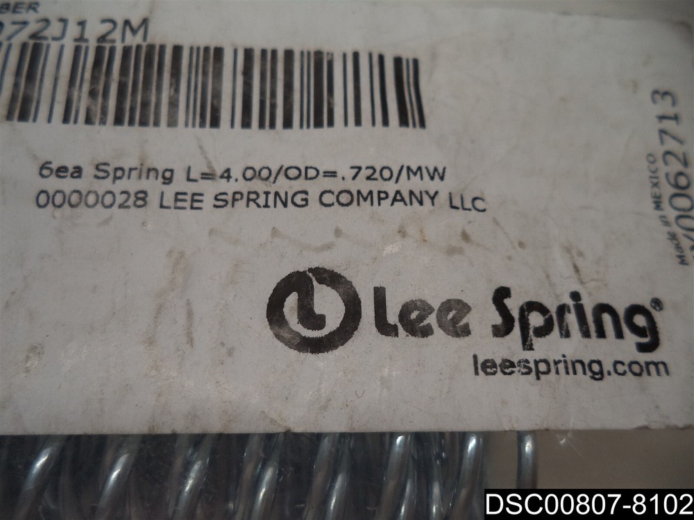 This item is:__Qty= 6: Lee Springs Compression Spring LC 072J 12, M 4"x0.72"__________________________________________________________________ This item is new, however, The original packaging may be missing or imperfect. See photos. Includes only what is shown in the picture. 1004 Warehouse Location:___Warehouse #1_Shelf_____2224 Box 23_____________________________ Sales tax will be added to items shipping to locations in Kansas. _____________________________________________________________________ _____________________________________________________________________ _____________________________________________________________________ By bidding and or purchasing this item(s) you (the buyer) agree to the following terms and conditions: 1. An item is defined as the following: The unit or units purchased in the ebay listing, (it could be a single unit, multiple units, a mixture of units, a variety of units, the incorrect unit or any combination of units not mentioned). It also includes the packaging, or lack thereof, the shipping label, and any contents place in the package by error. 2. The Seller is defined as Seller and/or Consignor. 3. The buyer is defined as the entity that purchased the item from Seller and/or Consignor. 4. If the buyer does not agree to these terms and conditions then do not purchase from us. 5. All items are sold AS IS No warranty or liability is expressed or implied. 6. The buyer agrees that: All items are shipped without insurance. It is the responsibility of the buyer to let us know if they want insurance on the item. Insurance cost is $2.00 for every $50 insured, in $50 increments. The buyer agrees that if no insurance is purchased and the item is not received or received damaged that no claim shall be brought against the seller. 7. We only ship to PayPal confirmed street addresses, no exceptions. No PO Boxes, APO, FPO or similar addresses. 8. The buyer agrees that the sale is considered complete once the carrier has picked up the item from the seller. 9. The buyer agrees that if there is a dispute that arises that the dispute will be settled in the State of Kansas under the laws of Kansas. 10. The buyer agrees that the item fits the buyers purpose prior to bidding. 11. The buyer agrees to indemnify and hold harmless the seller from any and all claims arising out of any conditions or defects for the item or items that they purchased 12. We only ship to the continental United States. The shipping price quoted is for the continental United States Only. All other locations will be charged extra. Out of county buyers agree to pay any additional charges that we ask them to pay including but not limited to import duties, shipping costs, packaging costs, time costs, and other costs. If the item is shipped via ebay global shipping program these terms and conditions still apply. 13. Claims made against the carrier for non-delivery, lost in transit or any other reason shall be made solely by the buyer without aid from the Seller. 14. In the event that any clauses or phrases contained here within are ruled out by a judge, the law, a lawyer, jurors, and or any other entity all others remain in effect. 15. If any claim is brought against the Seller the buyer agrees to pay for any and all costs including legal fees, travel, time, accommodations, and other costs. Late payment will result in the seller charging interest at the maximum legal rate. 16. In any event or circumstance the maximum liability to the Seller is the purchase price plus cost of shipping plus sales tax if applicable. This amount is not subject to inflation, interest, inconvenience fee or any other price adjustment. 17. The buyer agrees there will be no refunds for any reason outside of the Ebay return policy. 18. The buyer understands that our items are wholesale, overstock, unclaimed, foreclosure purchase or salvage goods. Most boxes have been opened for inspection and photos. If items are listed as new they may not come with original packaging. 19. The buyer agrees that they are trained, licensed, qualified, and understand how to properly use, dispose of and handle the product in accordance with law and regulations. 20. The buyer agrees that if any part of these terms and conditions is determined to be void that it does not void or alleviate the enforcement of the remainder of this contract. 21. Seller and/or Consignor is not an authorized distributor, reseller or representative of the products featured on this website. All product names, trademarks, brands and logos used on this site are the property of their respective owners. The depiction, description or sale of products featuring these names, trademarks, brands and logos is for identification purposes only and is not intended to indicate any affiliation with or authorization by any rights holder.
