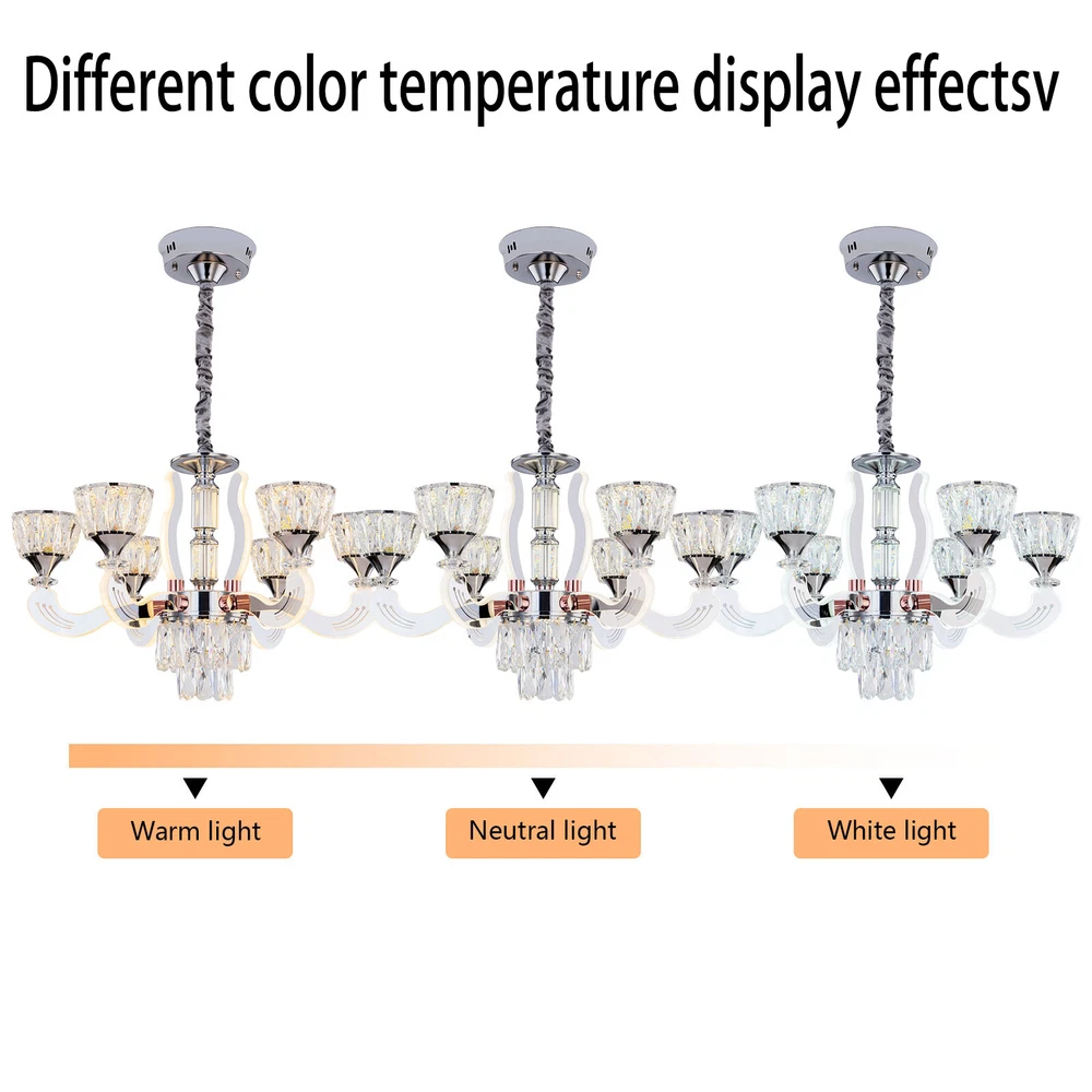 Light Color: White Light, Neutral Light, Warm Light Shipping Note: Cannot ship to Puerto Rico & Hawaii Shape: Round Warranty.: 3 Years gtin13: Does not apply Chain Length: 45cm/17.71in Assembly Required: Yes Brand: Unbrand Highlights: Compact Design,Unique Appearance,high reliability 1.Features`: Easy installation,Compact Design Characteristic: Convenient Use,Easy Operation,Easy installation Voltage: 85-265V Light Source: LED Light Strip(Included) Diameter of Single Lampshade: 12cm/4.72in 2.Feature: Fast shipping Style: Modern Color Temperature: 3000K-4000K-6000K Color: Silver Applicable Floor Height: 2.7m/8.86ft Manufacturer Warranty: 3 Years UPC: Does not apply Base Diameter: 18cm/7.08in Process: Plating Power: 72W Material: Hardware, Acrylic and Crystal Warranty: 5 Years *Feature*: Creative Design,Durable Material,Beautiful Country/Region of Manufacture: Unknown Applicable Space: 10-20 ㎡/107.64-215.28ft ² Type: Chandelier Efficiency: E
