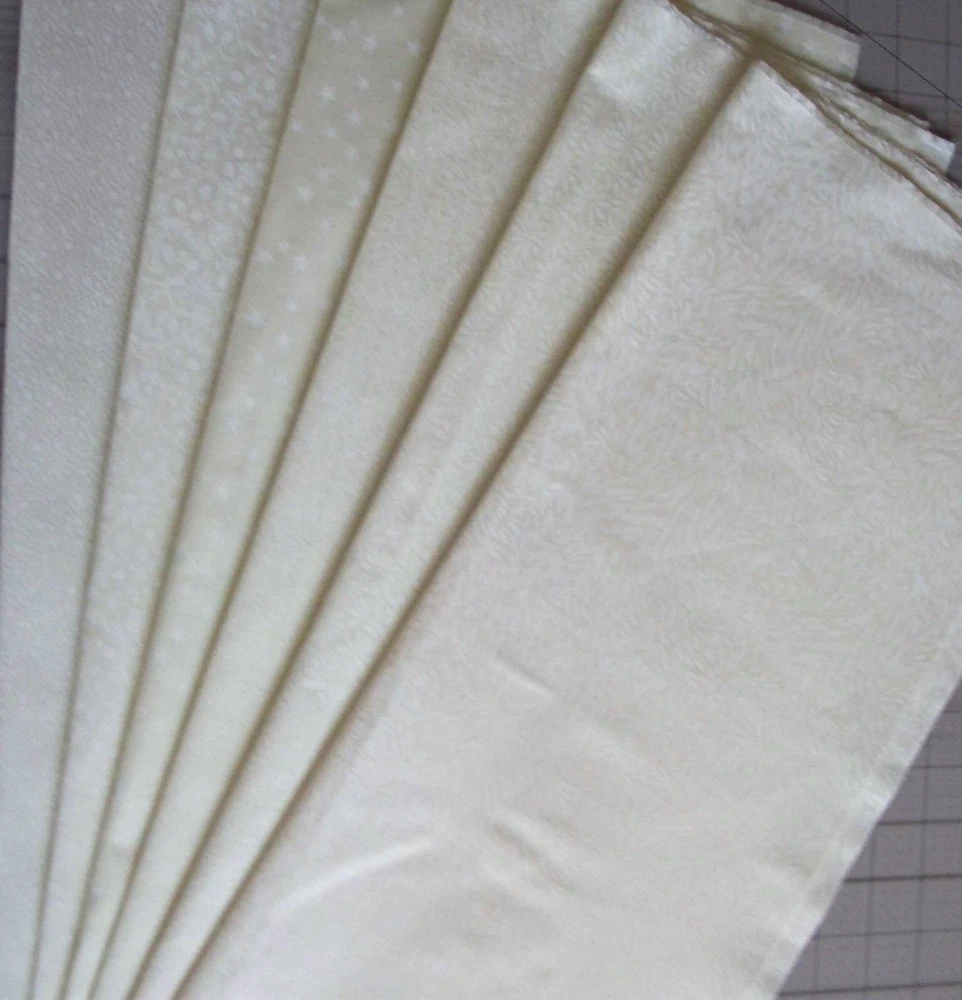 6 Neutral Cream Tonal Fat Quarters Bundle tone on tone Fabric Condition : New Brand: MDG Fabrics fat quarter size: 18 inches by 21/22 inches Tot al number of fat quarters in bundle: 6 Fiber: 100% Cotton Not suitable for Children's Sleepwear Colors can vary from one monitor to another. Care: Precut fabrics should not be machine laundered prior to use. This listing is for a bundle of 6 P re Cut Cotton fat quarters in a white on neutral cream tone on tone colorway. With this listing you will receive one fat quarter of each fabric pictured. Fabrics are from MDG Fabrics. A Fat quarter measures approximately 21/22 inches by 18 inches. They are wonderful to collect for quilting and craft projects where you need a small amount of fabric. Fabric is new and lovingly stored smoke free home. 100% cotton Q-497 When purchasing multiple items..please use the shopping cart commit to your purchases then request combined invoice I can not combine shipping for the best price after separate payments are made. I want to personally thank you for shopping Morningdovesnest! International customers: * Import duties, taxes and charges are not included in the item price or shipping charges. These charges are the buyer’s responsibility. * Please check with your country’s customs office to determine what these additional costs will be prior to bidding/buying.” “ We do not mark merchandise values below value or mark items as ‘gifts’ - US and International government regulations prohibit such behavior.”