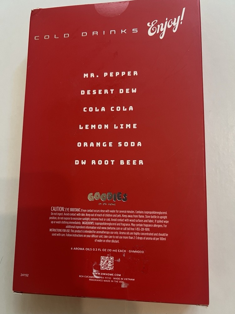 6 Aromatherapy oils NIB. 10 ml bottles Mr.Pepper Desert Dew Cola Cola DW Root Orange Soda Lemon Lime
