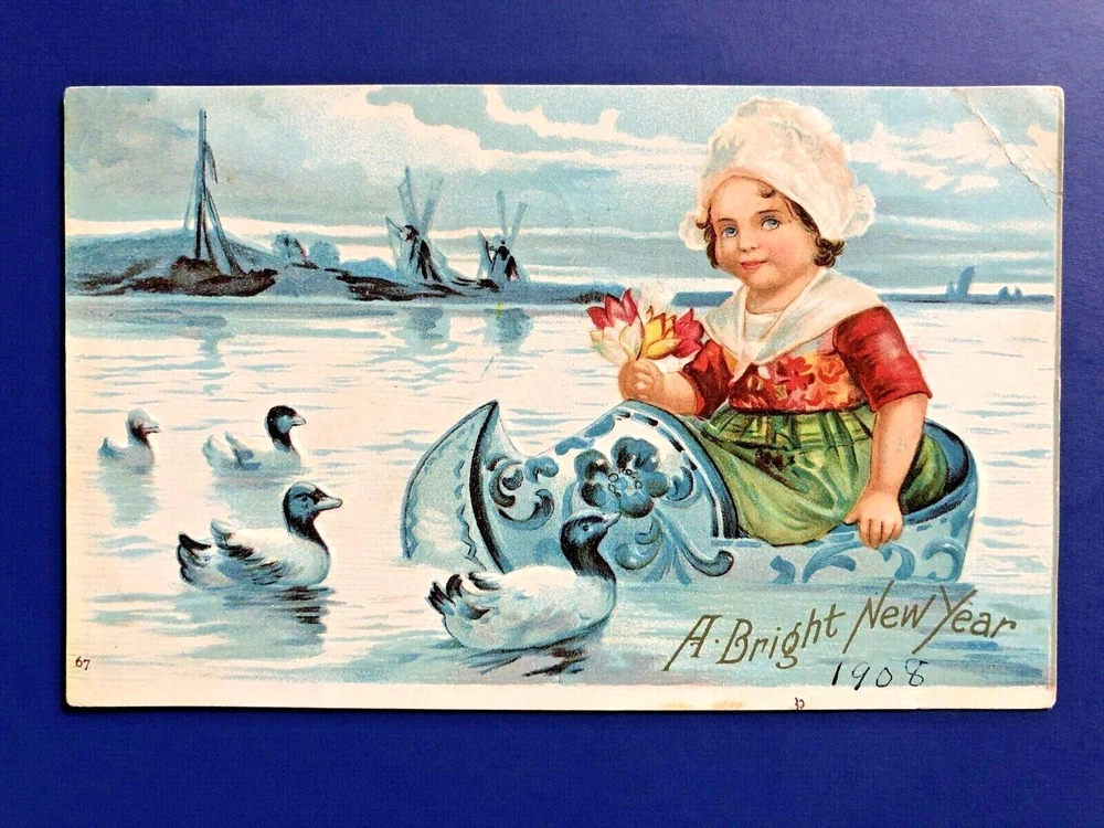 6 New Years Antique Postcards, Children IAP Publ, For Collectors Nice w Value This is a very nice set of 6 NEW YEARS POSTCARDS showing CHILDREN, HOLLY and BERRIES, FLOWERS, and other New Year motifs. There are also postcards with a very attractive young DUTCH GIRL in a shoe boat, a young girl in a cameo portrait, children with a baker, and a child holding a candle under a clock showing 12 o'clock. These postcards were published by International Art Publishing Co. (IAP) in the early 1900s. IAP made postcards during the 1895 - 1915 era and mostly from Germany, and is considered one of the best publishing companies for quality postcards of that era. One of their most famous artists was Ellen Clapsaddle who is highly popular with collectors. Her work especially with children is well regarded and sought after. These postcards are unsigned from different artists and all part of various IAP NEW YEAR SERIES. They are quite colorful and attractive, with lots of details. These postcards are ANTIQUE and were published in the early 1900s. They are all embossed (except 1) and some have GOLD trim. Overall, a nice selection of antique postcards! These are collector items because of their age, being from IAP as the publisher, and their appeal to New Years and Children collectors. The postcards are UNPOSTED (1) and POSTED (6) with cancel dates of 1906-1908, with one being 1916. One has their stamp removed. All but one of the postcards are EMBOSSED and some with GOLD TRIM. Five of these postcards have UNDIVIDED backs. All but one was "Printed in Germany". These are BETTER POSTCARD and good for a collector. The postcards will keep their value! They are sleeved and in good condition. However, please expect some creases, cuts, stains and edge wear due to their age. The photos show the postcards and the backs. The postcards are shipped in a sturdy envelope. We only ship within the USA; we do not ship internationally. USA shipping is with tracking, and we use eBay Standard Envelope mail when the value is under $20 and the weight is under 3 oz; and, we use USPS First Class mail when the value is over $20 or the weight is over 3 oz. We combine shipping whenever possible. If you purchase multiple lots, you can wait and we will send you an invoice for the combined shipping before you pay. In case you have already paid for the lots, we will still combine the shipment and refund you any extra shipping charges back to your account. Please visit our eBay store, VINTAGE POSTCARDS FOR COLLECTORS , for other fine antique and vintage postcards and collectible items. We are a well-established antique postcard dealer, and have a good reputation for meeting our customer's expectations. We have a strong inventory of antique 1900's HOLIDAY and GREETINGS postcards including from publisher's such as TUCK & SONS and INTERNATIONAL ART PUBLISHING (with artist Ellen Clapsaddle). Let us know of your interests and desires. Thank you, and we very much appreciate your patronage!