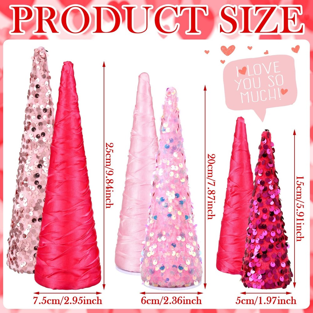 6 Pcs Pink Christmas Mini Cone Trees Tree Glitter Table Decoration Christmas Pink Ornaments Table Centerpiece for Xmas Tabletop Crafts Wedding Party Room Decoration Colorful and Festive Design: our pink Christmas glitter cone tree decoration embrace the atmosphere of the festivities, the vibrant, jovial colors encapsulate the essence of Christmas; Each Christmas tree centerpieces for tables shines and glitters, making it an eye catching centerpiece for your party Versatile Size Options: in order to suit various tabletop or party spaces, our glitter cone tree comes in 3 different sizes: large (9.84 x 2.95 inches), middle (7.87 x 2.36 inches), and small (5.91 x 1.97 inches); These sizes cater to different customer needs and preferences, allowing you to create the festive mood in any space you wish Holiday Package: the package includes 6 Christmas pink glitter cone trees, providing you with enough quantity to distribute all around your party space; You can use them to create enchanting Christmas stories on tabletop, make Christmas-themed scene in a large glass jar, or adorn wreaths to enhance festival atmosphere Atmosphere Enhancer: nothing sets the mood for holiday quite like our cone table tree decors; Their vibrant, colorful design is sure to get the attention of your guests, adding to the party atmosphere; Whether regarded as a centerpiece or scattered around a party, wedding, birthday, holiday gathering, our cone table trees are sure to enhance the joyous mood of your Christmas celebration Quality Material for Sturdy Display: our fake tabletop trees crafted with quality materials like foam, paper, iron, which can offer long lasting durability and stability, ensuring that they won't easily fade, deform, or break; Enjoy using them for many festive seasons Features: Experience the happiness of festival right at your dining table with our beautifully crafted festival tree set. The collection features 6 cone table trees in 3 varying sizes, ensuring your table decor is versatile and dynamic. The table trees come in vivacious, festival colors that will liven up any room. With these decorative tree ornaments, your decor will only be robust but also plentiful. The package includes 6 cone table trees, ensuring you can distribute them across your home, enhancing the festive atmosphere in more than one room. Specifications: Main material: foam, paper, iron Color: pink Size: Large: about 9.84 x 2.95 inches/ 25 x 7.5 cm Middle: about 7.87 x 2.36 inches/ 20 x 6 cm Small: about 5.91 x 1.97 inches/ 15 x 5 cm Package includes: 6 x Christmas glitter cone tree Notes: Manual measurement, please allow slight errors on size. The color may exist a slight difference due to different screen displays Shipping We offer FREE shipping on all orders! We ship within Three business days of payment, usually sooner. We use a selection of shipping services such as UPS, FedEx, USPS etc., unable to choose a carrier. We only ship to the lower 48 states, no APO/FPO addresses or PO Boxes allowed. Sellers generally can’t change the shipping address that you provided at checkout. Local pickups and combined shipping options are not provided at this time. International buyers - please note: Import duties, taxes, and charges aren't included in the item price or postage cost. These charges are the buyer's responsibility. Return You can return a product for up to 30 days from the date you bought it by using the seller's FREE RETURN LABEL only. Any product you return must be in the same condition you received it and in the original packaging. International buyers - Rejection and return of the product requires the buyer to pay all shipping and return costs. Please return with the reason "Order mistake" or "Changed my mind" or "Does not fit" for a refund, which would be greatly appreciated. If the buyer wishes to return the items for a refund or replacement, please contact the seller to obtain a free return label. The refund or replacement will be processed using the tracking number of the return label, which will be provided solely by the seller. Other methods of return that have not been approved by the seller will not be processed for a refund or replacement. Payment We accept payment by any of the following methods: eBay Manage Payment Please pay as soon as possible after winning an auction, as that will allow us to post your item to you sooner! Feedback Customer satisfaction is very important to us. If you have any problem with your order, please contact us and we will do our best to make you satisfied. Please be aware that our products are stored and fulfilled by third-party warehouses and manufacturers across the United States (also known as third-party fulfillment or product sourcing). These companies are completely trustworthy, and we are confident in entrusting all of our valuable items to them for the safety and best delivery system for our store. Contact Us If you have any queries, please contact us via ebay. We usually respond within 24 hours on weekdays. Please visit our eBay store to check out other items for sale! Thank you for shopping at our store.