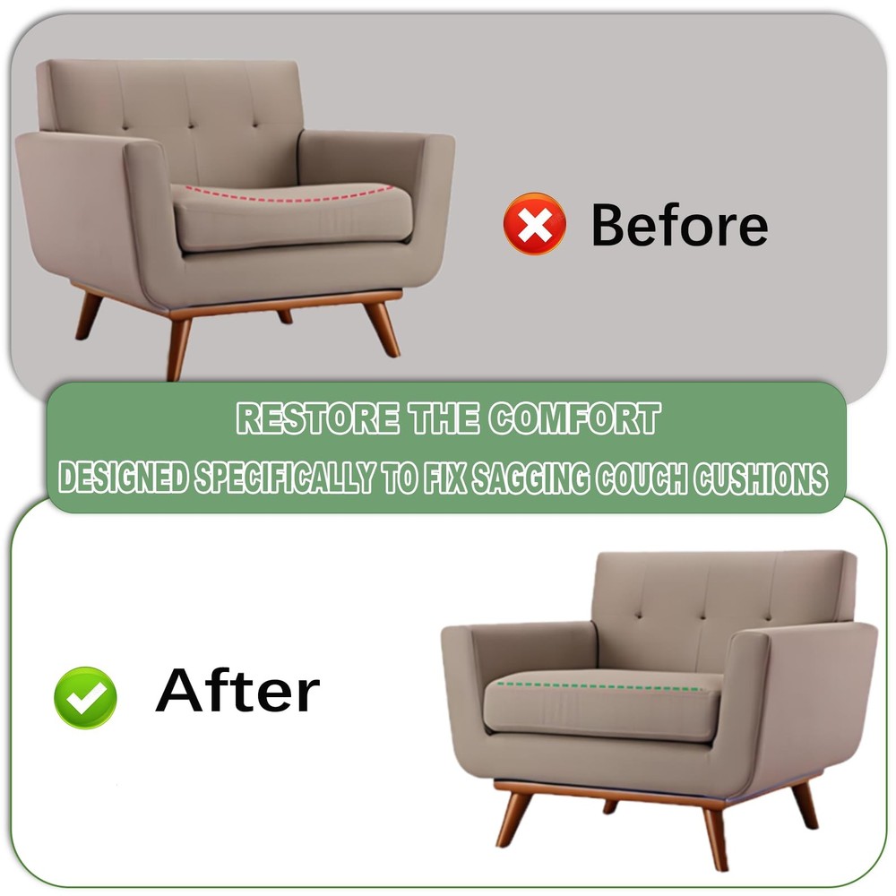 Black 20" x 20" Couch Cushion Support , made with high-density foam to give your sofa cushions the lift they need. Just place it under the sagging seat cushions, and it’ll help repair that uncomfortable sag, making your furniture feel cozy and supportive again Product Name: Couch Cushion Support Product material: Polyurethane (PU) Product size: 20"X20" Product color: Black Product quantity: 6PCS Features: 1.High-quality high-density foam, made of 40D strong and tough polyurethane foam, has a higher density and efficient resilience to ensure that the sofa deforms during the press and can extend its lifespan 2.Sofa cushions can be cut according to the size of the sofa to fit it more perfectly, making the sofa look more beautiful as a whole 3.The arched design of the sofa cushions can effectively repair sunken sofas and support them, making sitting more comfortable and relaxing High Density Foam: Couch Cushion Support Made of 40D High Density Foam, High Resilience, Better Repair Sofa Sagging, Thereby Extending the Sofa's Service Life Cutting Couch Cushion Support: 20"x20" Sofa Support for Sagging Cushions Can Be Cut According to Sofa Size to Fit the Sofa Perfectly Save Your Sagging Couch: Curved Couch Support Cushion Design Can Effectively Repair Sagging Caused by Long-Term Use of the Sofa, Restoring Hardness and Preventing Sagging 6PCS Couch Support: Sofa Cushions Can Be Used on Chairs, Sofas, Lounge Chairs, or Other Furniture with Detachable Cushions, Sofa Cushions Can Provide Long-Term Stable Support and Restore Comfort Comfortable Couch Supports: Sofa Cushions Provide Additional Support for the Sofa Itself, Enhancing Comfort and Support, and Offering a Different Experience