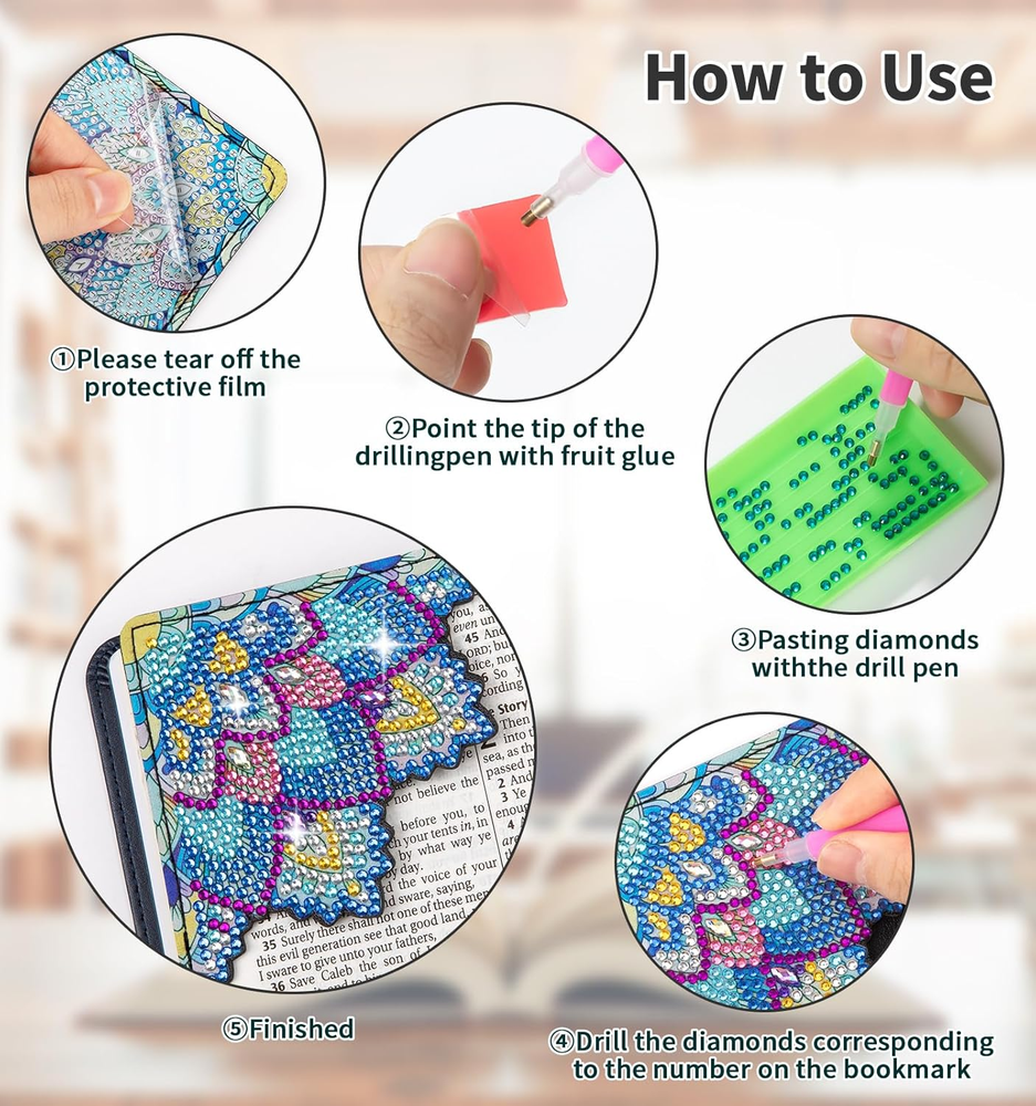 Store New Arrivals Add to Favorite View Feedback Contact 6 PCS Diamond Art Bookmarks, Diamond Painting Bookmarks for Book Lovers DIY Bookmark Corner Bookmark Adults Crafts Art Kits for Adults Kids Home Office Description Item model number SQXX0105A Color Mandala Floral Style I Material Leather Material Type Leather Manufacturer Part Number SQXX0105A Item Weight 0.19 Kilograms Package Dimensions 11.81 x 7.95 x 0.83 inches 6 PCS Diamond Bookmarks:You will receive 6PCS bookmarkets from the diamond art kits, together with a complete set of diamond DIY tools, including 1 piece of diamond drilling pen, 1 piece of diamond tray, 1 piece of clay glue, and 20 pack of colorful diamonds, enough for you to finish 6 delicate bookmarks. The diamond art accessories can meet your daily reading DIY needs. Eesy To Use Bookmark:Diamond art kits come with a drawing tool, and each bookmark has a different pattern. First, tear off the protective film on the bookmark, then dip the pen in the glue,just try to absorb diamonds with the pen to corresponding number position and put down.This diamond art kit is perfect for adult crafts and is easy to complete.Just go and check! Unique Design Bookmark:Diamond art bookmarks are made of PU leather, with beautiful patterns and strong surface adhesion, sticky enough to hold the diamonds, no need to worry about the diamonds falling off. The corner design can protect the corners of the pages well. Charming Corner Bookmark:The bookmarks we provide for you are the right size, and easy to carry and use. With sparkling rhinestones and fashionable patterns, it is easy to attract the attention of adults and children. Suitable for most books. it can help record your reading progress, so you can continue reading directly next time. Perfect Gift For Book Lover: Diamond paint bookmarks can mobilize the aesthetic sense and creativity of children, teenagers, and adults. You can wrap them into beautiful gifts for book lovers, family members, friends, and classmates on birthdays or other meaningful days. Product description For Book Lovers Diamond Art Bookmarks Marking the pages by folding them while reading takes away a certain amount of aesthetics, and over time the folded pages can be smoothed out and not be visible, affecting the quality of the book. After using the diamond bookmark, it looks more exquisite, and it will be very convenient to open the book, and will not cause damage to the book. Diamond Painting Kits Easy to Use Great Gift Choice For Book Lovers ABOUT US We offer the best prices around on high quality products. Our E-store includes media such as books, movies, music and games while offering electronics, toys, sporting apparel, clothing, tools, general home, garden items and more. SHIPPING We are always working hard to ensure your package arrives as soon as possible. Please understand that some factors like weather, high postal traffic, and the performance of shipping companies are outside of our control. We offer free shipping to the lower 48 states and ship within 2 business days of payment, usually sooner. We do not accept P.O. Boxes. Please provide a physical address. RETURNS We offer a 30-Day Return Policy on items which you are not completely satisfied with. You have the option for a full-refund or an exchange of the item. No returns are available on items shipped outside of the USA. PAYMENT We accept PayPal. CONTACT US This page content is yet to come Please ad us to your favorite seller and visit again later Thank You CUSTOMER SATISFACTION We try our very best to make sure every customer is completely satisfied. If there's a problem, message us! We're happy to help.