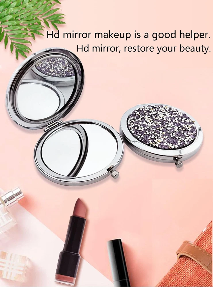 6 PCS Rhinestone Double-Sided Mirror Portable Small Mirror Folding Pocket Makeup Mirror Round Hand Mirror Makeup Magnifying Glass Women's/Girls Travel Gift (Mixed Colors) Product Details Brand: ZHU YU CHUN Room Type: Dressing Room, Living Room, Bedroom, Home Office Shape: Round Product Dimensions: 3.03"L x 2.76"W Frame Material: Glass Brand: ZHU YU CHUN Room Type: Dressing Room, Living Room, Bedroom, Home Office Shape: Round Product Dimensions: 3.03"L x 2.76"W Frame Material: Glass Style: Minimalist Mounting Type: Tabletop Mount Surface Recommendation: Glass Special Feature: Built-In Speaker, 180 Degree, 2-Sided Color: Silver, Rose Gold Theme: Travel Specific Uses For Product: Makeup Number of Pieces: 6 Number of Items: 6 Material: Glass, Metal Frame Type: Framed Item Weight: 2.56 ounces Assembly Required: No Frame Color: Silver Manufacturer: ZHU YU CHUN Country of Origin: China Item model number: ZHU YU CHUN 88000538 Date First Available: December 21, 2023 [Product size]:Please refer to the picture for detial. [Material]:Metal, glass [Unique Design]:The outer layer of the folding compact mirror is made of metal and covered with different colored Rhinestone stones that glow when exposed to sunlight.Delicate and Foldable Design with Button, the portable makeup mirror can be easily opened with just the push of a button; It can also extend to the angle within 180 degrees for better apply comfort so that it is easy to apply and saving time . [Widely Applied]:One side has 2 times magnification, which can make it easier to draw eyeliner and apply mascara; The other mirror is the real view, which can be clear for you to check the overall facial state, and help you better participate in parties, festivals, and makeup and so on.These cosmetic mirrors for purse can be gifted to family and friends on important days like birthdays, Christmas and Thanksgiving; The design is elegant and delicate, which will also be popular as gifts at weddings, Valentine's Day, and become suitable decorations. [Package include]:6 pcs mirrors, including three silver rhinestone mirrors and three rose gold rhinestone mirrors. This beautiful makeup mirror is simple and smooth with minimalist color matching, stylish and beautiful, folding double-sided design, lightweight and easy to use, metal texture shell, comfortable feel, high-definition mirror is a good helper for makeup.