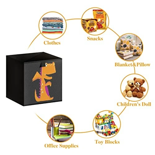 Return Policy Fast Delivery Trusted seller 6 Pack 13 Inch Animal Fabric Storage Cube Bins, Storage Baskets for Shelves, Cube Storage Boxes for Organizing Closet Bins,Black Product Description Animal Theme Design: Toy chest with animal theme felt applique fit in most cube shelf organizers and cubbies, perfect cube shelves decoration for any kids room, playroom, nursery and make cleanup time fun Multi-Purpose Storage Cubes: toy storage provide a variety of storage needs for our life. Can be placed in the living room or bedroom, study rooms, offices, closets, and cabinets to store clothes, shoes, toys, toiletries, daily necessities, towels, diapers, etc. Neutrally designed to adapt with your decor, this is a great addition to save space and stay organized Environmentally Friendly: Our fabric storage cubes are made with eco-friendly materials that is sturdy yet breathable. Lined with a thin muslin fabric. Storage cube are easy to clean, dusting the basket with a soft dry cloth is recommended. Spot clean with light soapy water when needed. Not recommended to machine wash Collapsible Design: This Toy organizers are super easy to fold and store compactly when not in use. When you need to use the storage basket, it can be quickly unfolded to store various items. Storage baskets with two sewn-in cotton rope handles for easy to carry or pull off and out of shelves Dimension: 11 inch cube storage bin, Set of 6 baskets, the size of each small fabric basket is 10.5inch(L) x 10.5inch (W) x 11inch (H). Perfect for use as empty gift baskets. These foldable storage bins for a closet organization can meet many storage needs while keeping clothes and household items in the order Shipping Returns Payment Shipping Shipping is FREE to all addresses other than APO/PO boxes in the lower 48 states. All our stock ships from US-based warehouses. Shipped via USPS or UPS (depending on location and package weight) Unless stated otherwise, all orders will ship within 24-72 hours of your payment being processed. Check our feedback to see the great reviews of FAST shipping we offer. Returns Seller does not accept returns Payment We currently accept payment via eBay managed payments only. Once payment is cleared, we will dispatch your shipment within 1-3 business days. Please refer to the "Shipping" tab for more information regarding shipping speed to your destination.